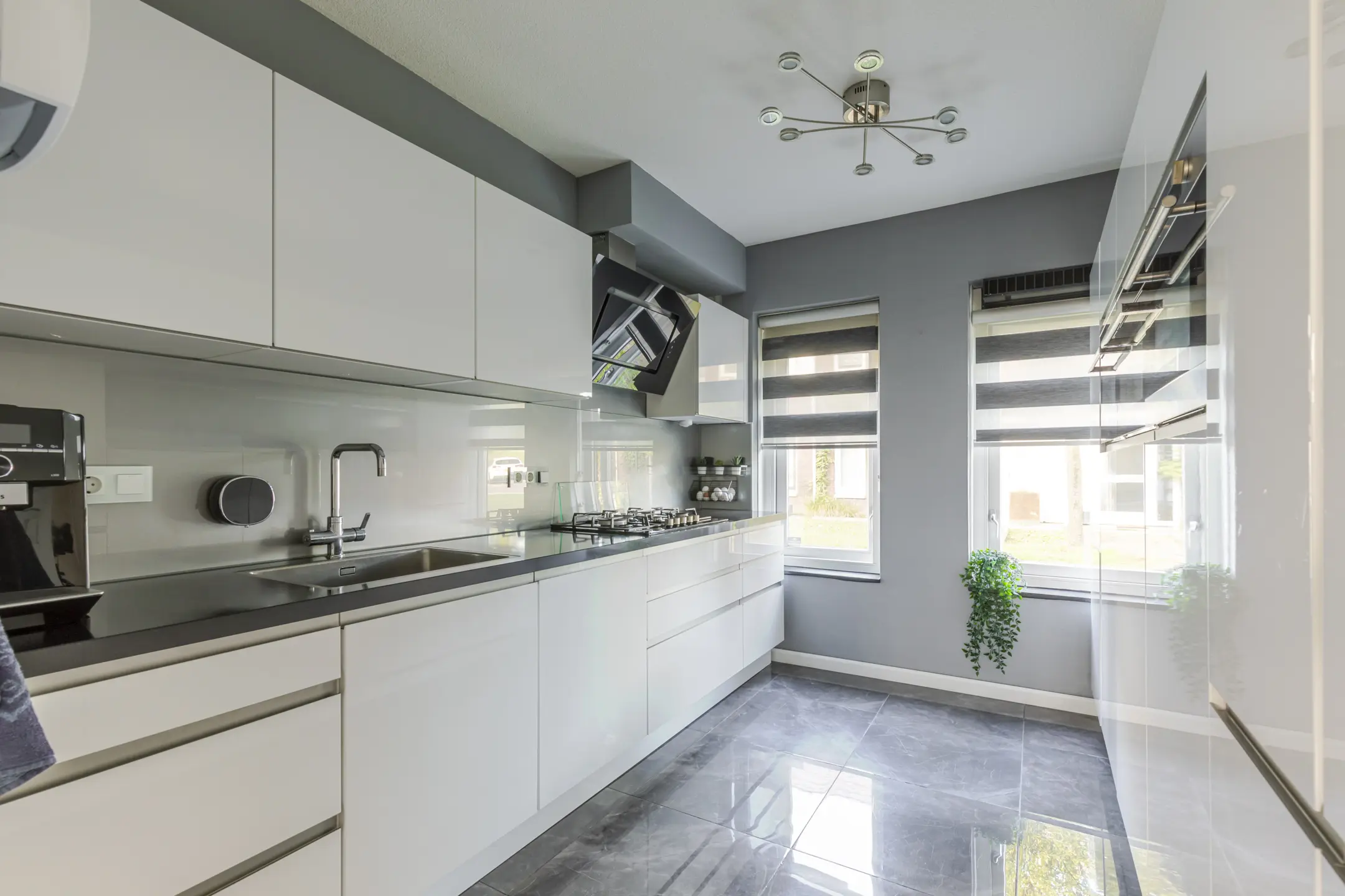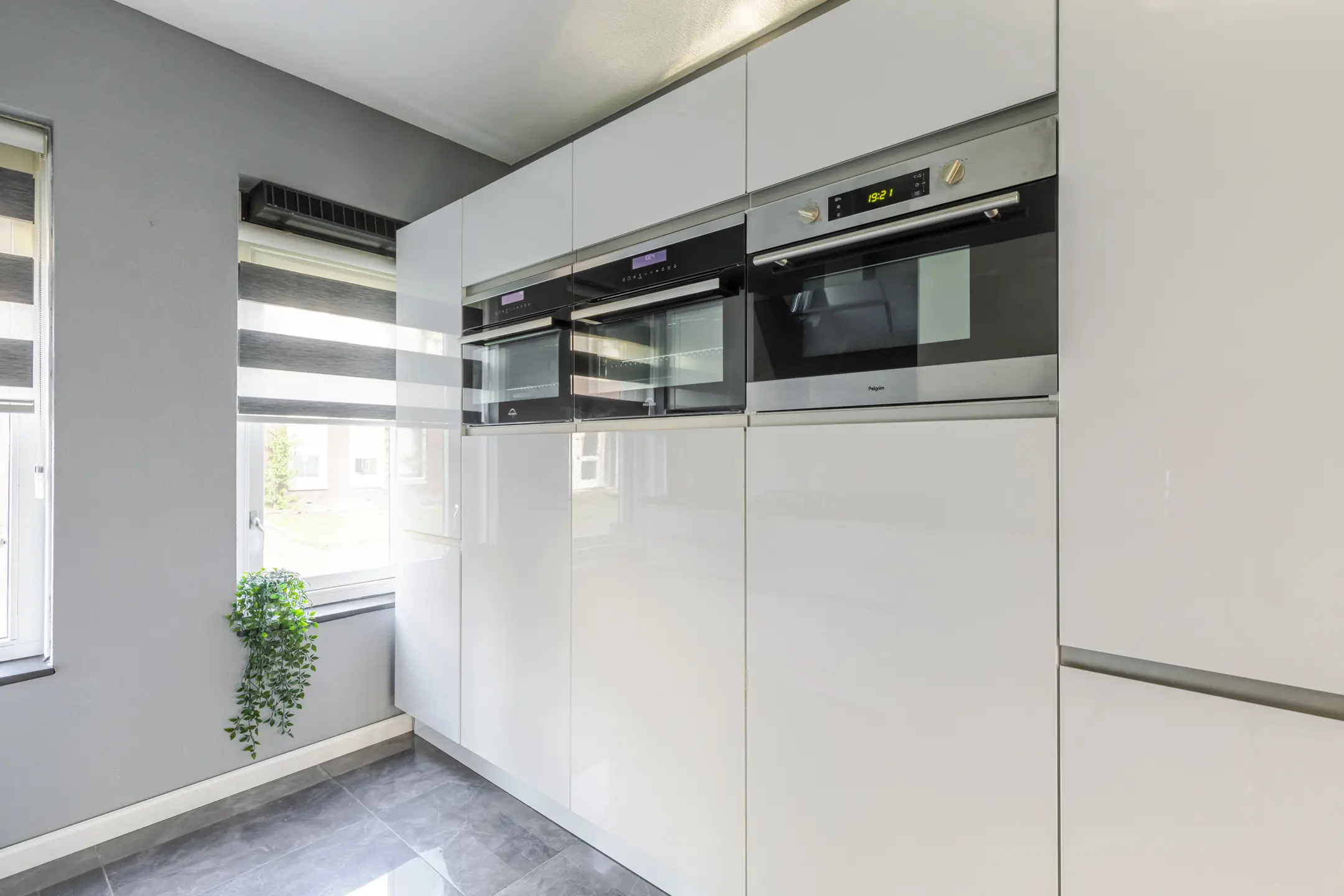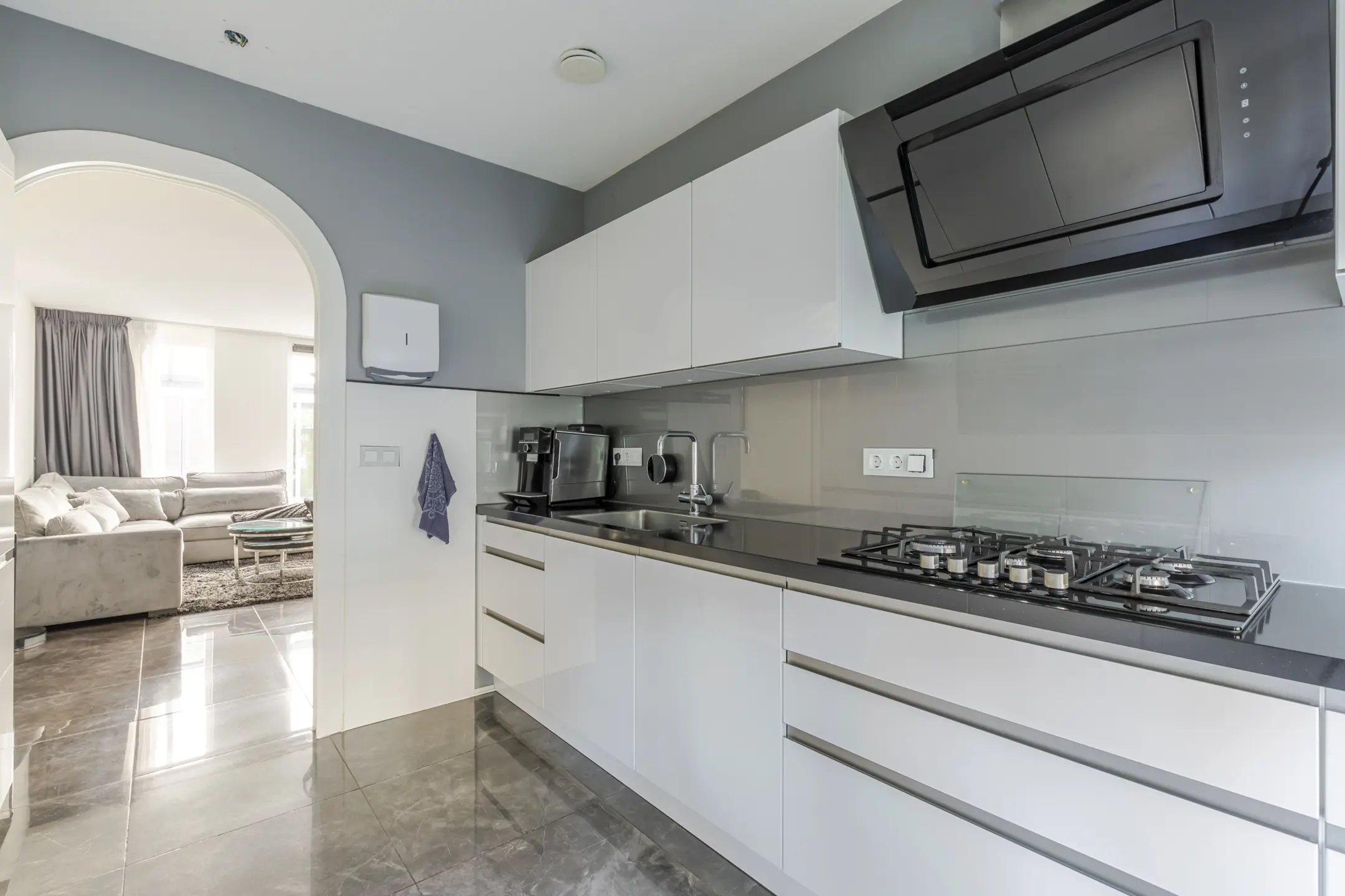 Via de hal met toilet en trapopgang kom je in de ruime en lichte woonkamer van circa 30 m². Grote raampartijen zorgen voor een prettige lichtinval en een open sfeer. De woonkamer biedt volop ruimte voor een gezellige zithoek en een royale eethoek. De keuken sluit mooi aan op de leefruimte en beschikt over voldoende werk- en bergruimte. Vanuit de woonkamer is er directe toegang tot de tuin.
