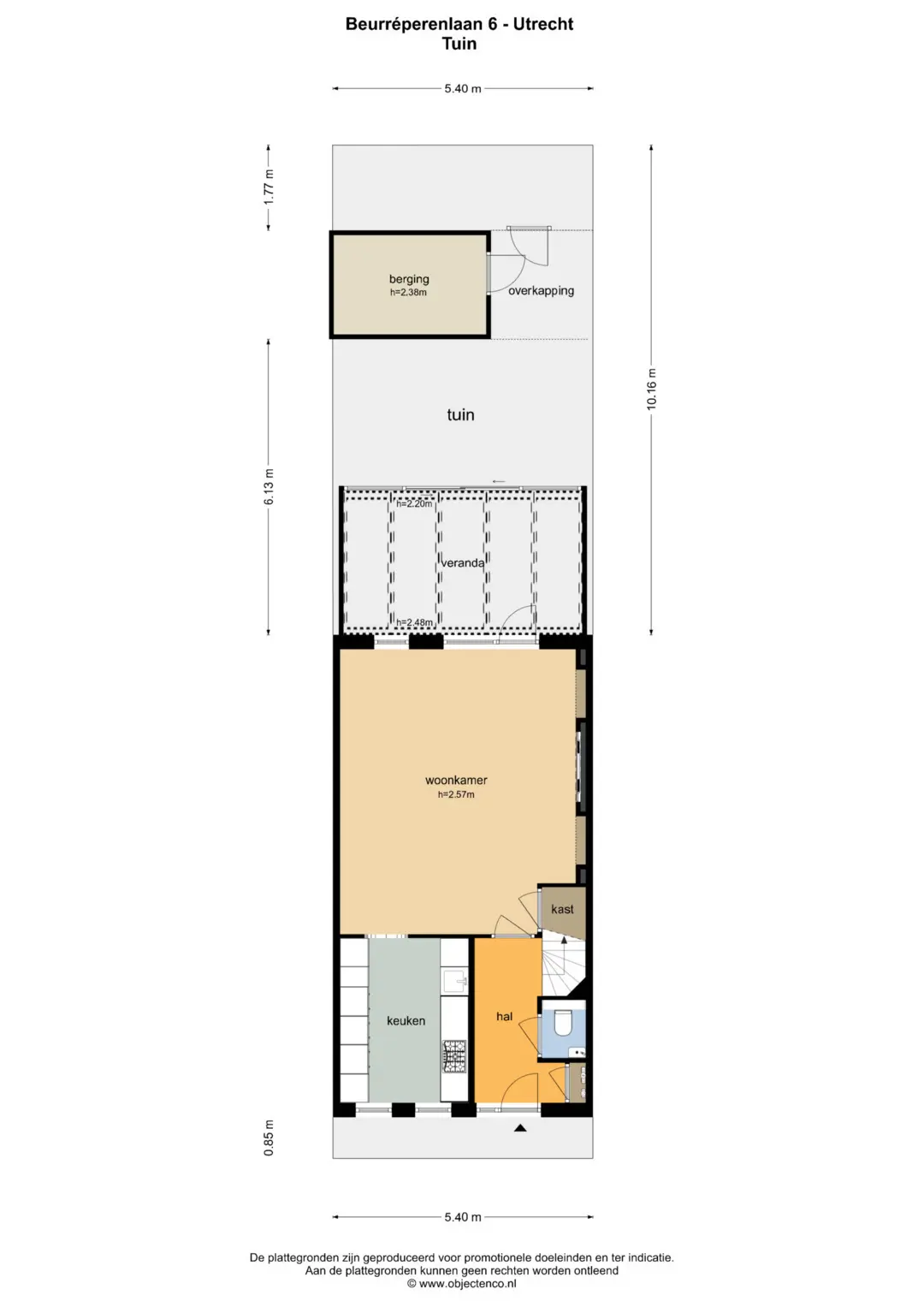 - Achtertuin ca. 42 m², gelegen op het oosten, met achterom