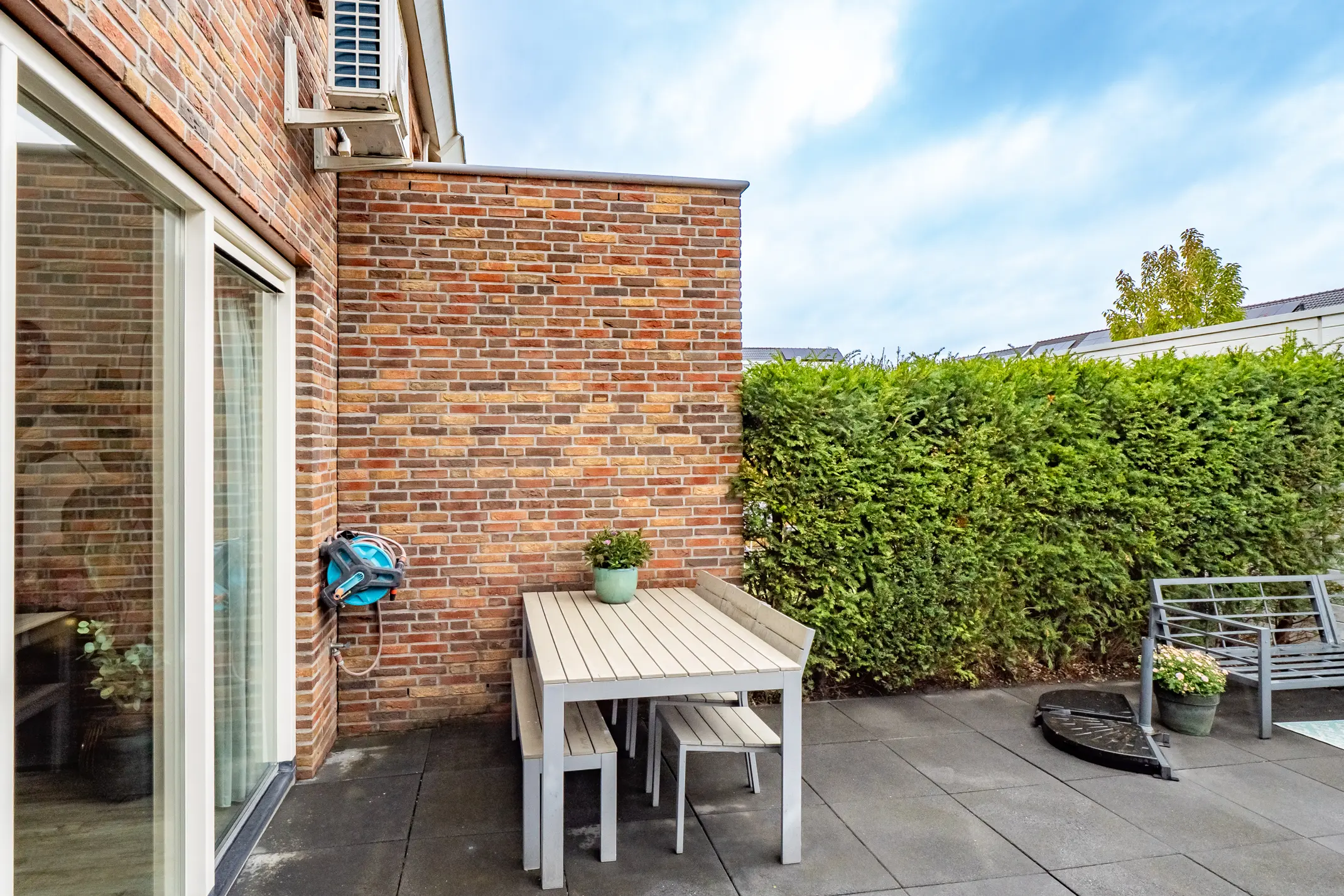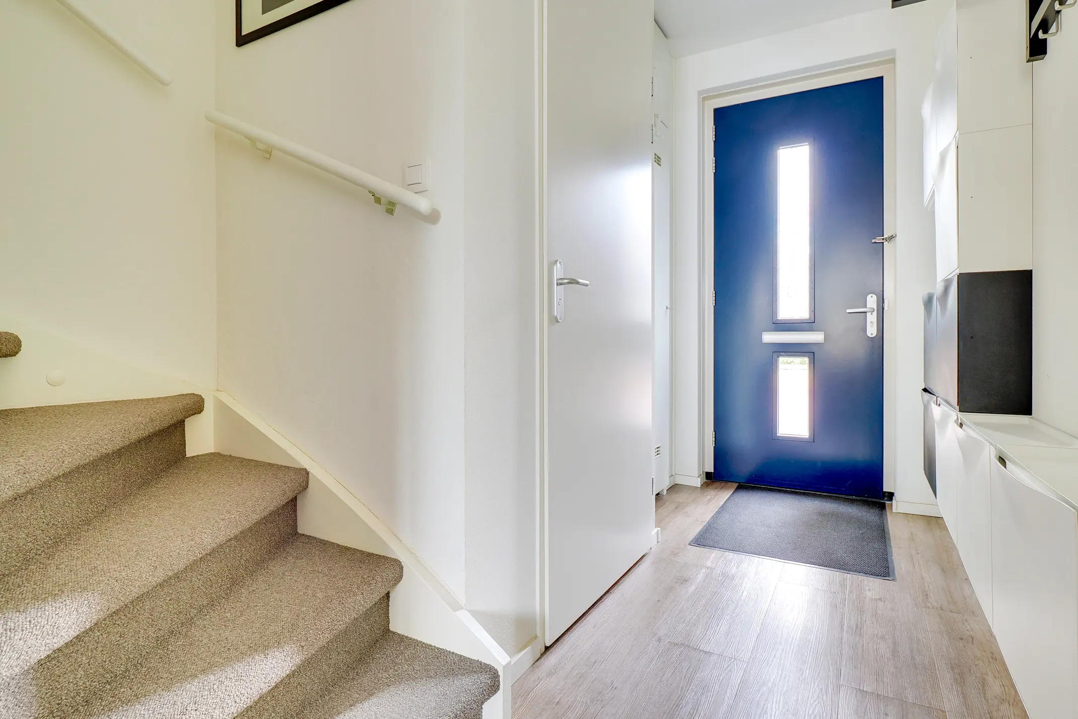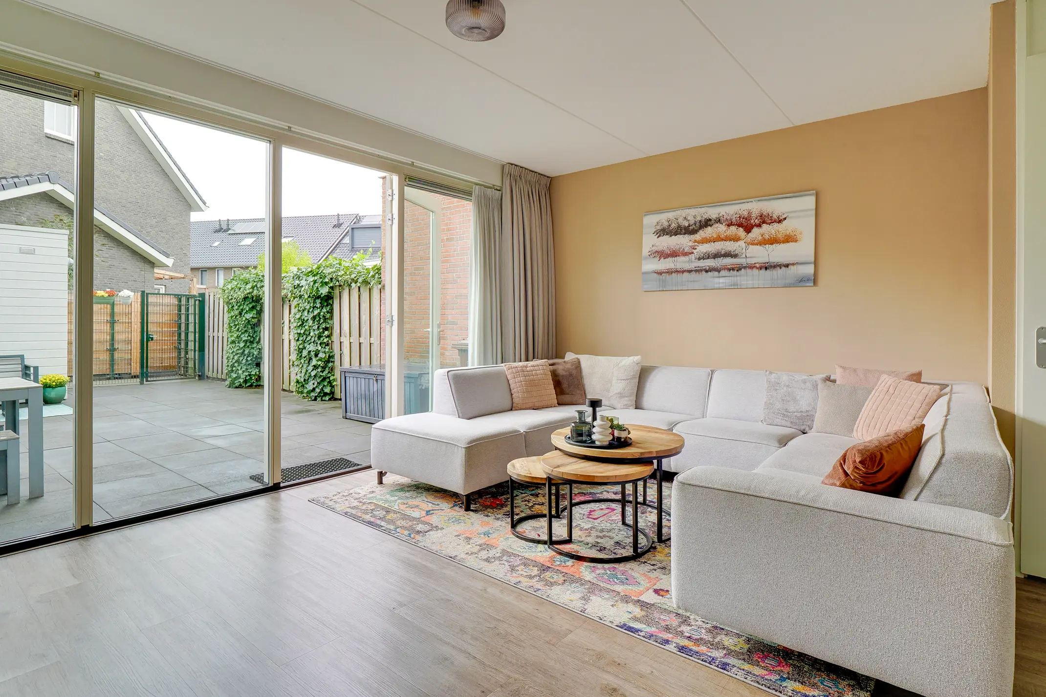 Direct achter de woning ligt het mandelige binnenterrein met een eigen parkeerplaats, zodat je altijd een vaste plek hebt voor de auto. De servicekosten voor het terrein bedragen €130 per jaar. Voor gezinnen is de gezamenlijke speeltuin op dit terrein een groot pluspunt – veilig, overzichtelijk en gezellig voor de kinderen.