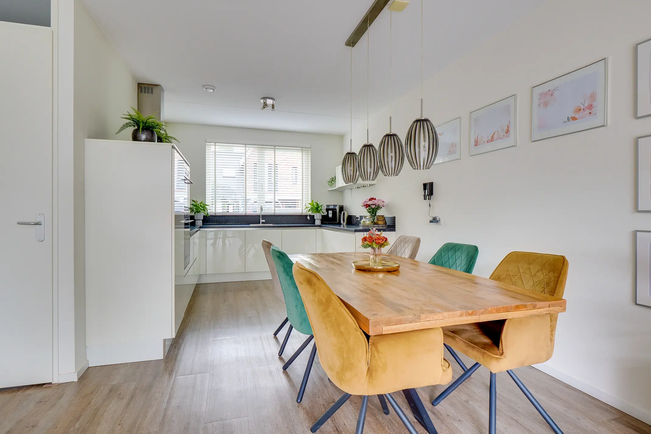 Op de begane grond bevindt zich een royale woonkamer van circa 28 m², met aansluitend een open keuken van 11 m². De keuken is voorzien van diverse inbouwapparatuur, waaronder een aparte oven, combimagnetron en vriezer. De gehele benedenverdieping is voorzien van vloerverwarming, wat zorgt voor een aangenaam binnenklimaat in elk seizoen. De keuken (2015) is ontworpen met oog voor detail: open en overzichtelijk, ideaal voor gezellige etentjes of familiedagen.