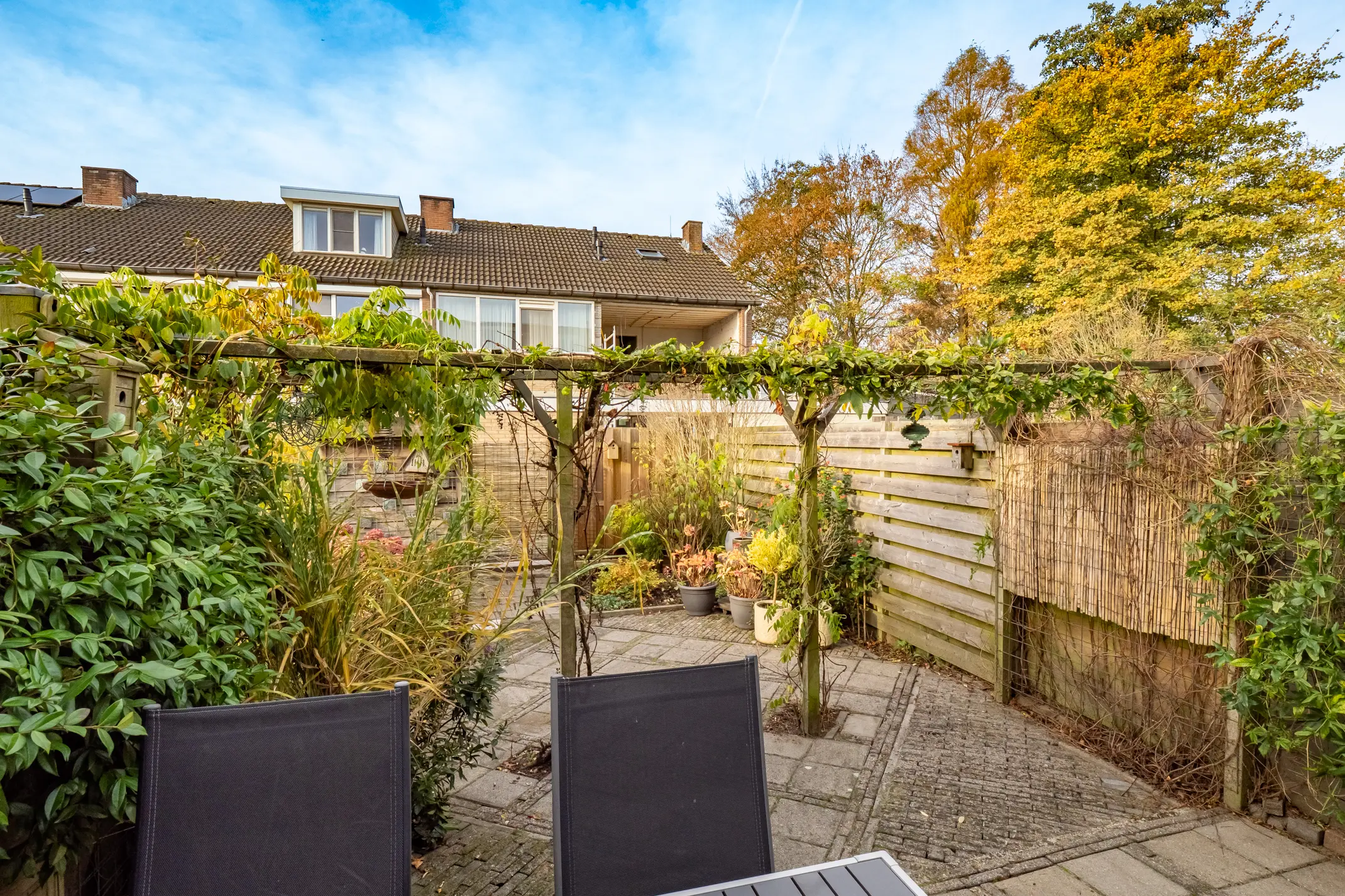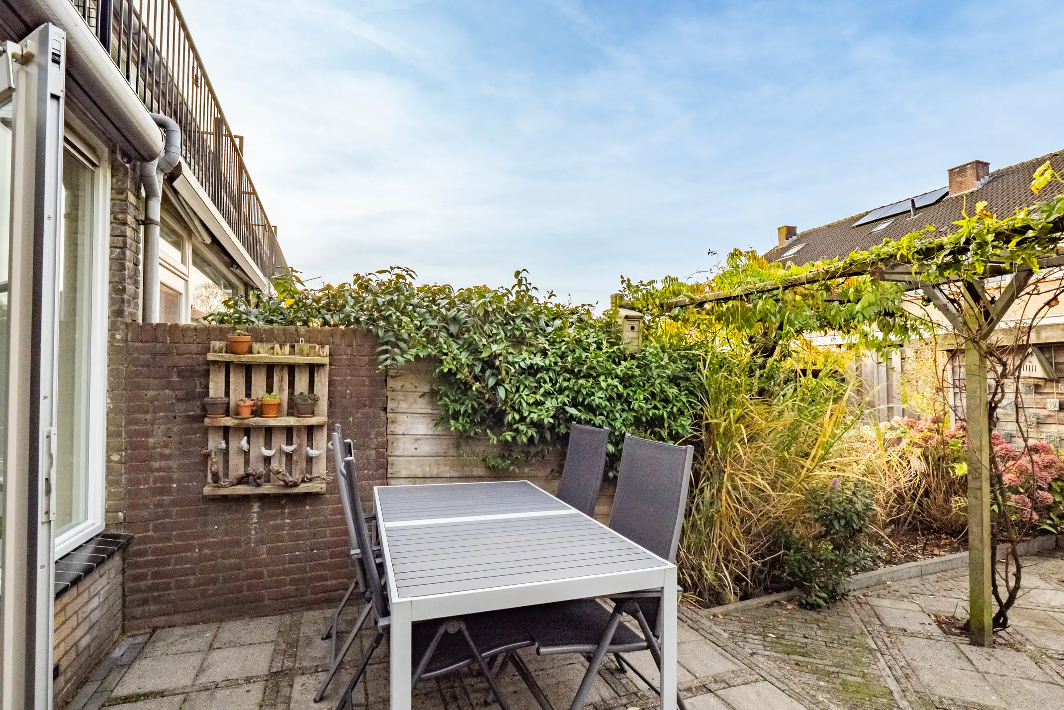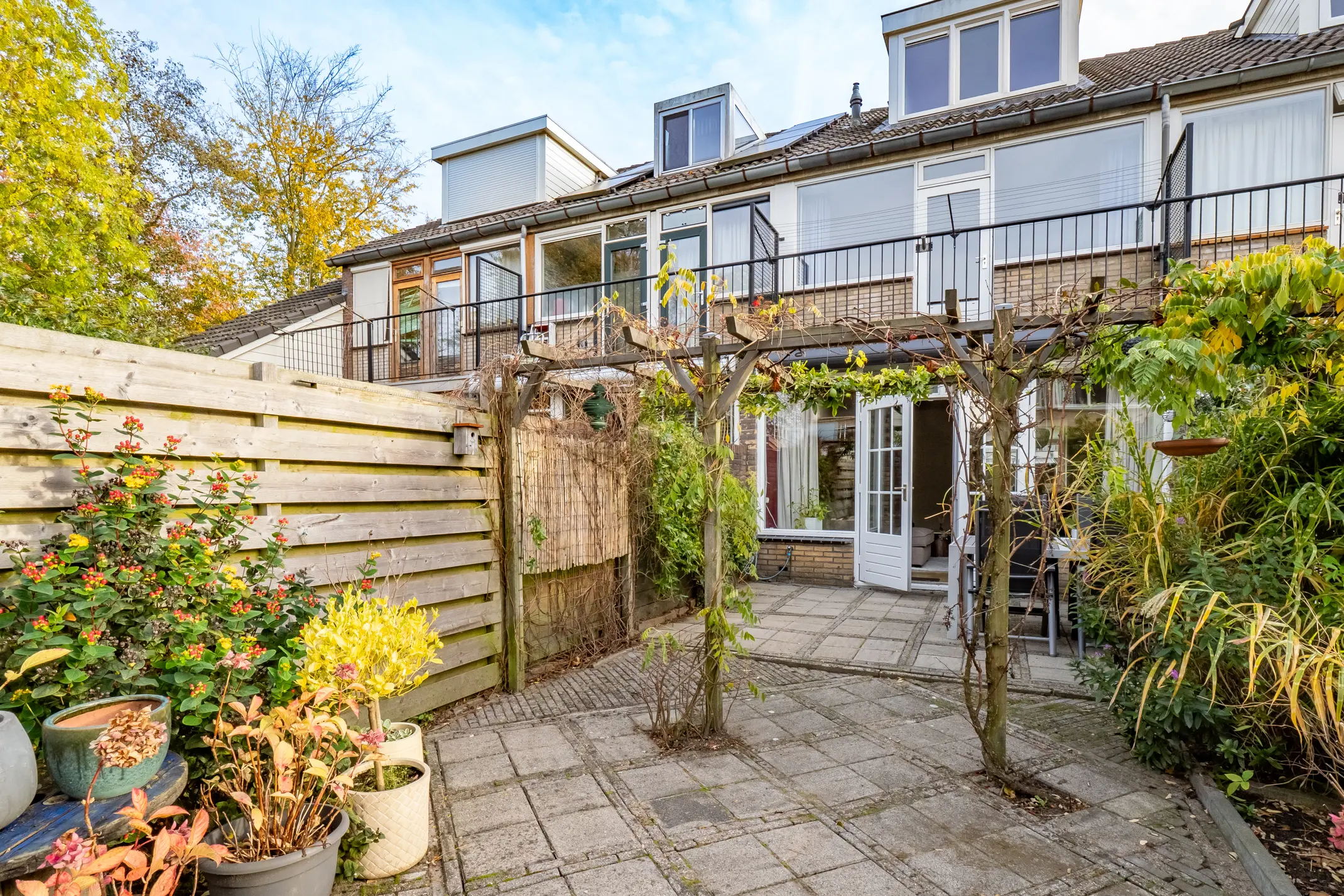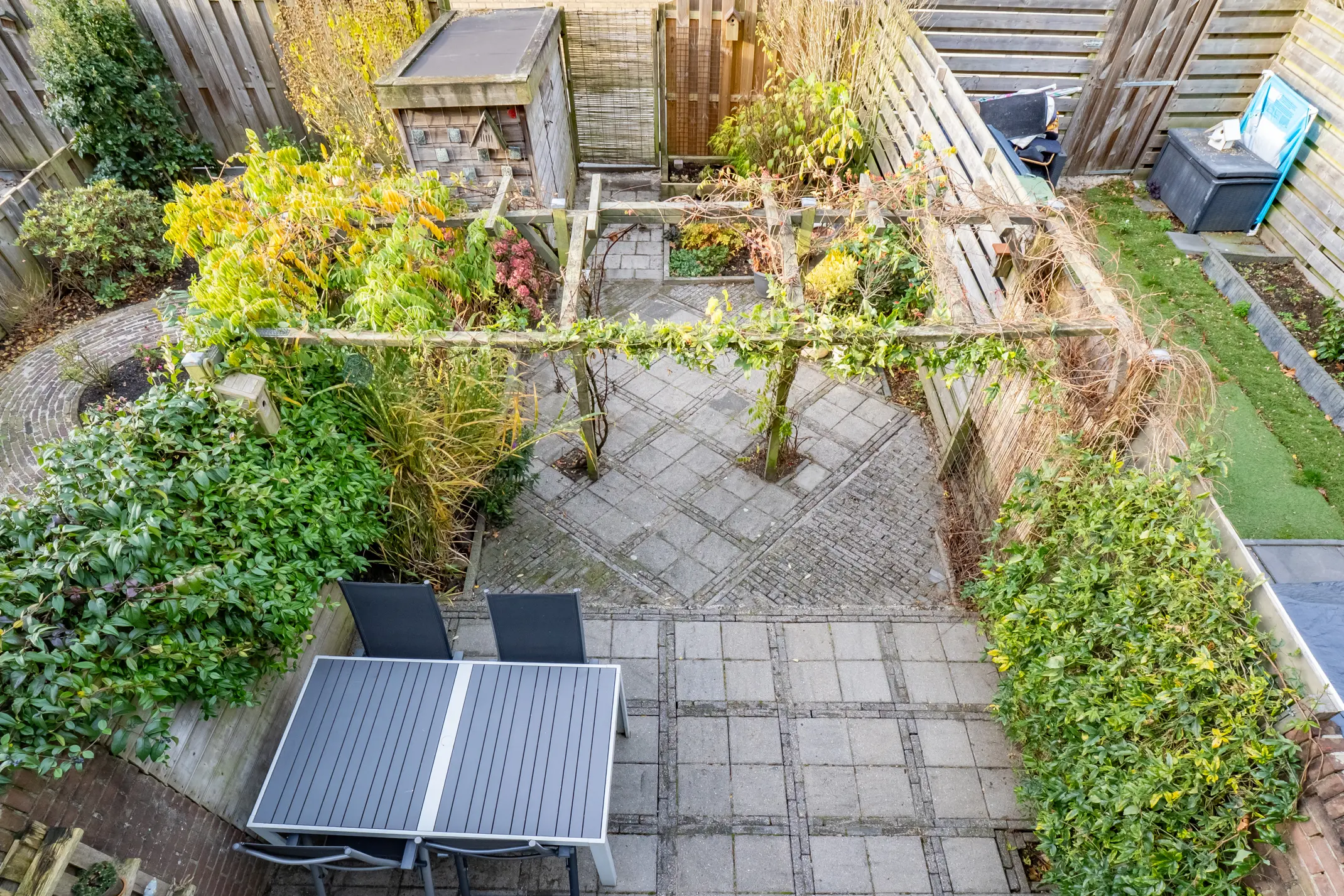 De woning beschikt over een achtertuin en voortuin met een totale oppervlakte van circa 38 m², fraai aangelegd en gelegen op het zuidwesten. De tuin heeft een achterom en een elektrisch zonnescherm aan de achterzijde.
