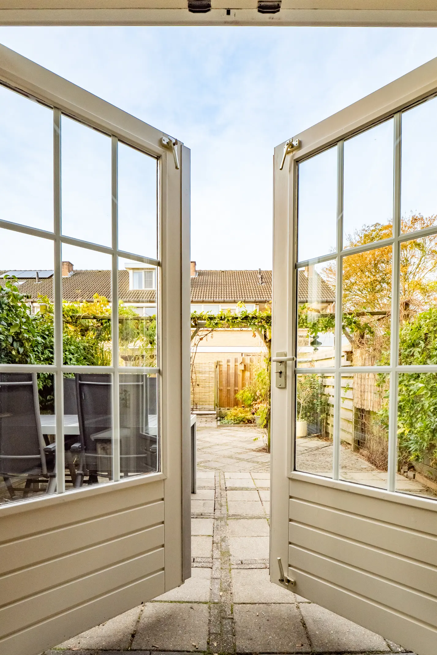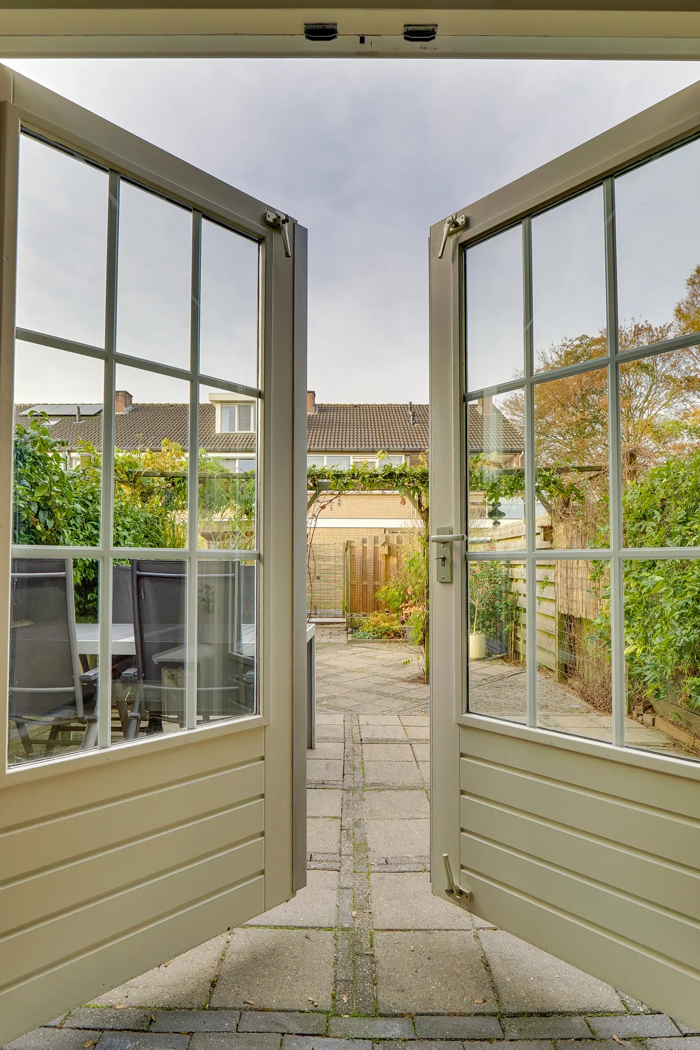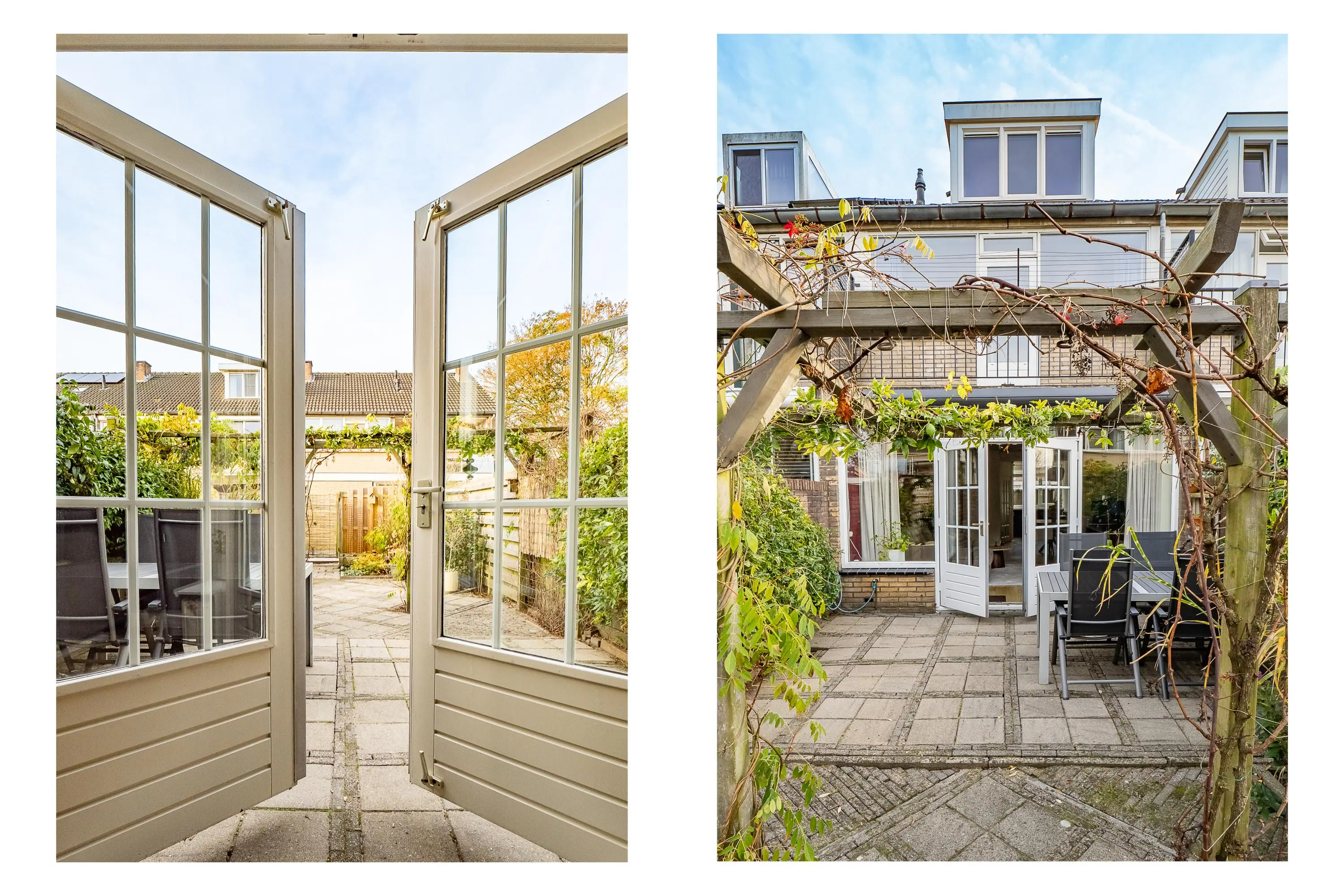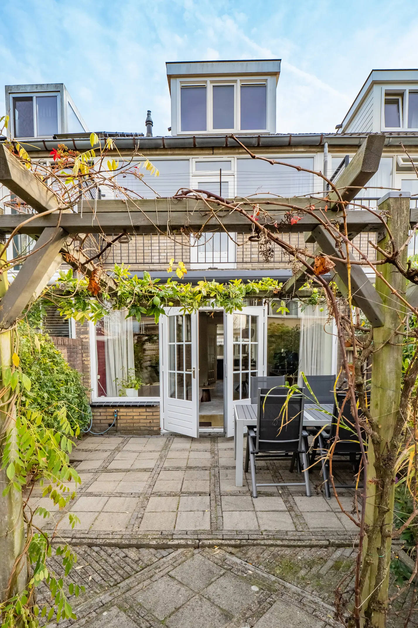 De woning beschikt over een achtertuin en voortuin met een totale oppervlakte van circa 38 m², fraai aangelegd en gelegen op het zuidwesten. De tuin heeft een achterom en een elektrisch zonnescherm aan de achterzijde.