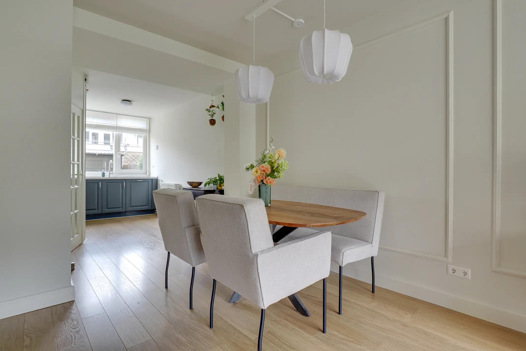Via de entree kom je in de lichte woonkamer van circa 23 m² met een open keuken (8 m²), vernieuwd in 2025 en voorzien van een Quooker. De keuken biedt veel lichtinval en een prettig uitzicht op de tuin. In 2025 zijn daarnaast het stucwerk beneden, de meterkast, en alle elektra op de begane grond vernieuwd.