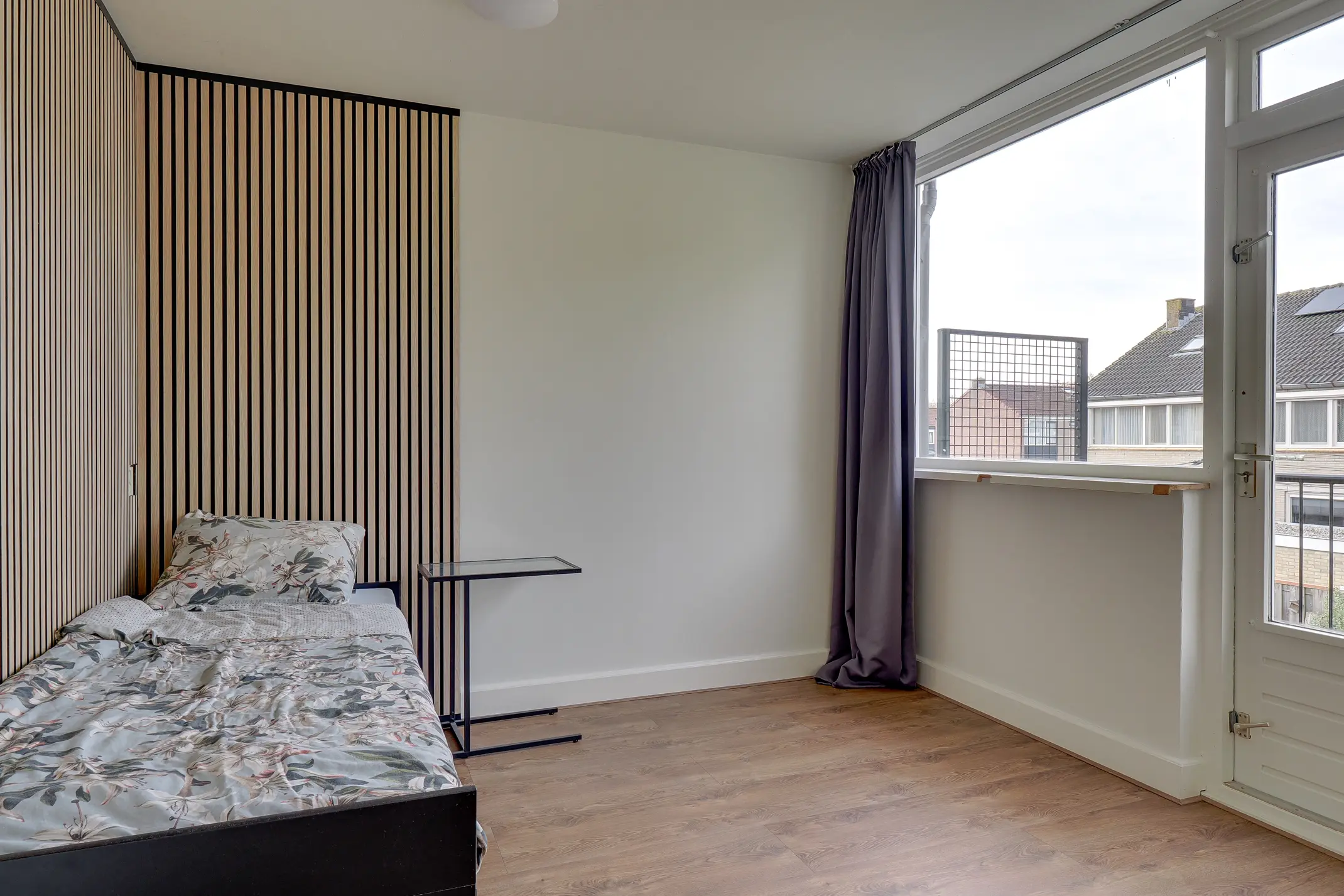 Op de eerste verdieping bevinden zich twee slaapkamers waarvan één voorzien van een balkon, een moderne badkamer (vernieuwd in 2025) met toilet, douche, wastafel en wastafelmeubel. De badkamer is voorzien van vloerverwarming. Ook op deze verdieping zijn in 2025 elektra en deels het stucwerk vernieuwd, en ligt er een nieuwe vloer.