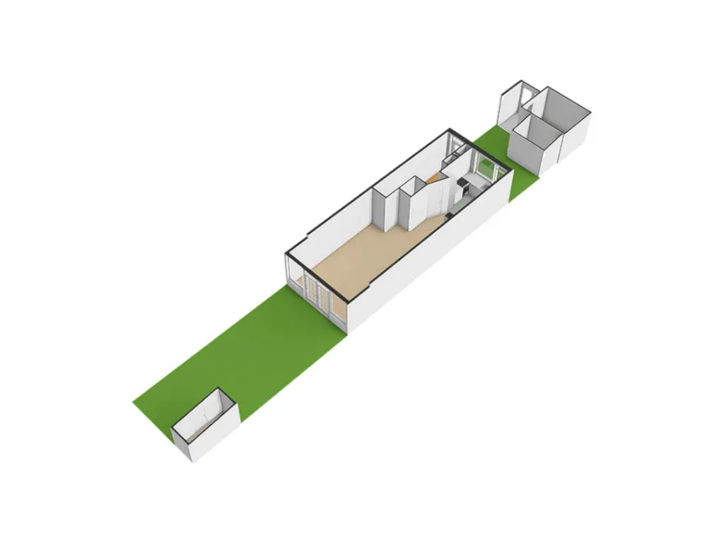 Daarnaast is er een vrijstaande houten berging met drie delen, voorzien van elektra — perfect voor fietsen, tuingereedschap of een hobbyruimte. Parkeren kan gemakkelijk in de directe omgeving dankzij de openbare parkeergelegenheid.
