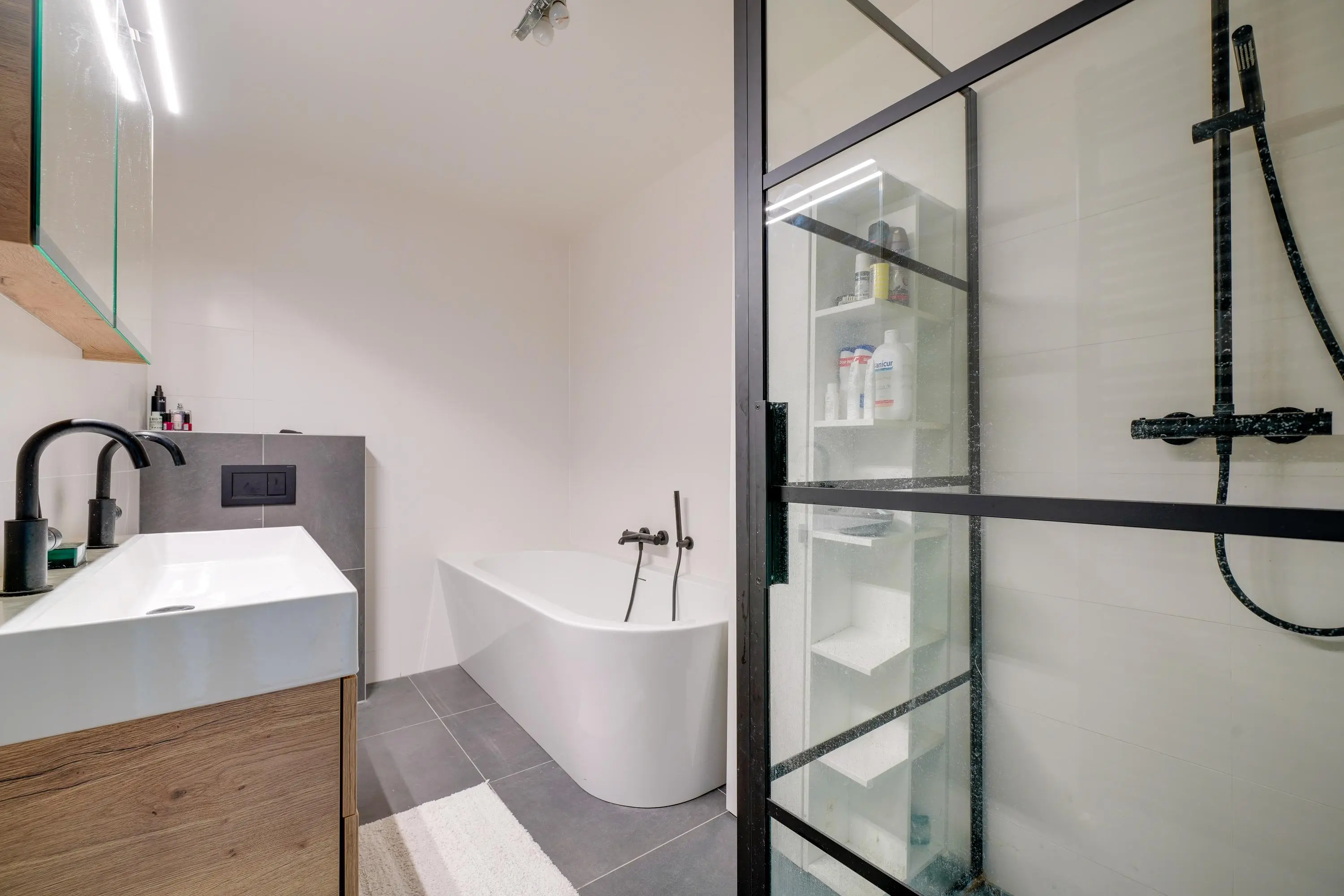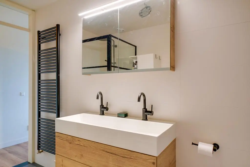 De luxe badkamer, vernieuwd in 2022, is voorzien van een ligbad, aparte douche en wastafel. Daarnaast zijn er drie volwaardige slaapkamers, waaronder een royale master bedroom. De extra werkruimte maakt dit appartement perfect voor comfortabel thuiswerken.