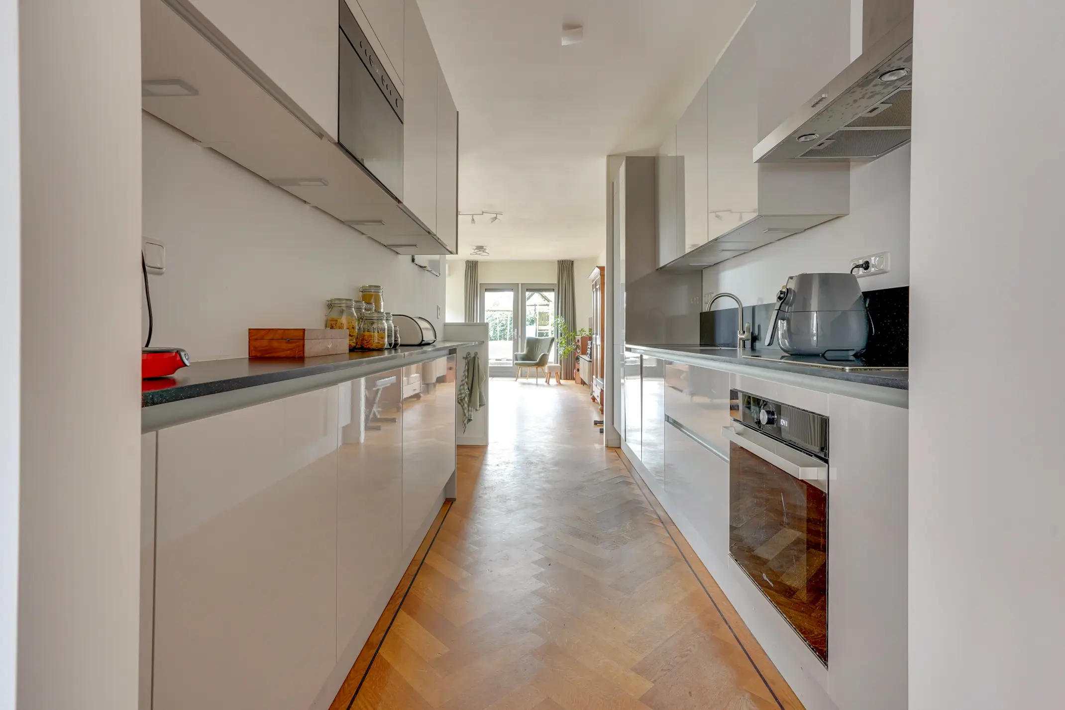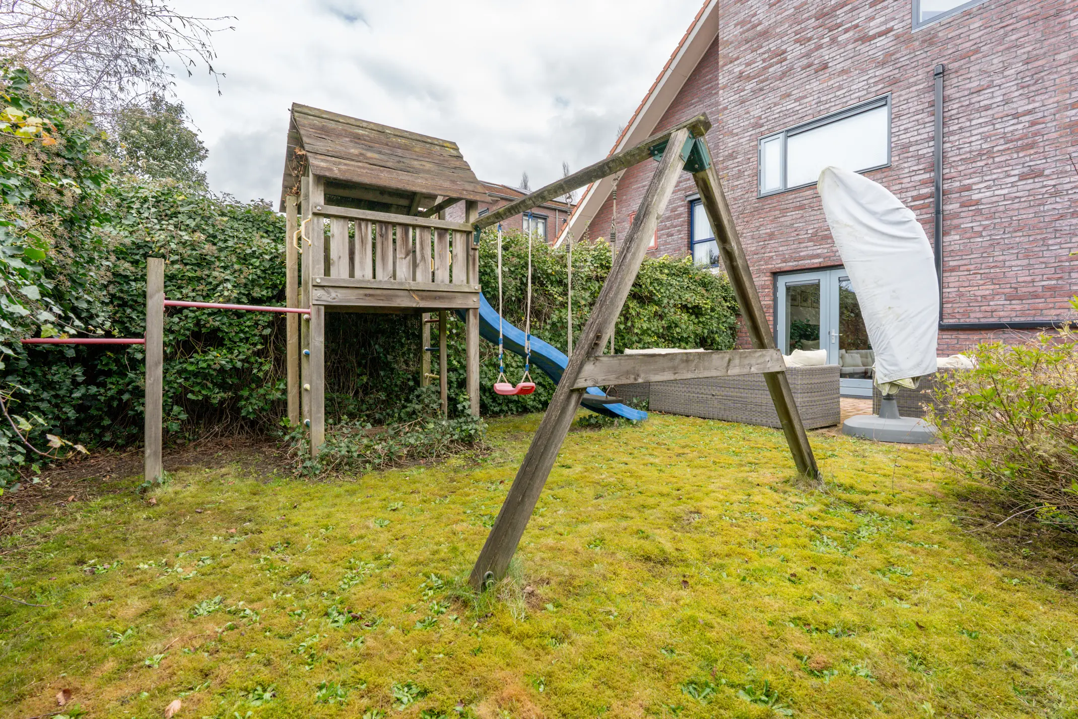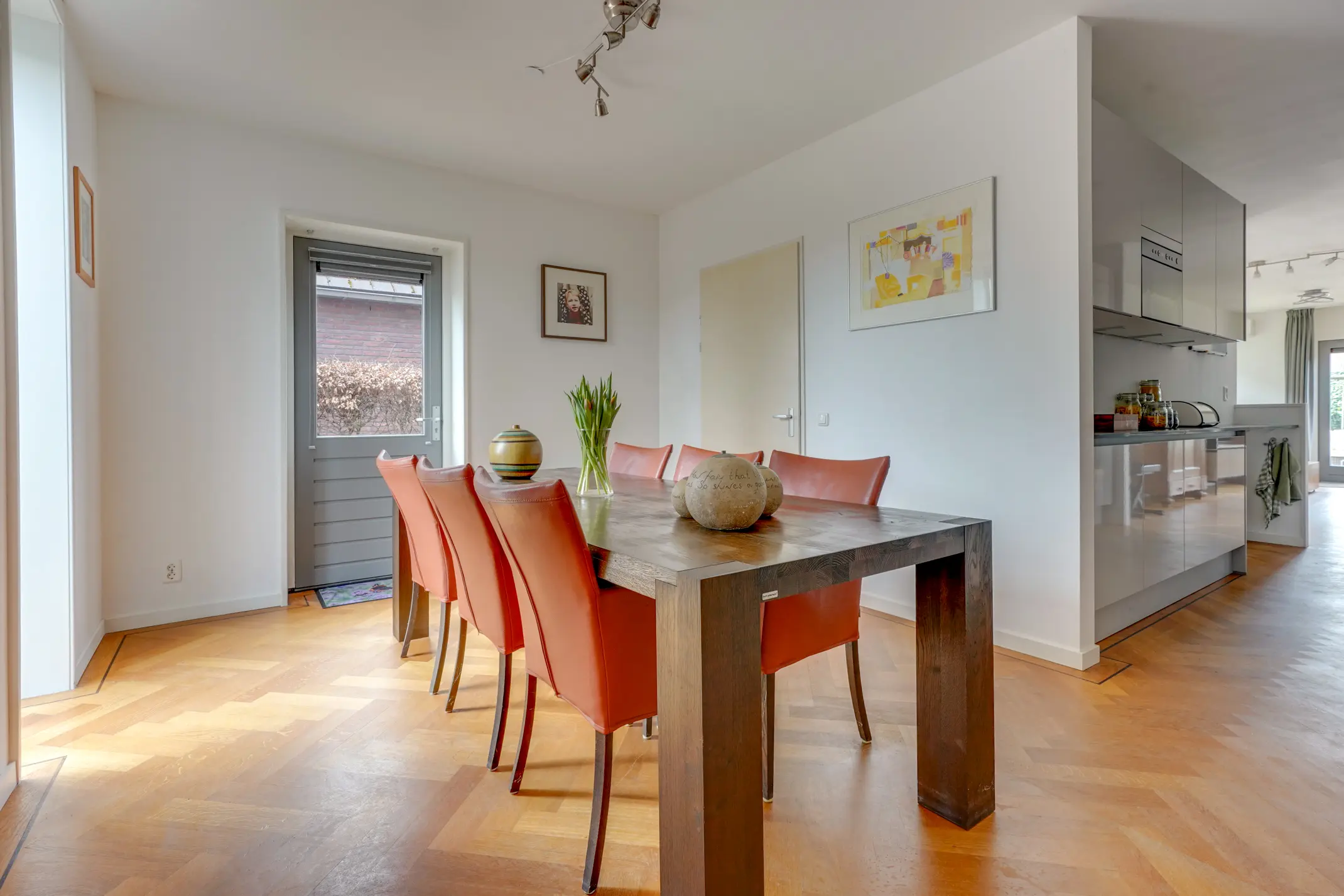 Zodra u de eigen oprit oprijdt, valt de statige architectuur direct op. Dit herenhuis uit 2004 is met zorg onderhouden en technisch volledig up-to-date. Het huis wordt omarmd door groen. Een afgeschermde voortuin die zorgt voor een prettige afstand tot de weg, en een grote achtertuin waar de zon en de stilte vrij spel hebben. Dit is een plek waar je de hectiek van de dag direct bij de voordeur achter je laat.