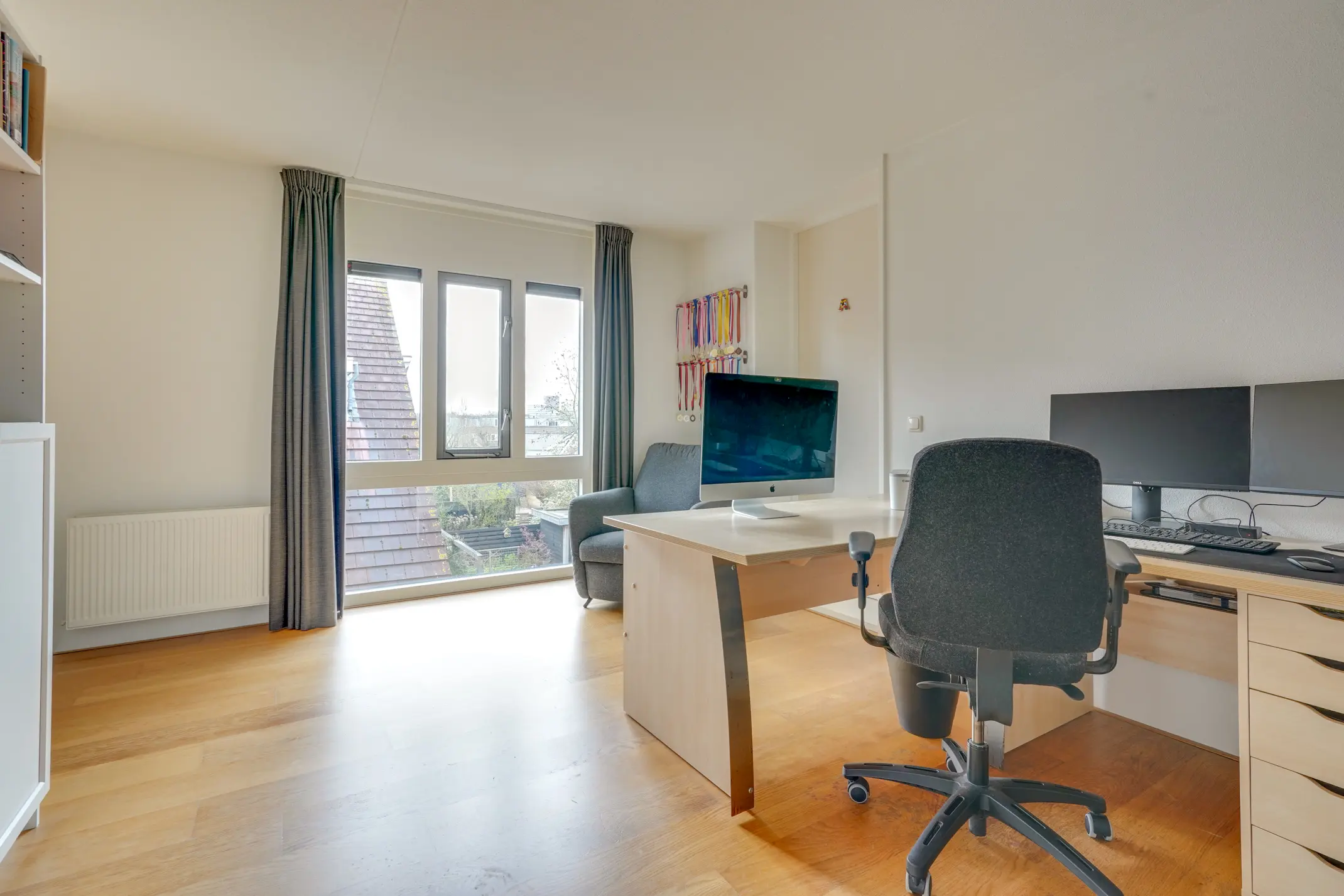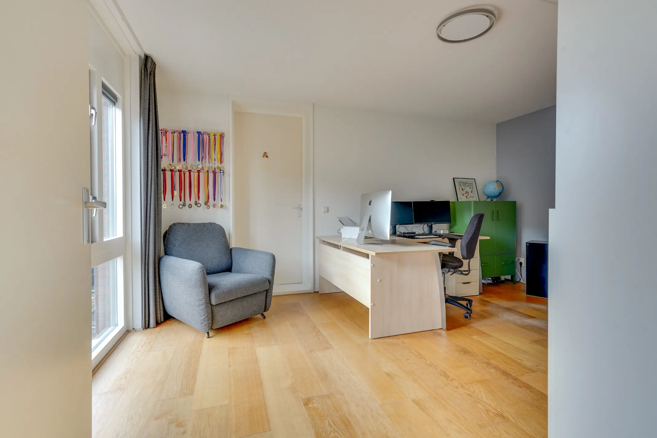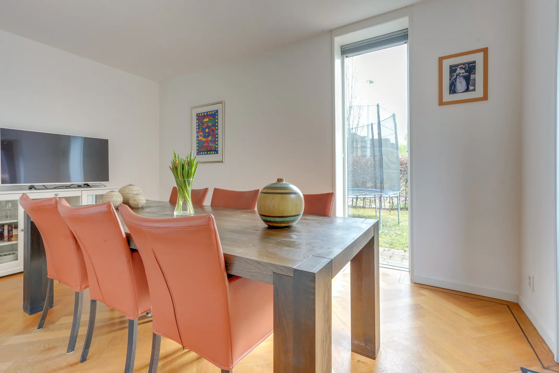 Zodra u de eigen oprit oprijdt, valt de statige architectuur direct op. Dit herenhuis uit 2004 is met zorg onderhouden en technisch volledig up-to-date. Het huis wordt omarmd door groen. Een afgeschermde voortuin die zorgt voor een prettige afstand tot de weg, en een grote achtertuin waar de zon en de stilte vrij spel hebben. Dit is een plek waar je de hectiek van de dag direct bij de voordeur achter je laat.