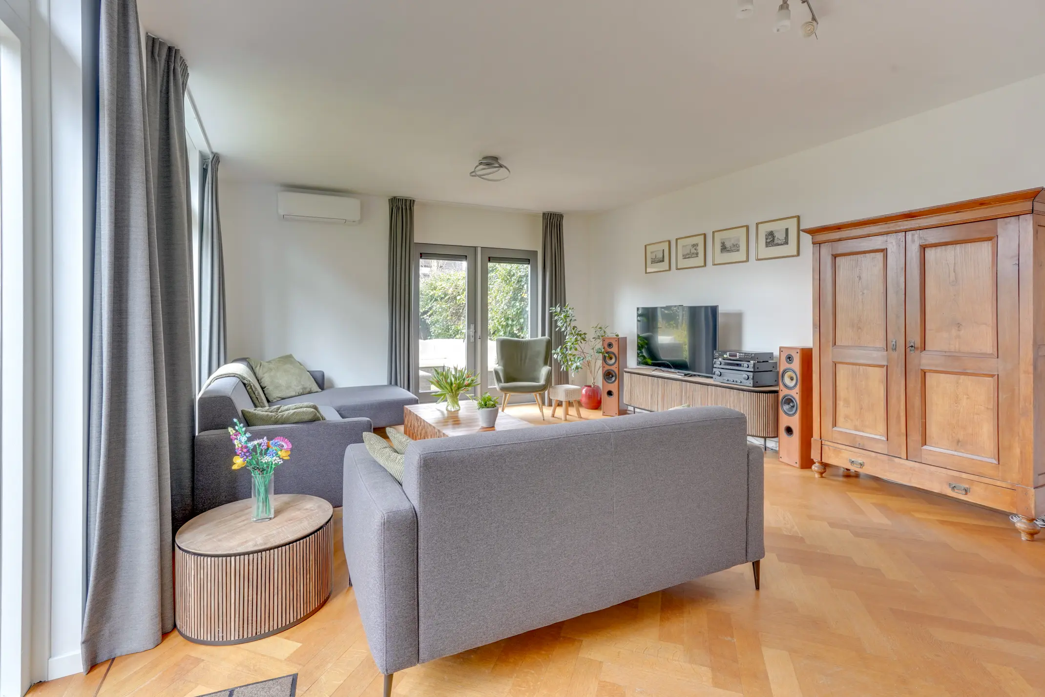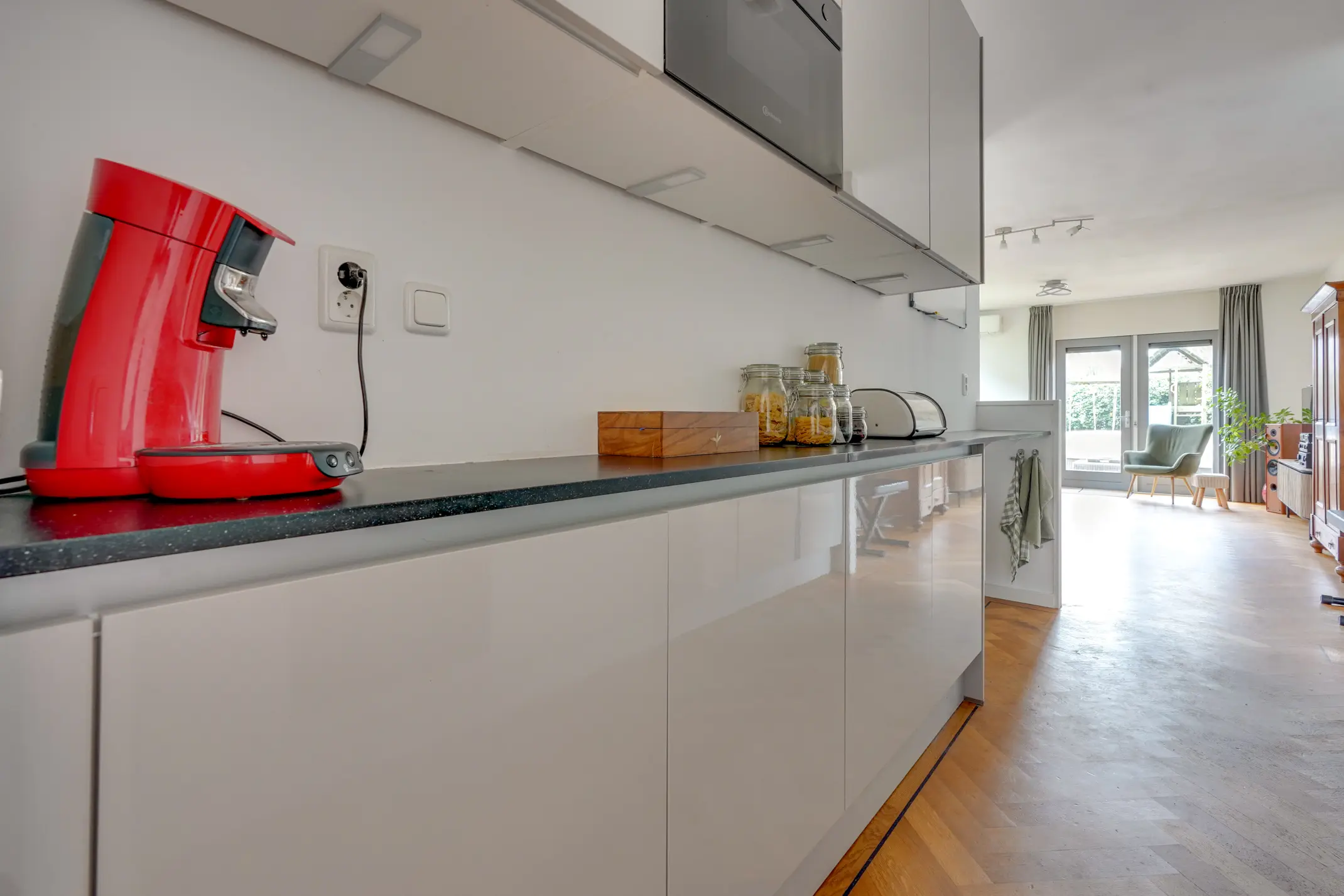 Begane grond: Een harmonie tussen koken en relaxen De zonovergoten leefruimte en de high-end keuken vormt het sociale hart. Via de openslaande deuren wordt de diepe, zonnige tuin een verlengstuk van uw leefruimte. Dankzij de volledige isolatie (gevels, vloer en dak) en de hoogwaardige HR-beglazing geniet u tevens van een perfect binnenklimaat.
