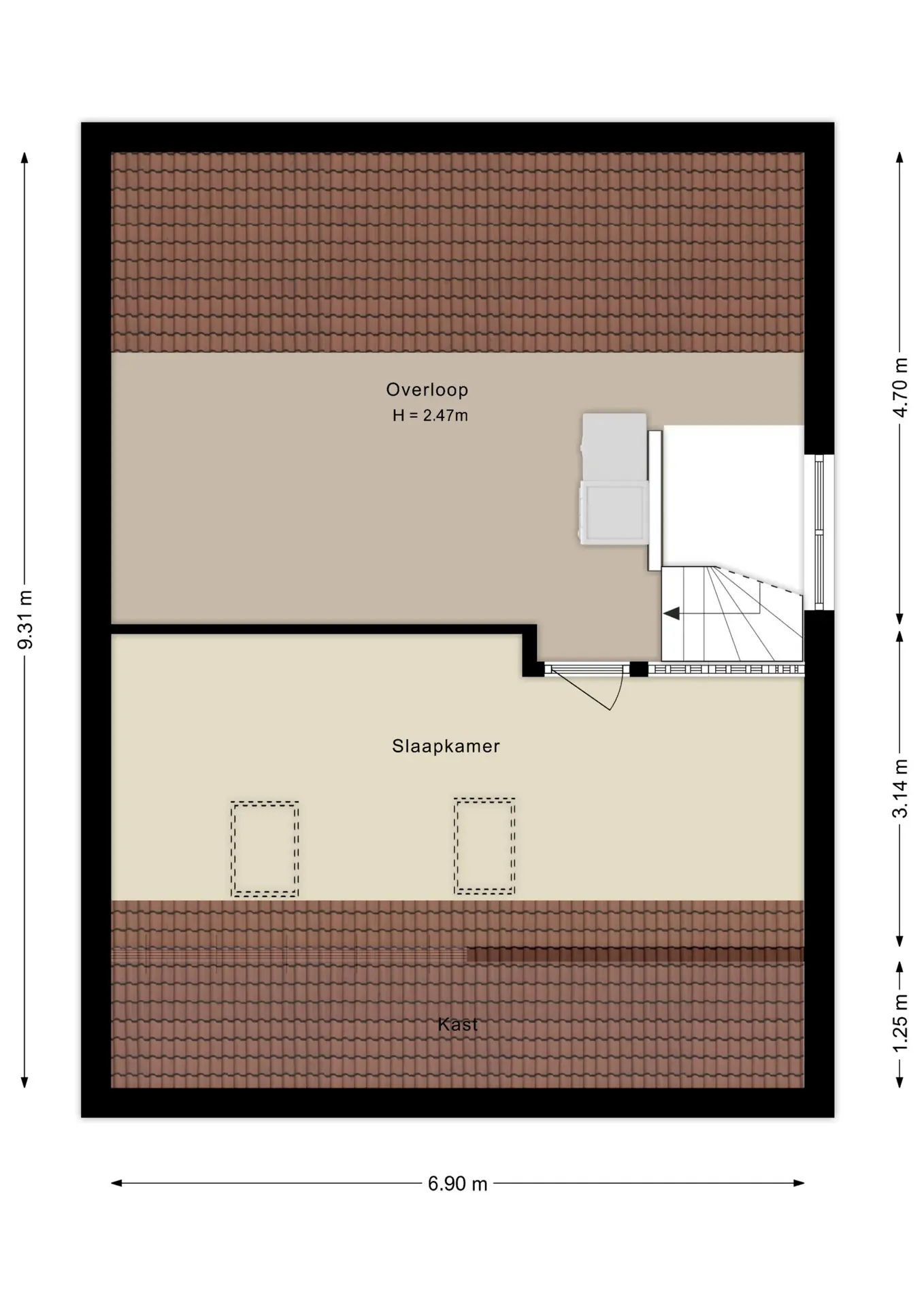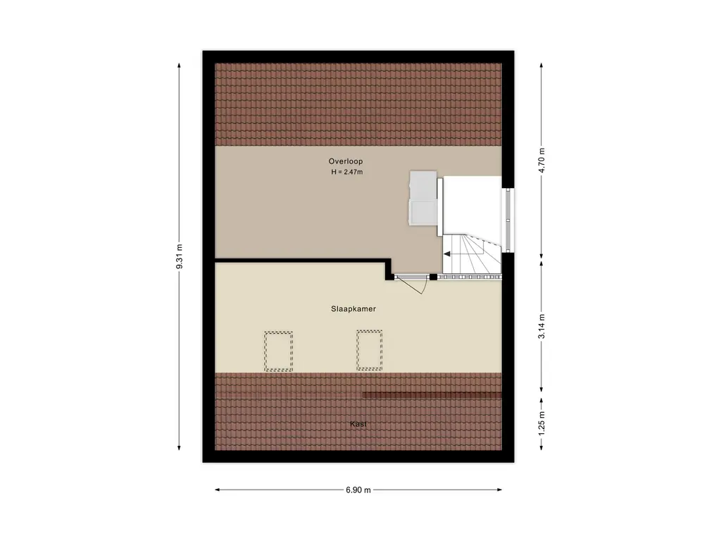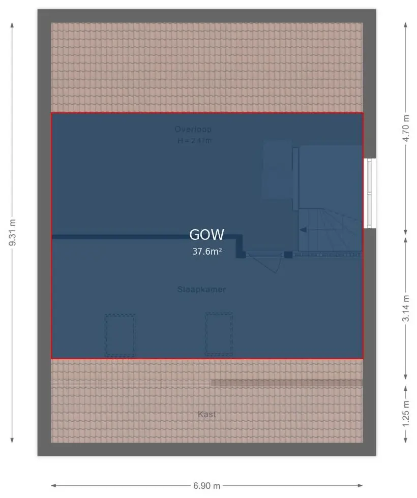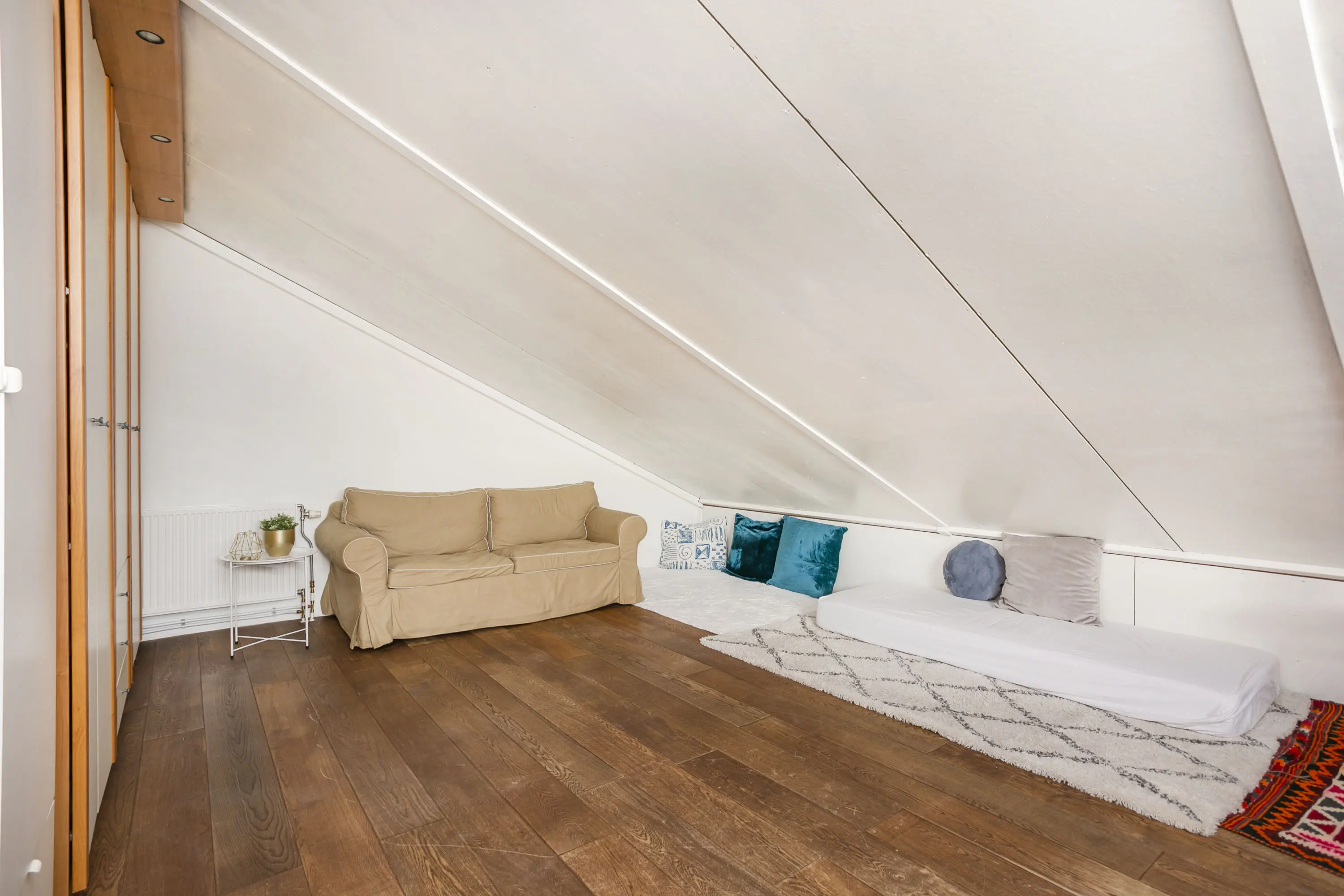 Ruime voorzolder met opstelplaats voor wasmachine, droger, mechanische ventilatie en extra bergruimte. De royale vierde slaapkamer is voorzien van twee dakramen, wat zorgt voor veel licht.