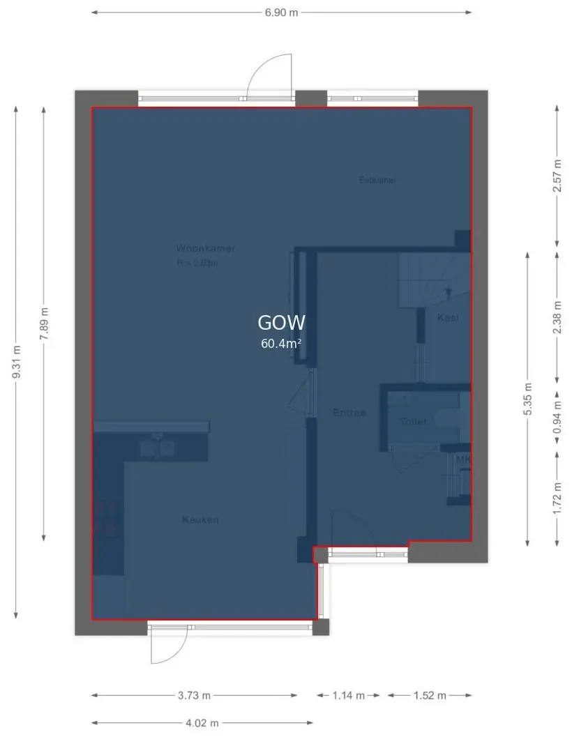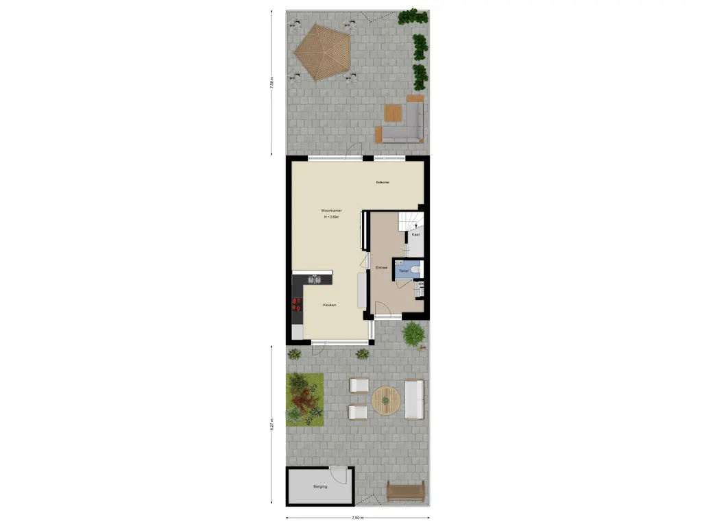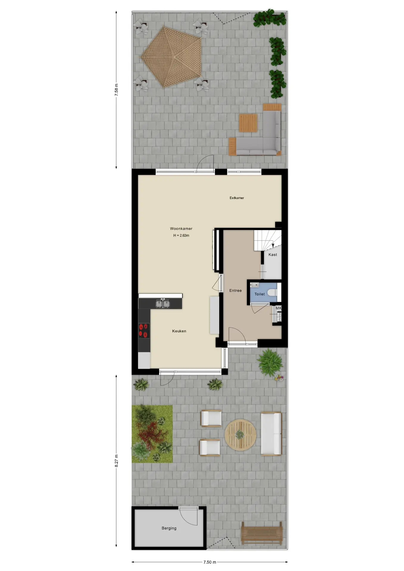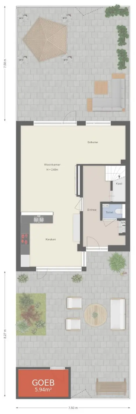 - Mogelijkheid tot uitbouw (heipalen voor 3 meter aanwezig)