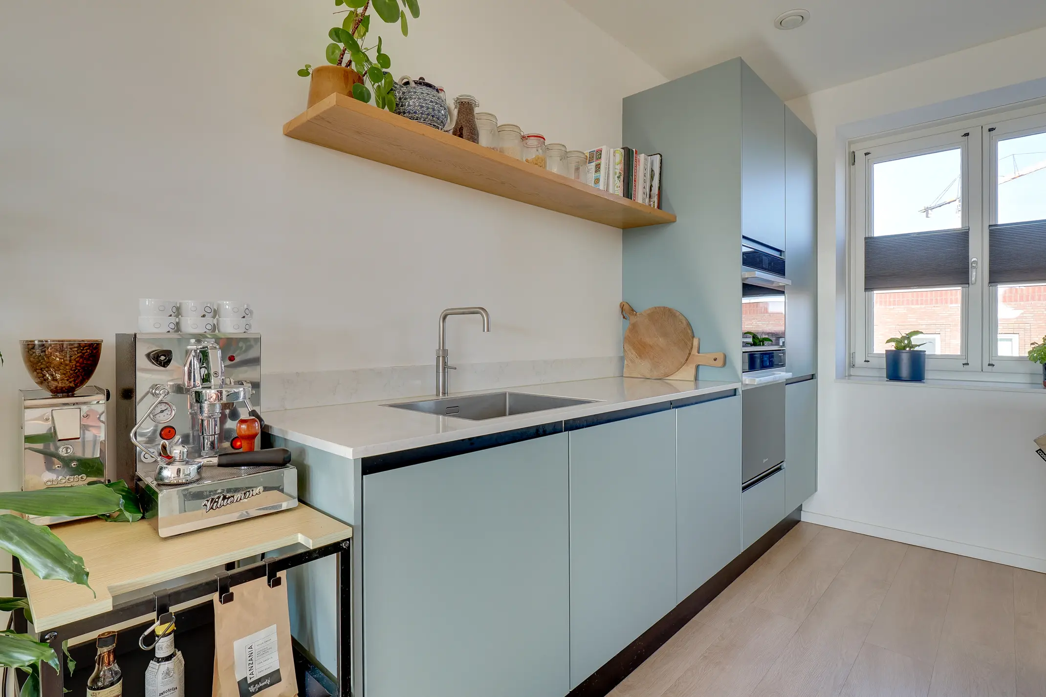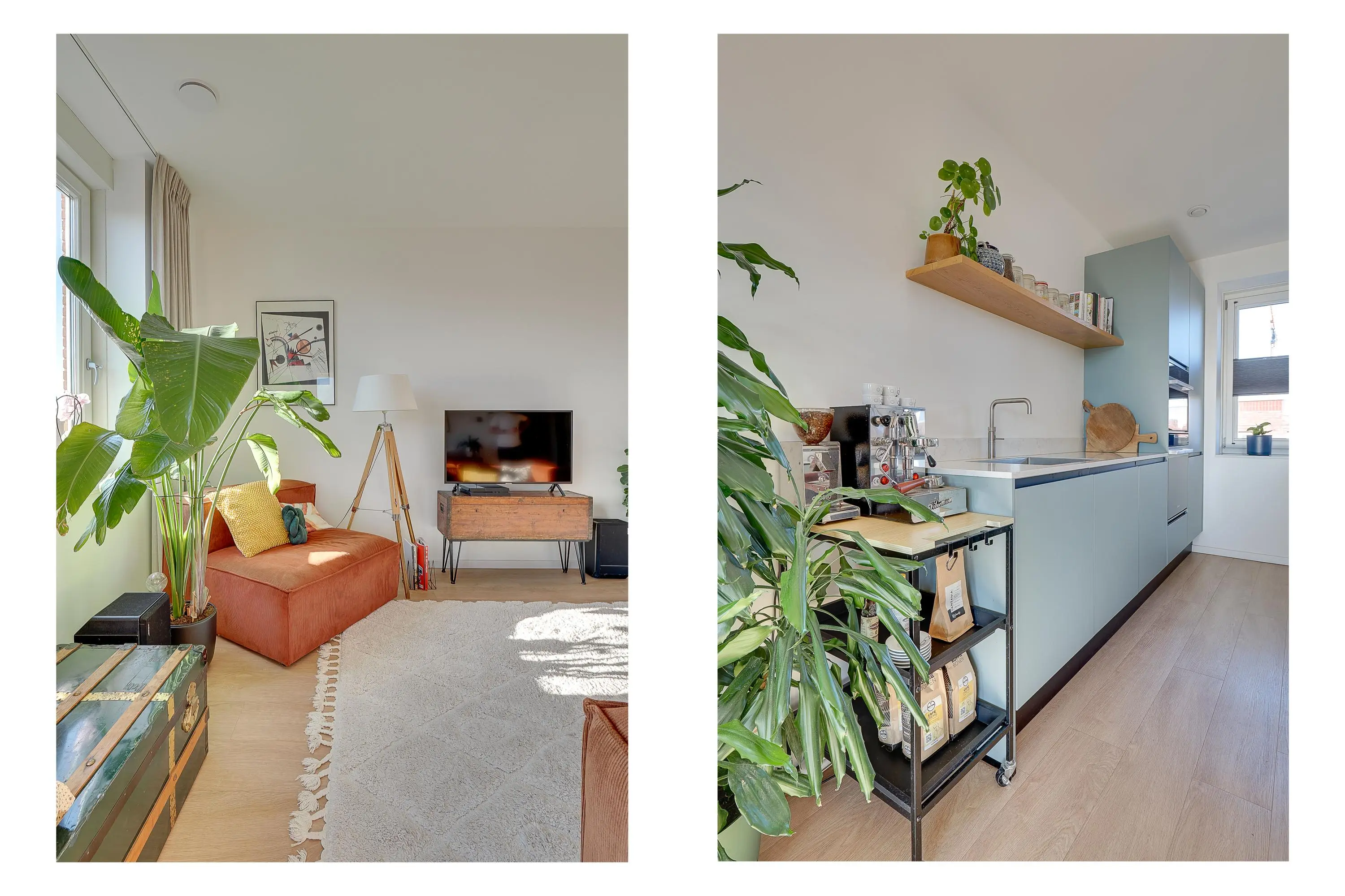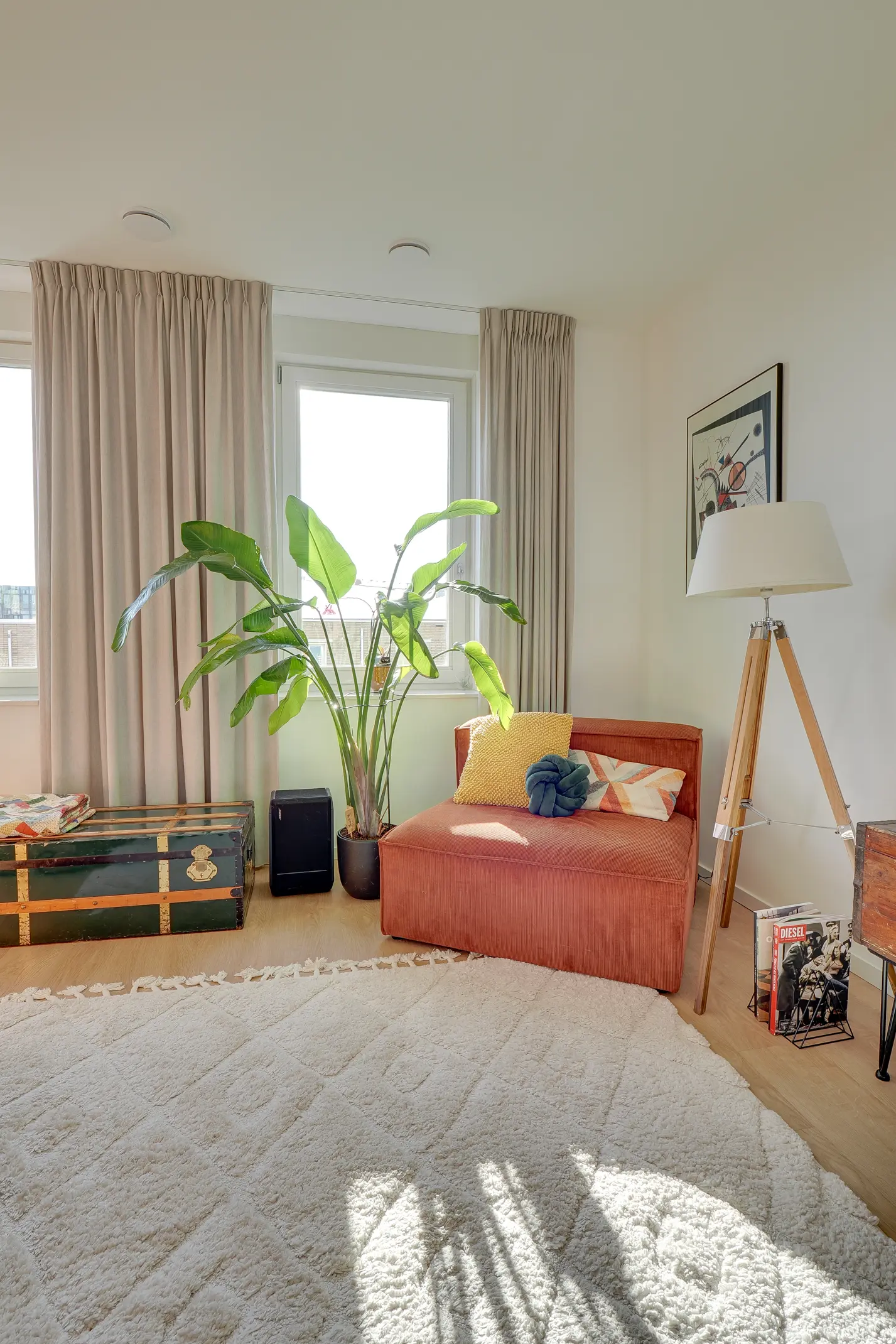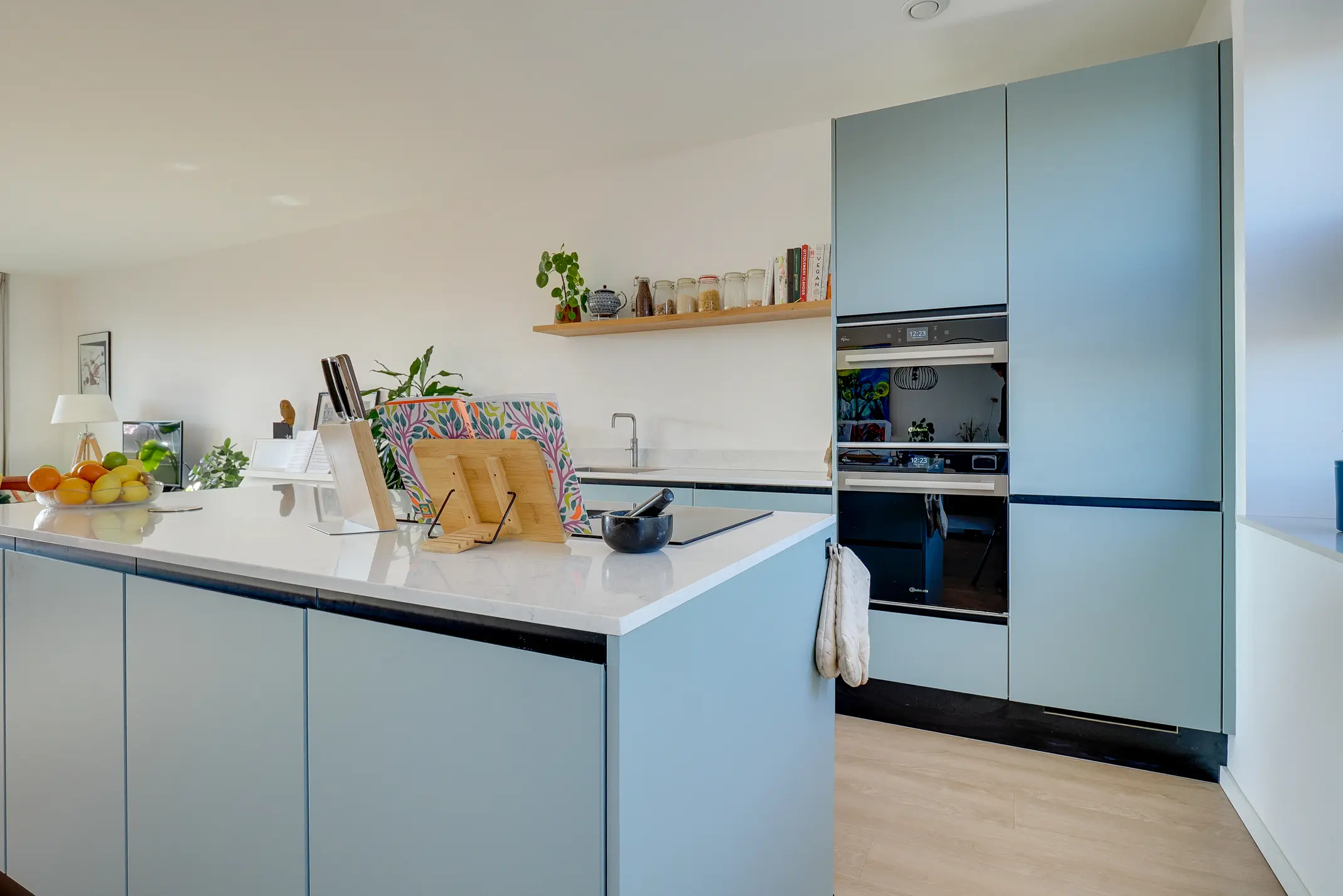 Bij binnenkomst valt meteen de hoge kwaliteit van afwerking op. De royale woonkamer van circa 52 m² vormt het hart van de woning: een heerlijke, lichte leefruimte met grote raampartijen en een open verbinding naar de keuken. De keuken is luxe uitgevoerd met hoogwaardige apparatuur, waaronder een Quooker, stoomoven en combimagnetron. Dankzij de slimme indeling is er veel werkruimte en voldoende kastruimte aanwezig. Vanuit de woonkamer stap je via een deur het balkon van ongeveer 7 m² op, waar je op zonnige momenten heerlijk kunt zitten en uitkijkt over de rustige omgeving.