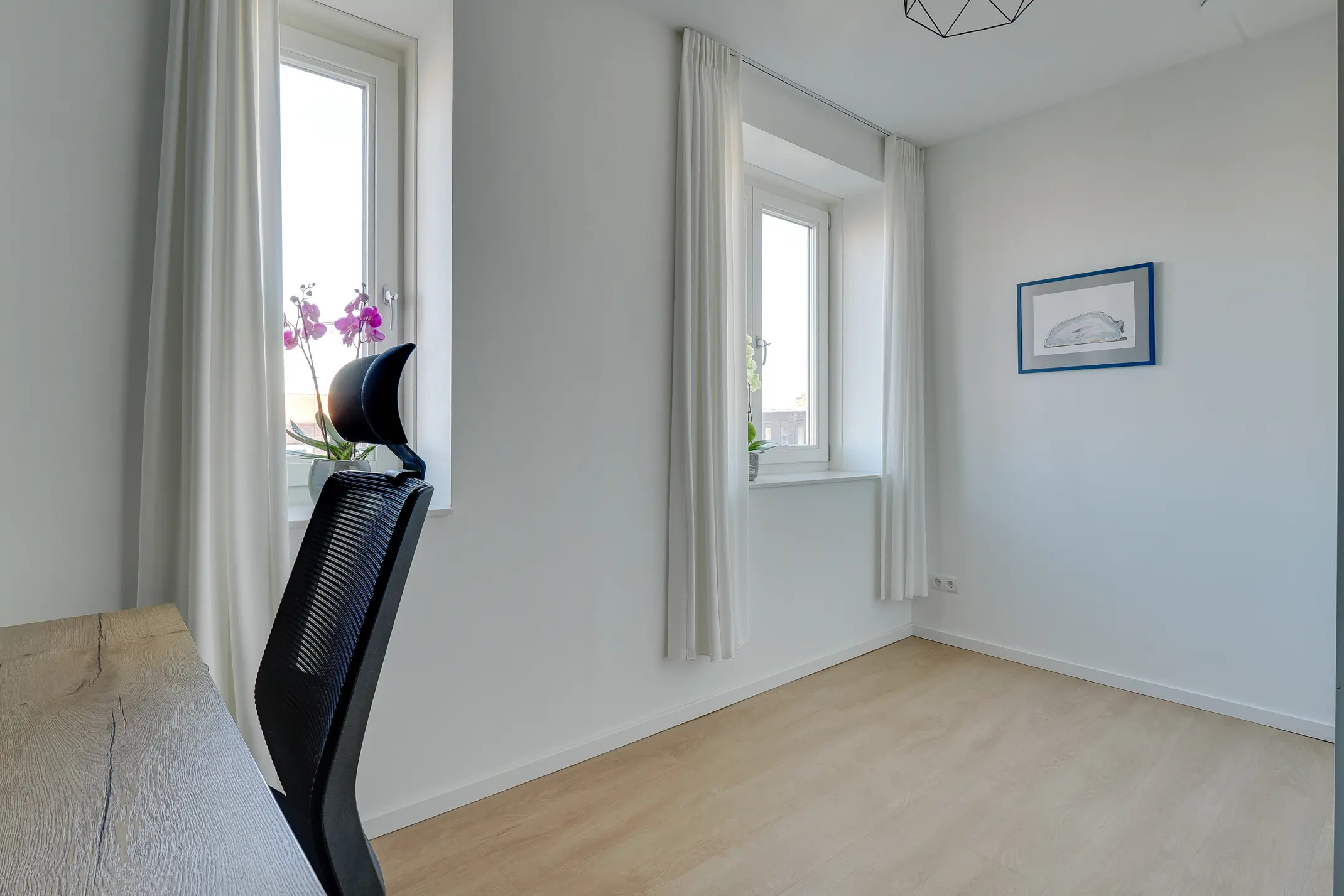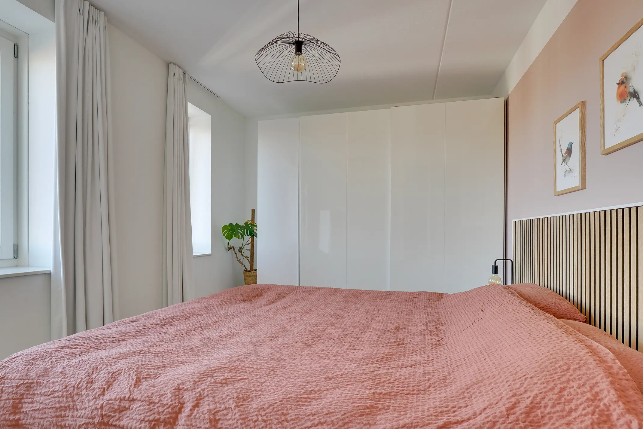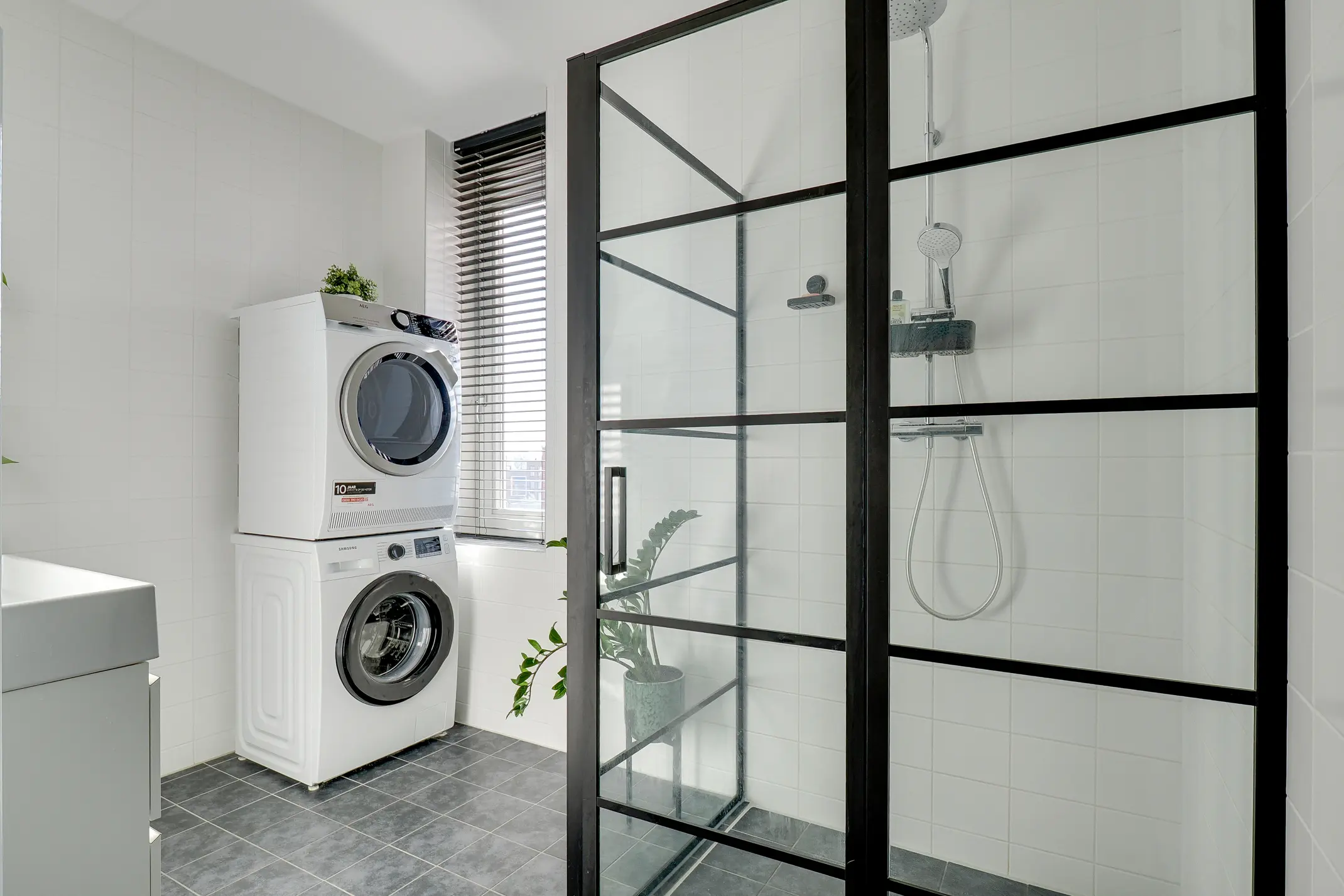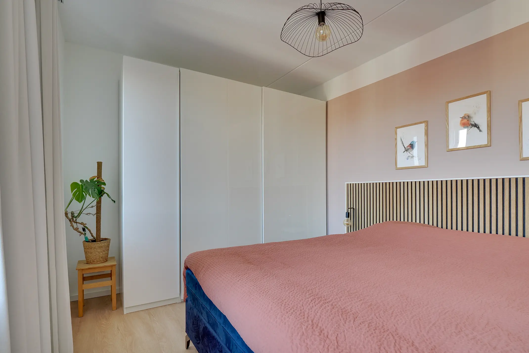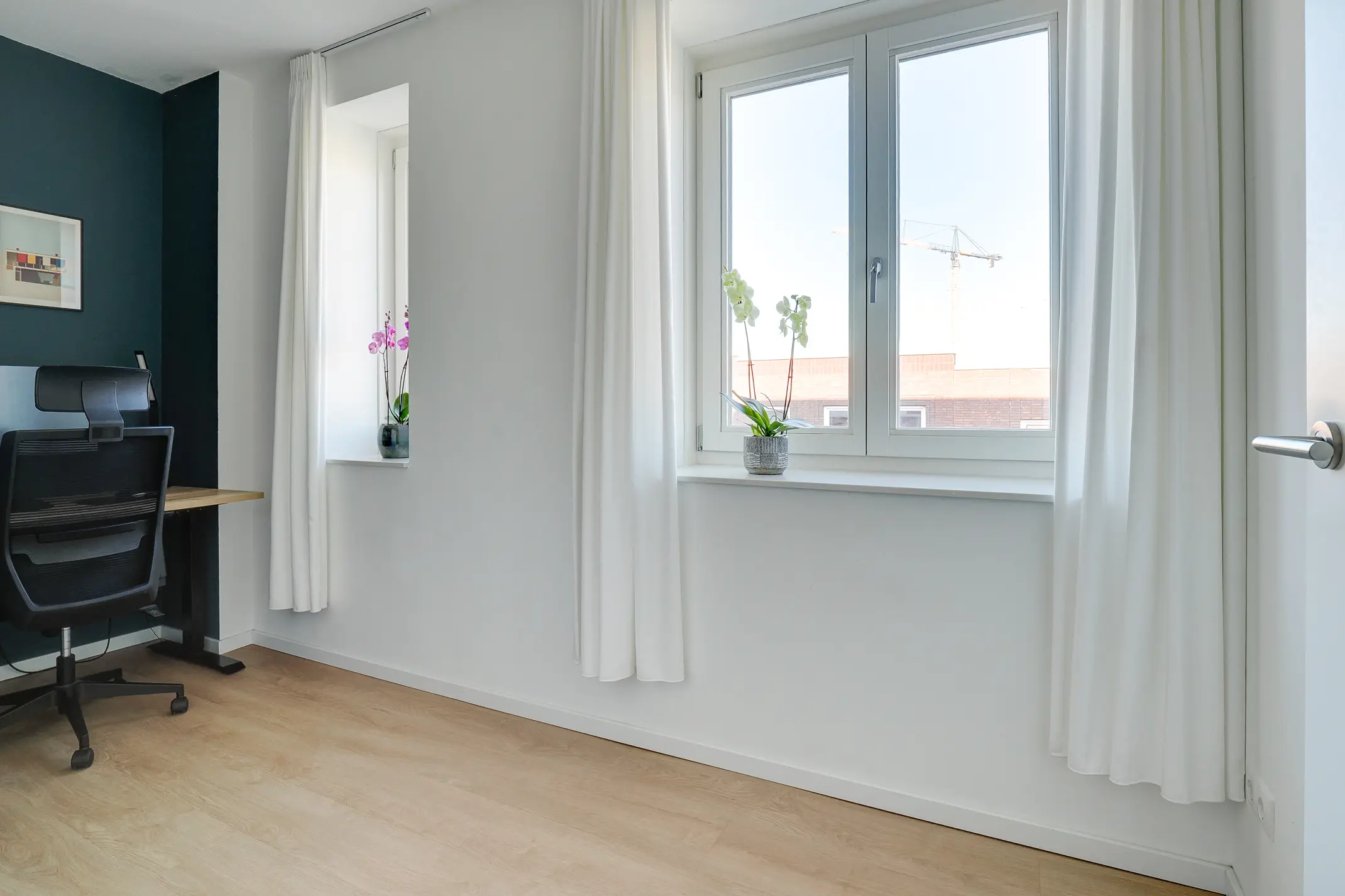 De twee slaapkamers zijn ruim en praktisch in te delen, geschikt als master bedroom, logeerkamer, thuiswerkruimte of combinatie daarvan. De moderne badkamer is stijlvol ingericht en voorzien van een inloopdouche, wastafelmeubel en aansluiting voor de wasmachine. De woning beschikt daarnaast over een eigen berging van circa 5 m² in de parkeerkelder, ideaal voor opslag van fietsen, bagage of seizoensspullen. Uiteraard hoort er een vaste parkeerplaats in de ondergelegen parkeergarage bij het appartement.