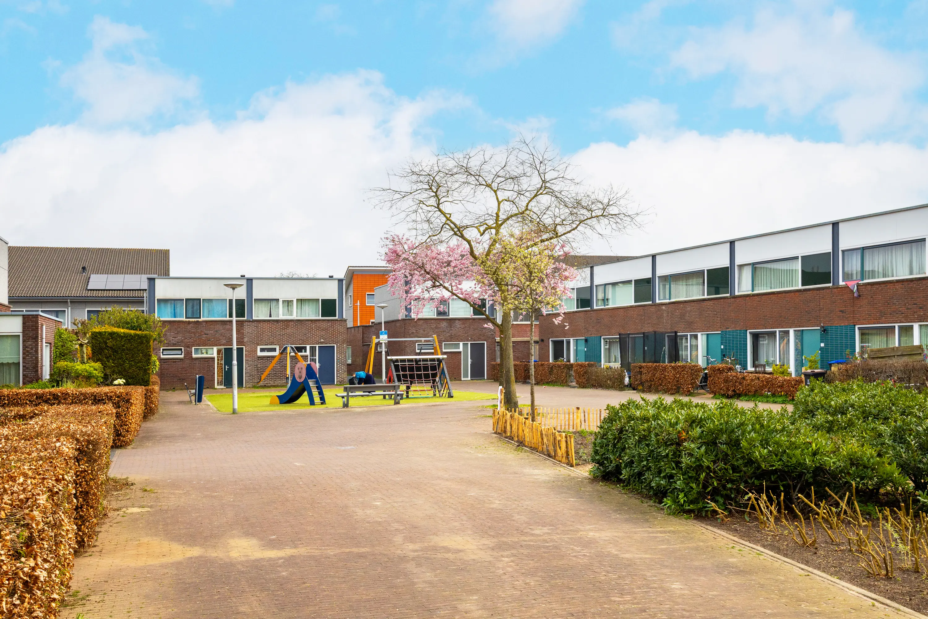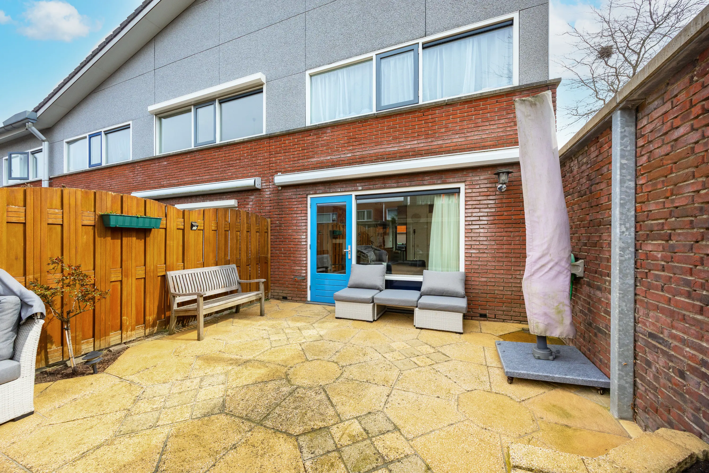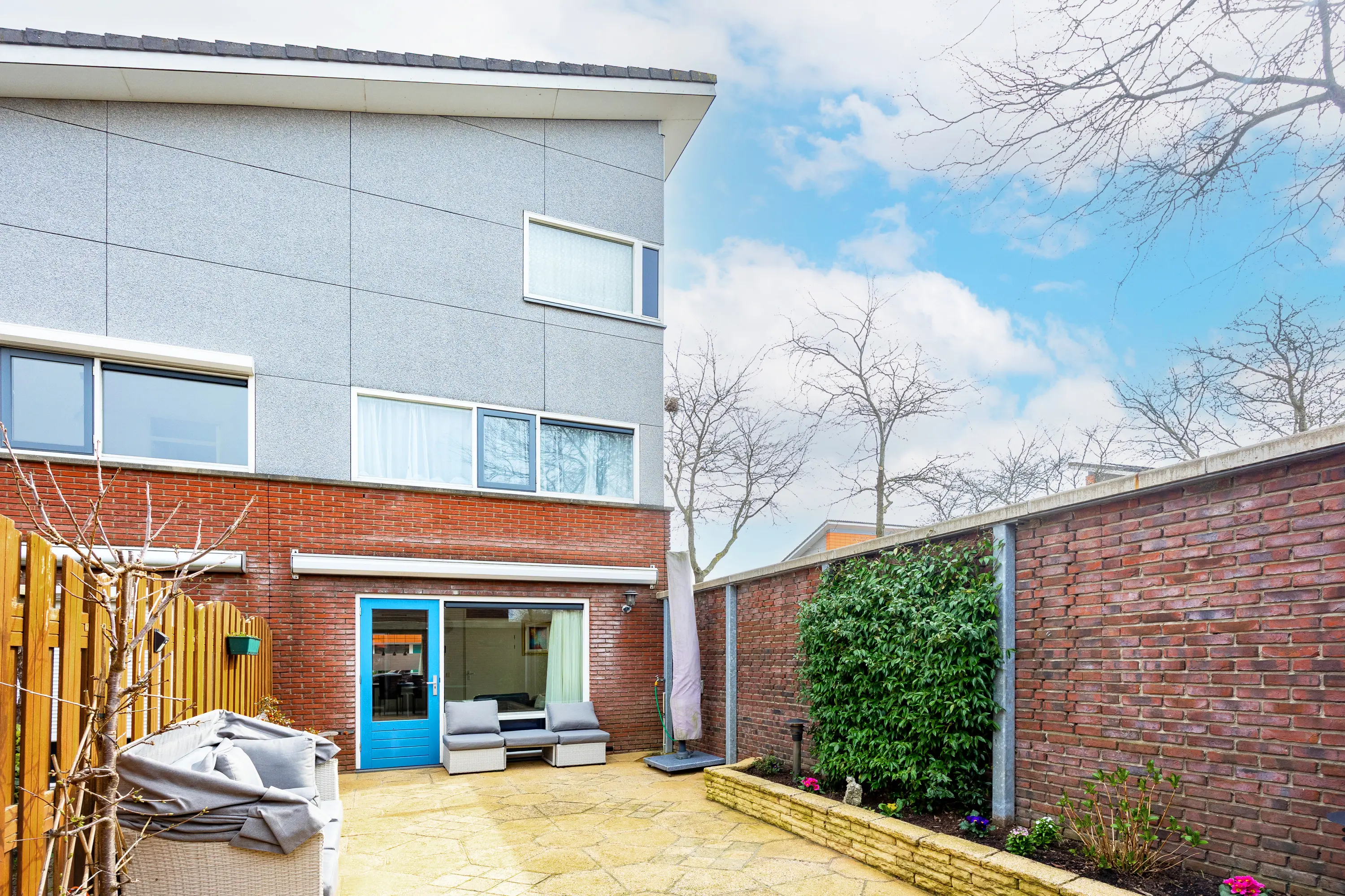 De achtertuin is licht en ruim opgezet, waardoor je hier optimaal van de zon kunt genieten. Een fijne plek voor een lange lunch, een gezellige borrel of gewoon om even tot rust te komen. De vrijstaande berging (ca. 8 m²) biedt voldoende ruimte voor fietsen en opslag.