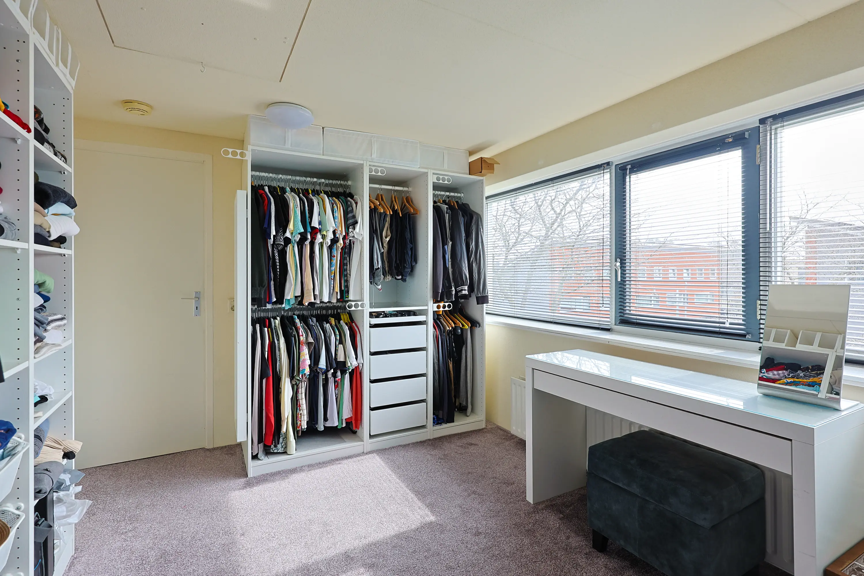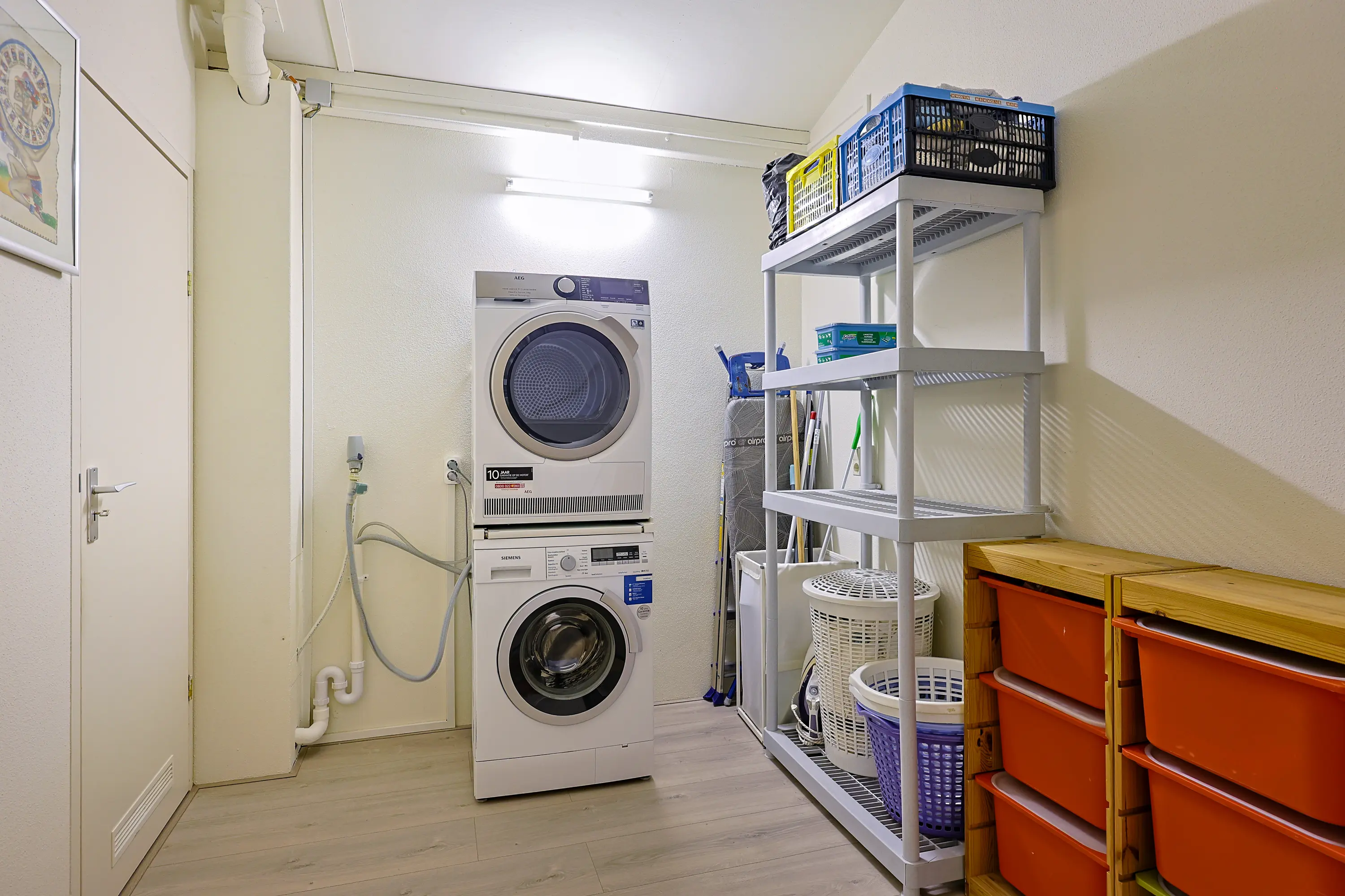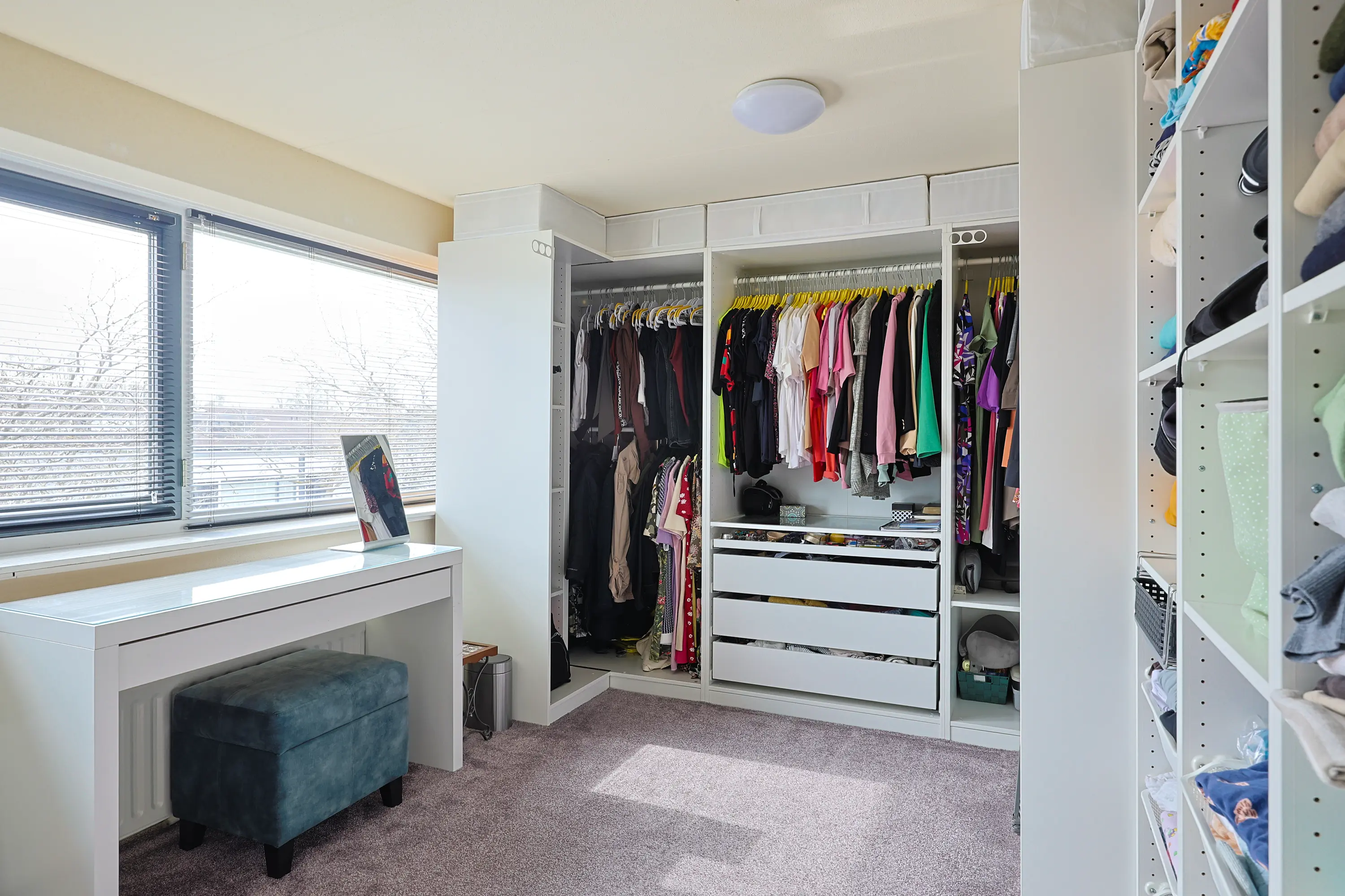 De woning beschikt over maar liefst vier slaapkamers. Daarnaast is er een volwaardige kamer ingericht als riante inloopkast een unieke en praktische toevoeging. Op dezelfde verdieping bevindt zich nog een extra kamer die perfect kan dienen als thuiswerkplek, babykamer of hobbyruimte. Ook is er een aparte ruimte voor wasmachine en droger aanwezig.