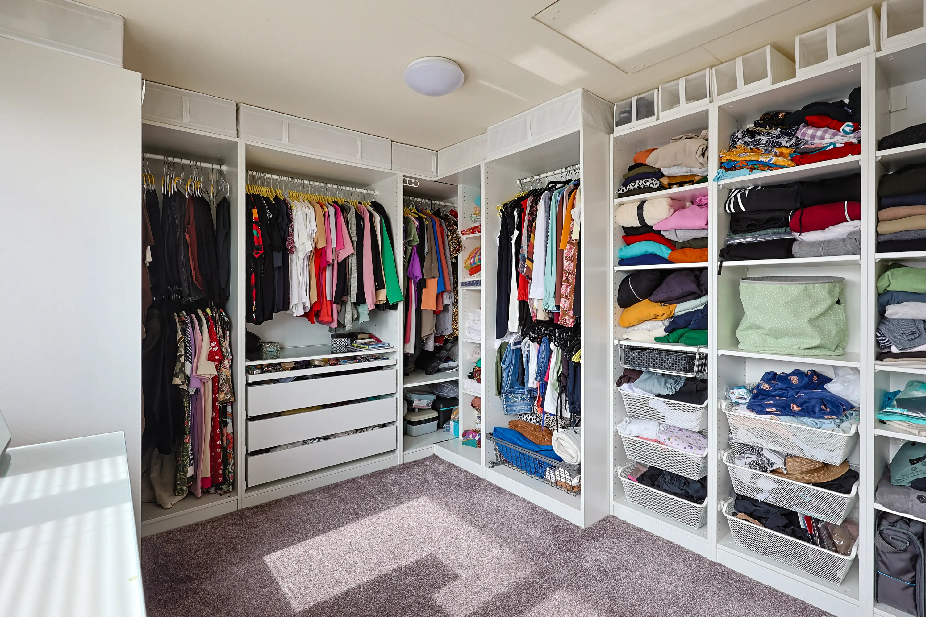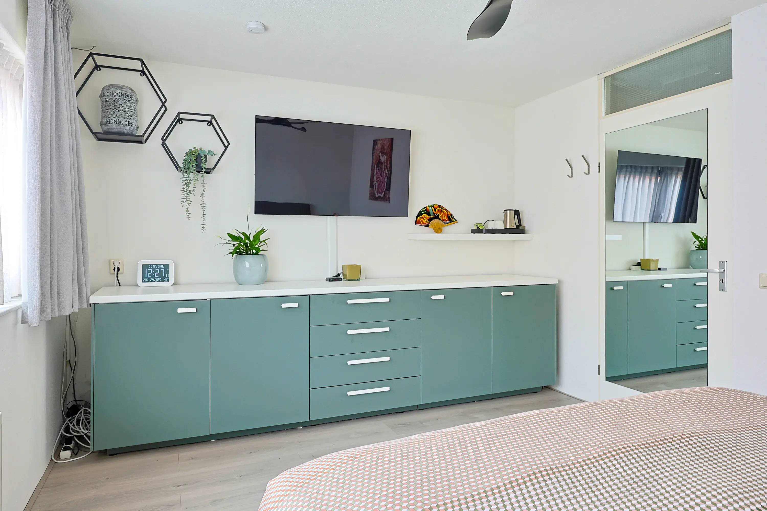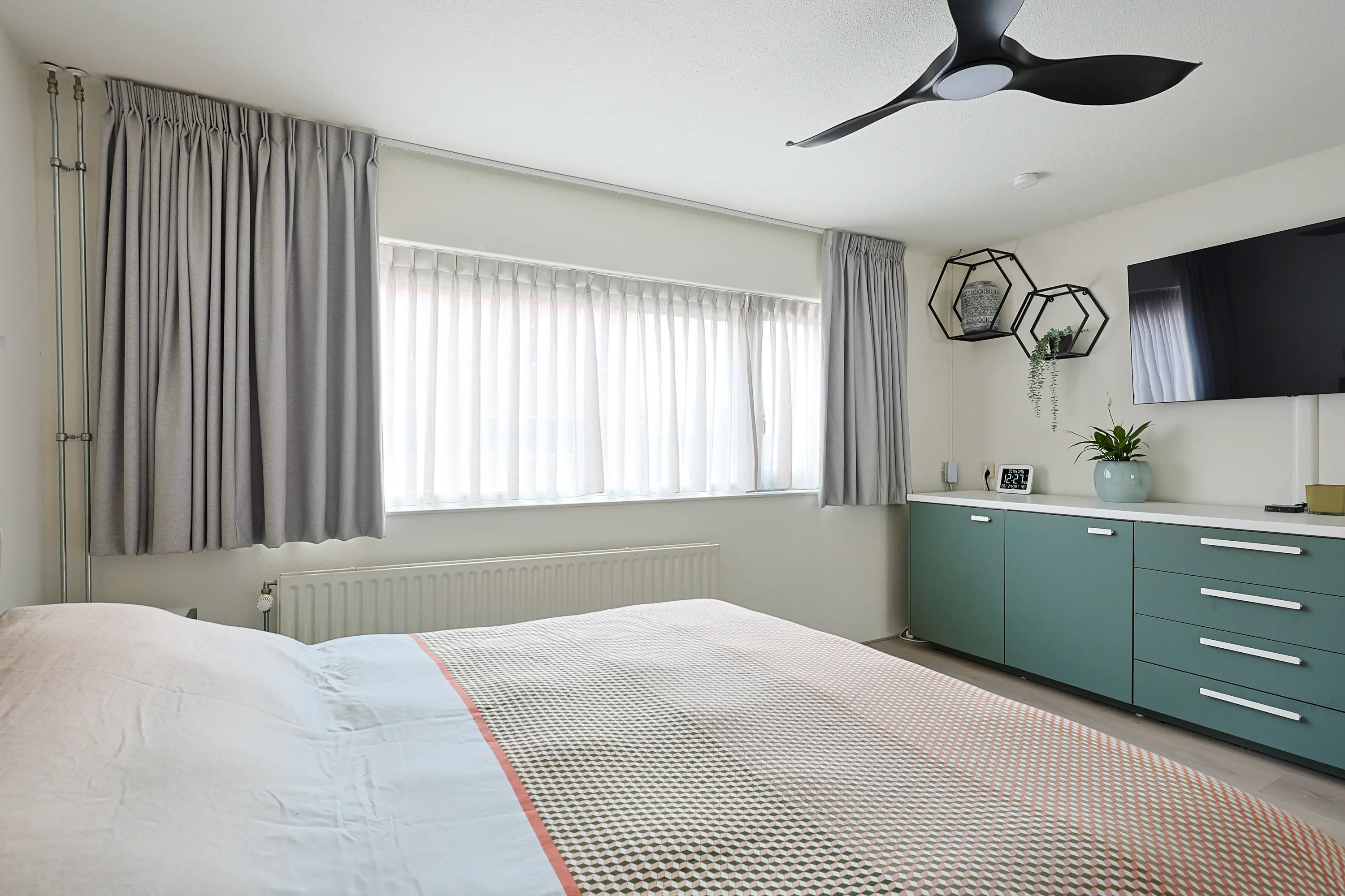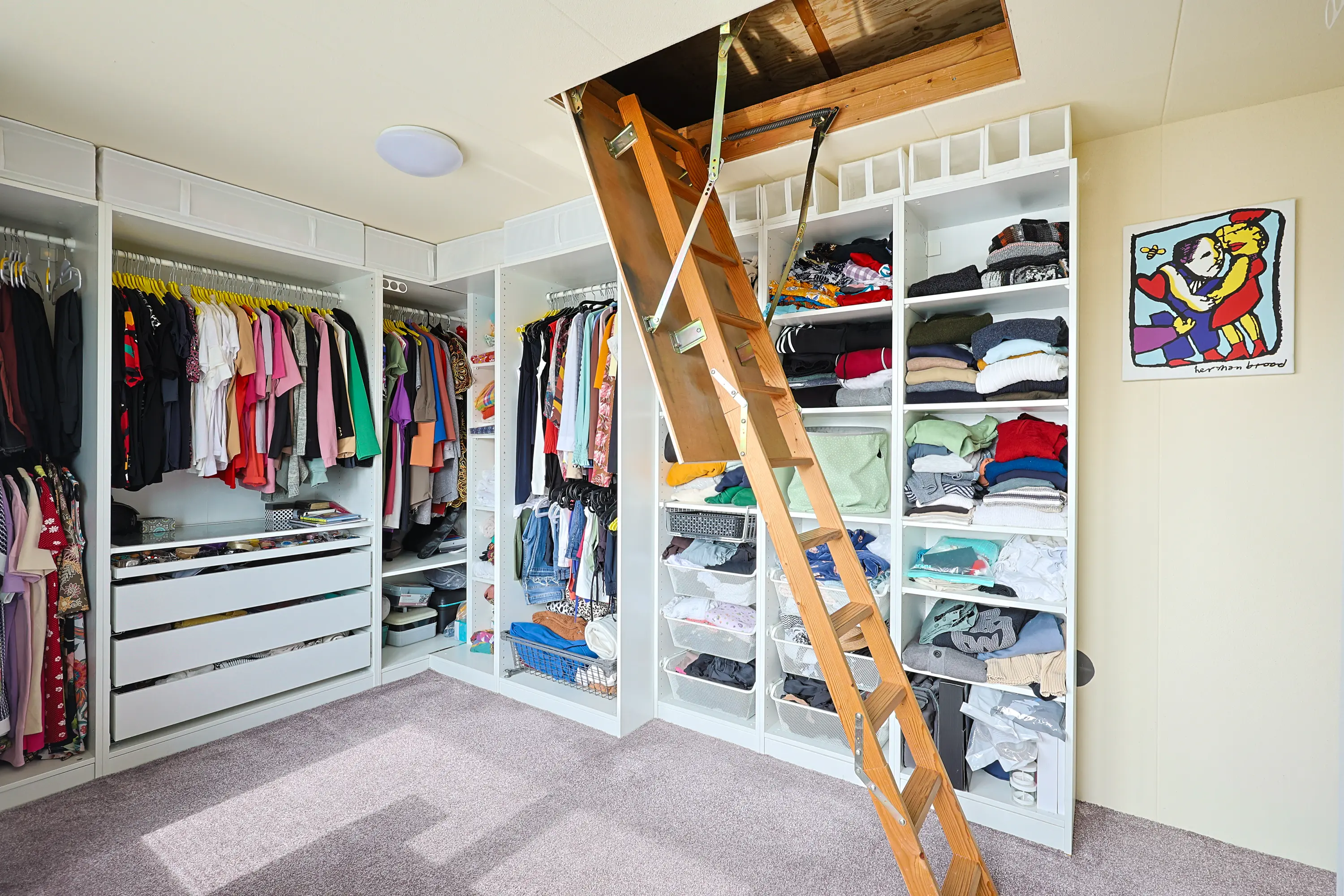 De woning beschikt over maar liefst vier slaapkamers. Daarnaast is er een volwaardige kamer ingericht als riante inloopkast een unieke en praktische toevoeging. Op dezelfde verdieping bevindt zich nog een extra kamer die perfect kan dienen als thuiswerkplek, babykamer of hobbyruimte. Ook is er een aparte ruimte voor wasmachine en droger aanwezig.