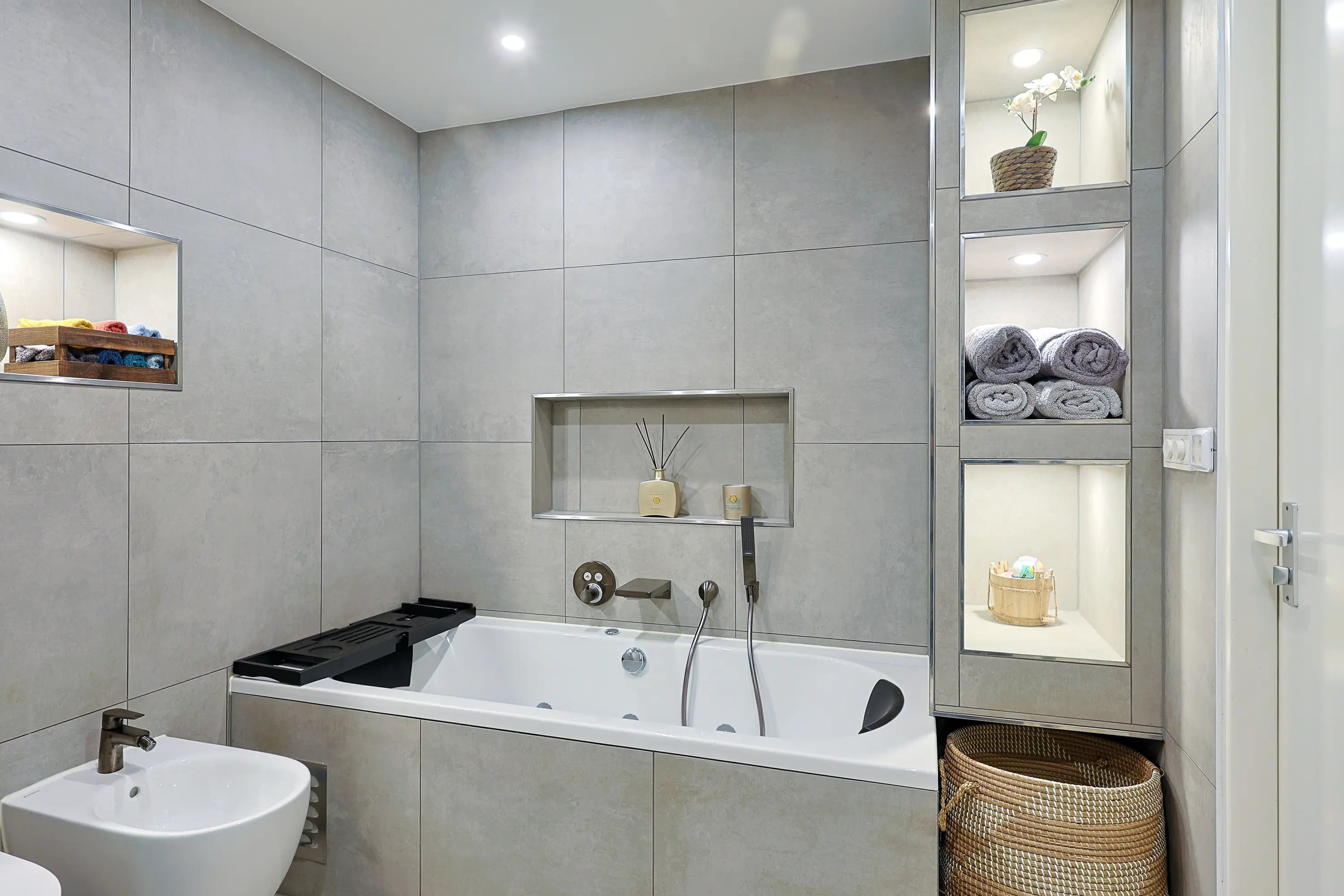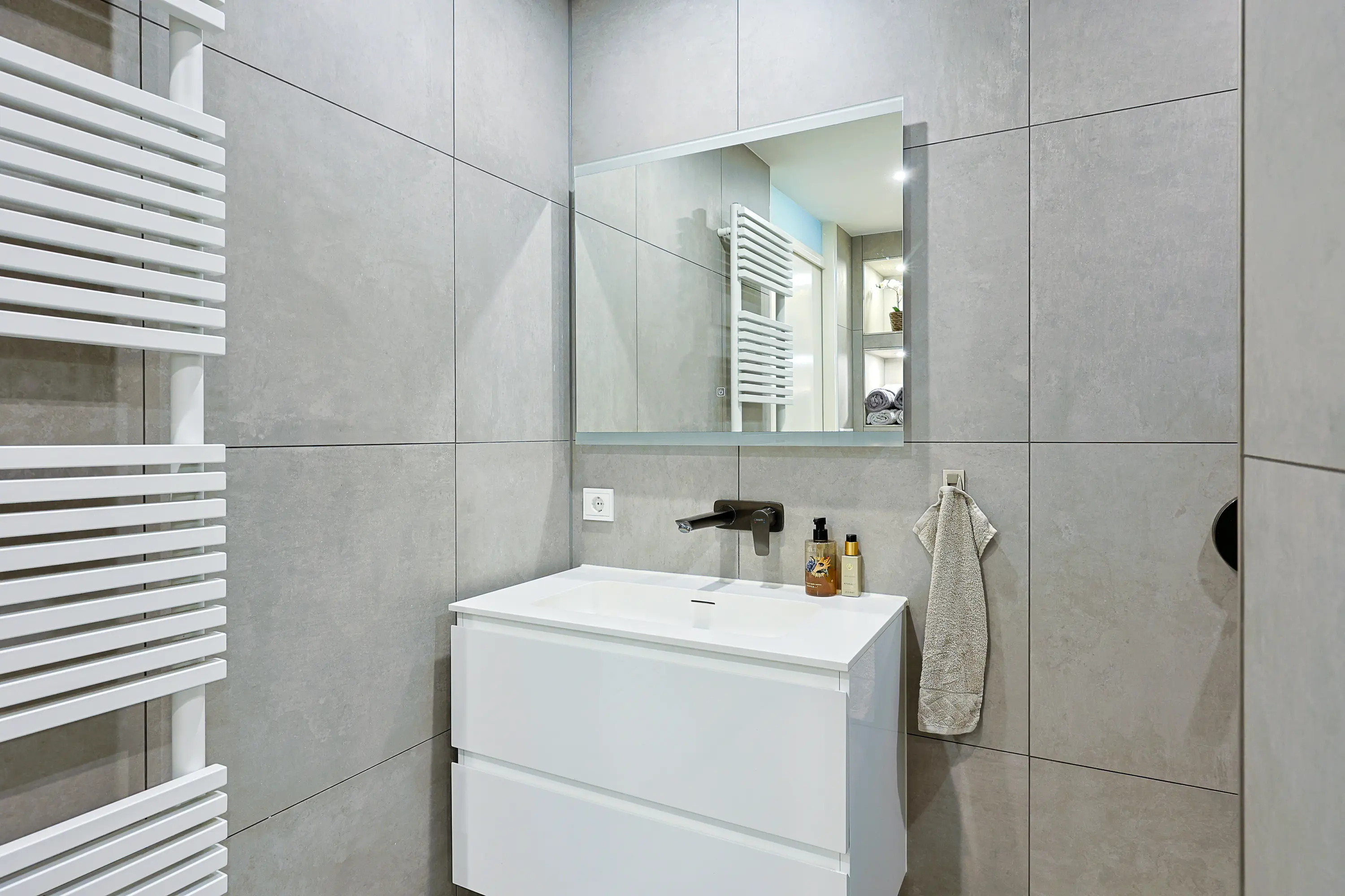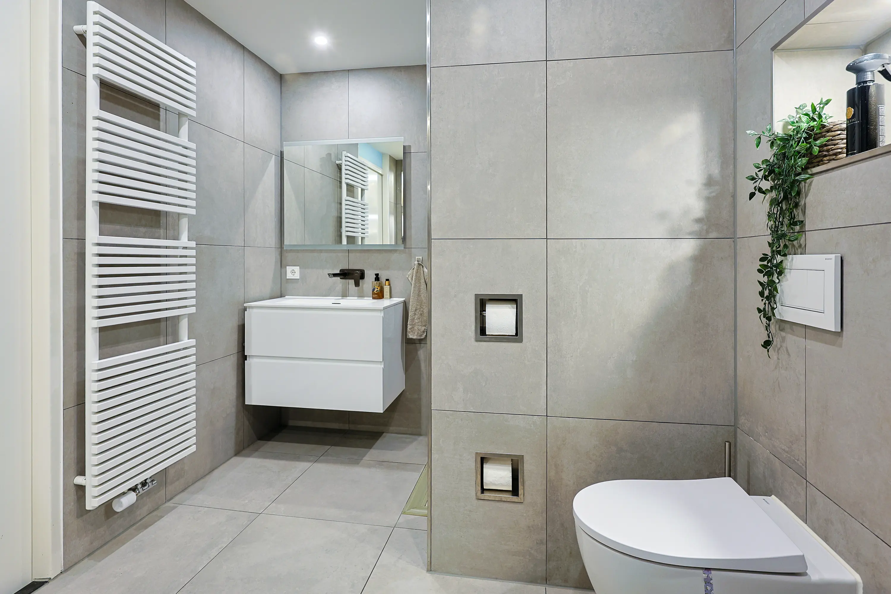De vernieuwde badkamer is een echte eyecatcher. Met een ruime inloopdouche én een heerlijk bubbelbad heb je hier alle mogelijkheden om te ontspannen. De moderne afwerking en hoogwaardige materialen geven deze ruimte een luxe uitstraling.