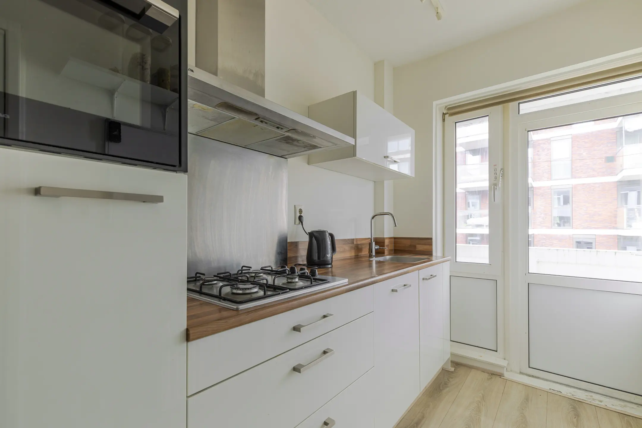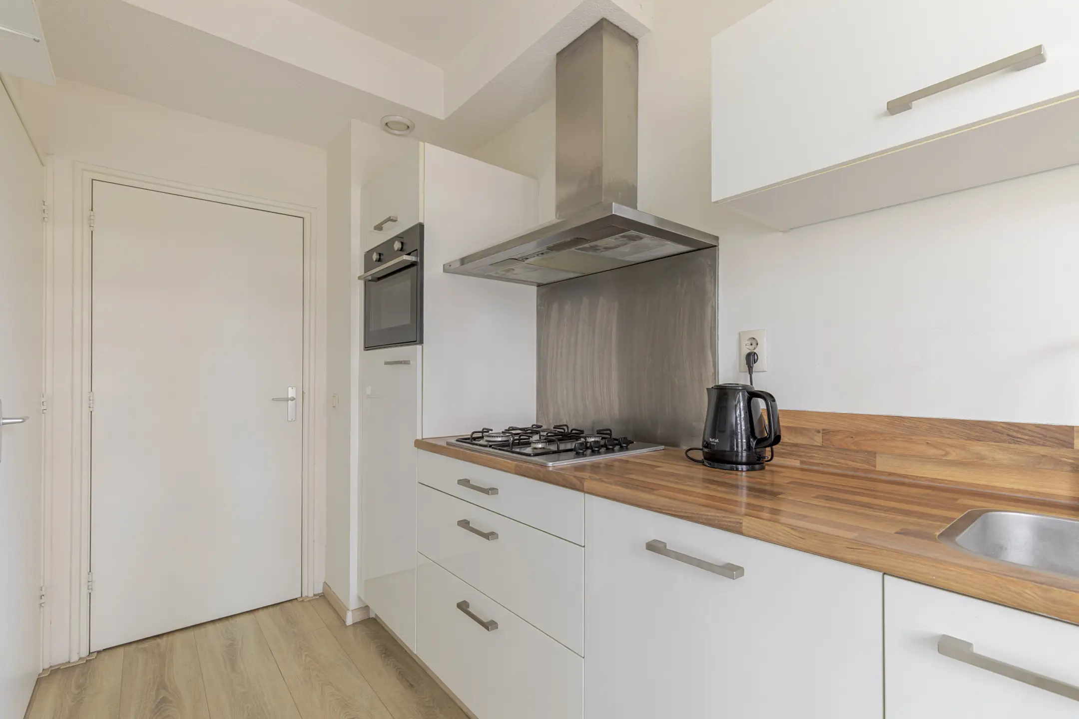 De aparte keuken is goed onderhouden en voorzien van diverse inbouwapparatuur. Met een oppervlakte van circa 6 m² is de keuken efficiënt ingedeeld en biedt voldoende werkblad- en opbergruimte. De moderne afwerking maakt het een prettige plek om te koken. De keuken wordt aangevuld met extra opbergkasten.