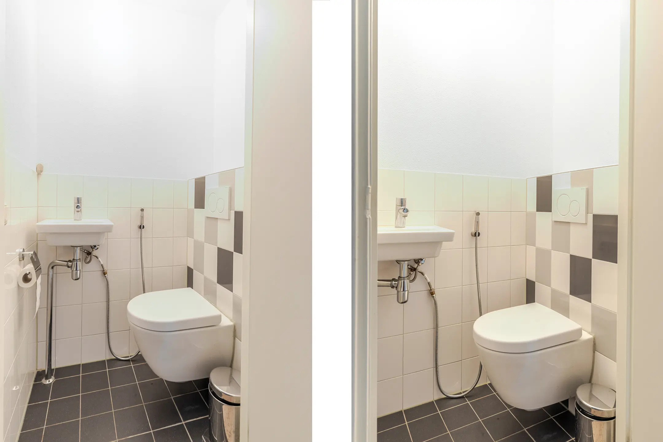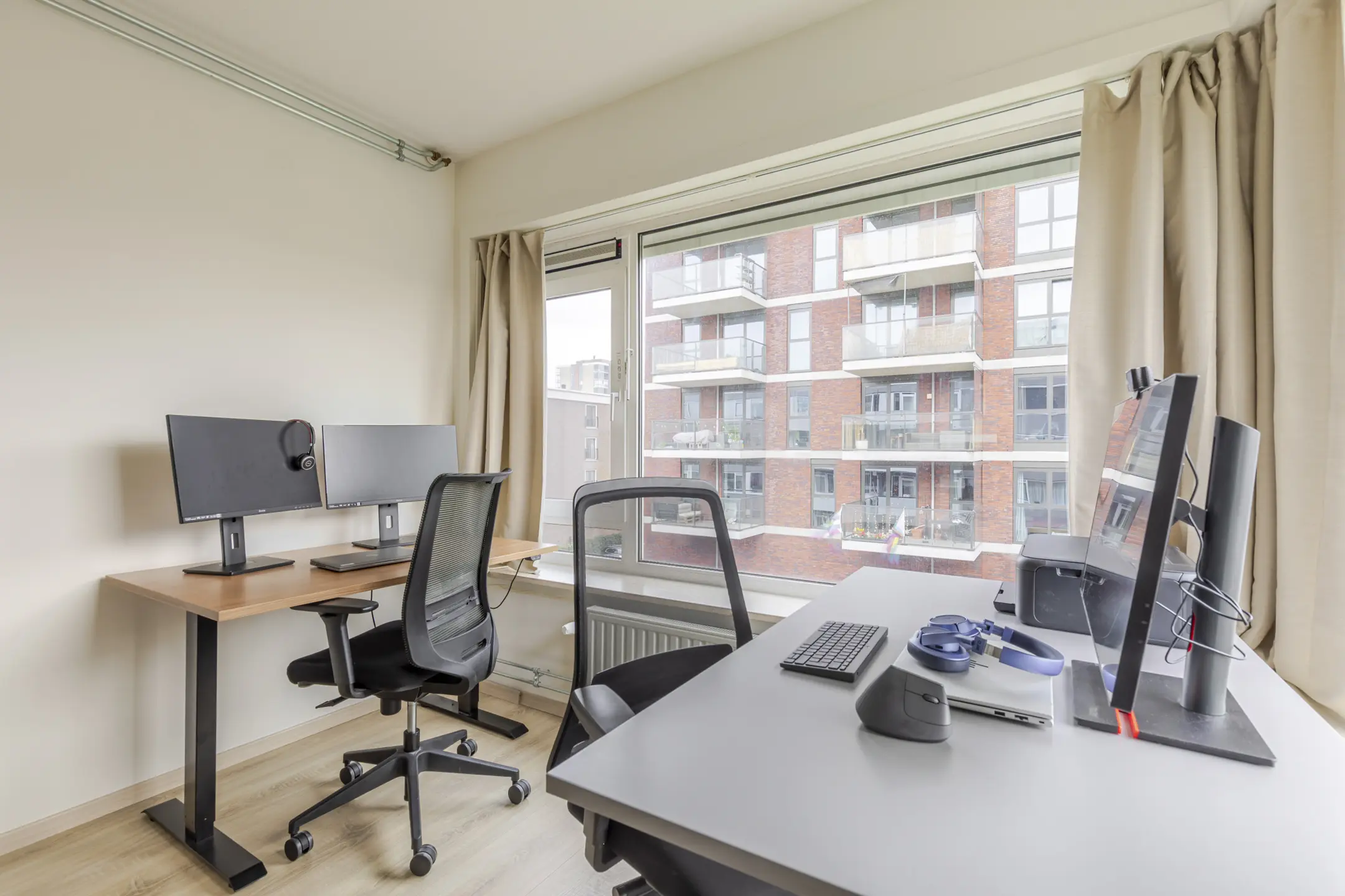 De bijkeuken biedt voldoende opbergruimte voor een wasmachine, droger en de Intergas HRE One cv-ketel (2017) die zorgt voor verwarming en warm water in het hele appartement.