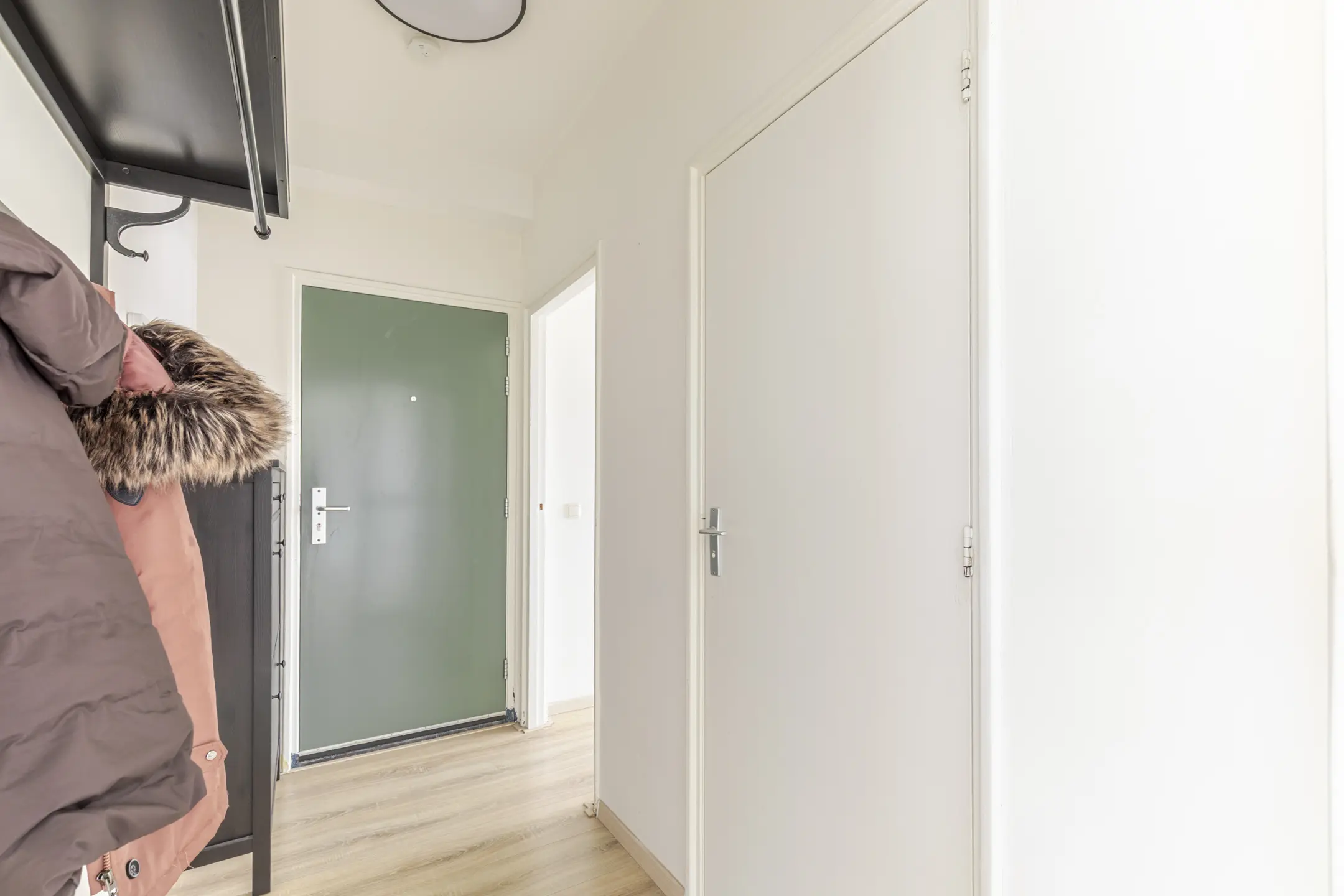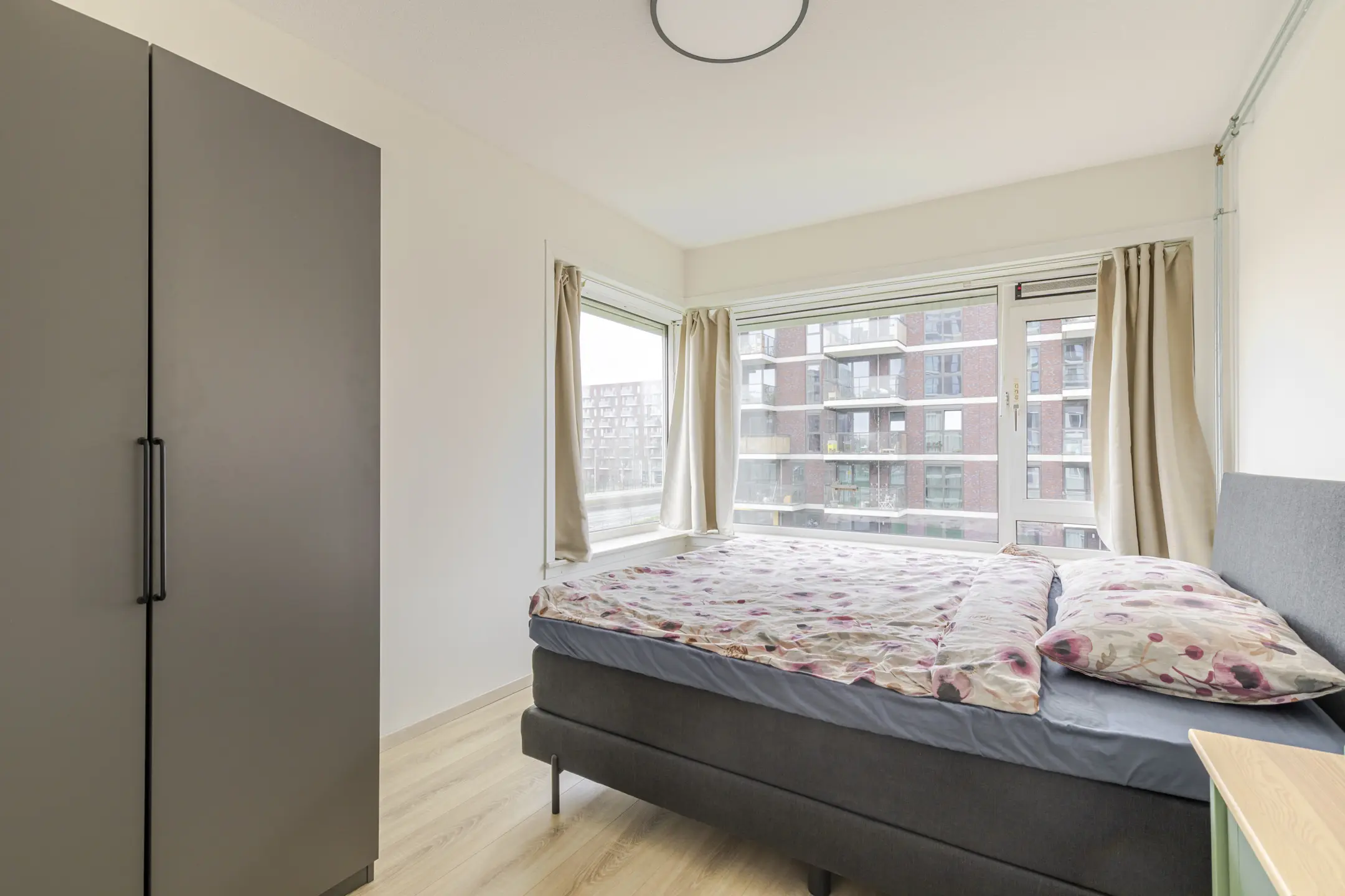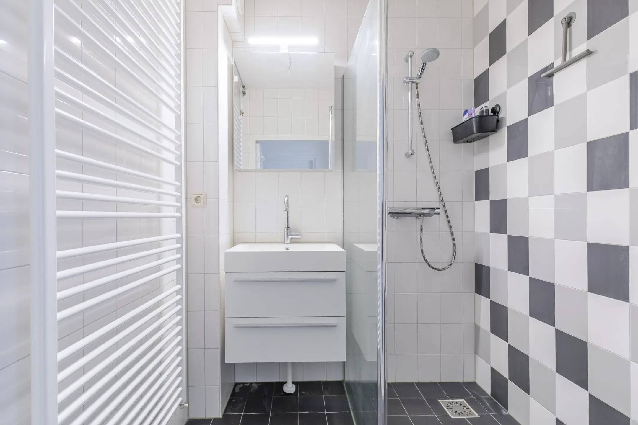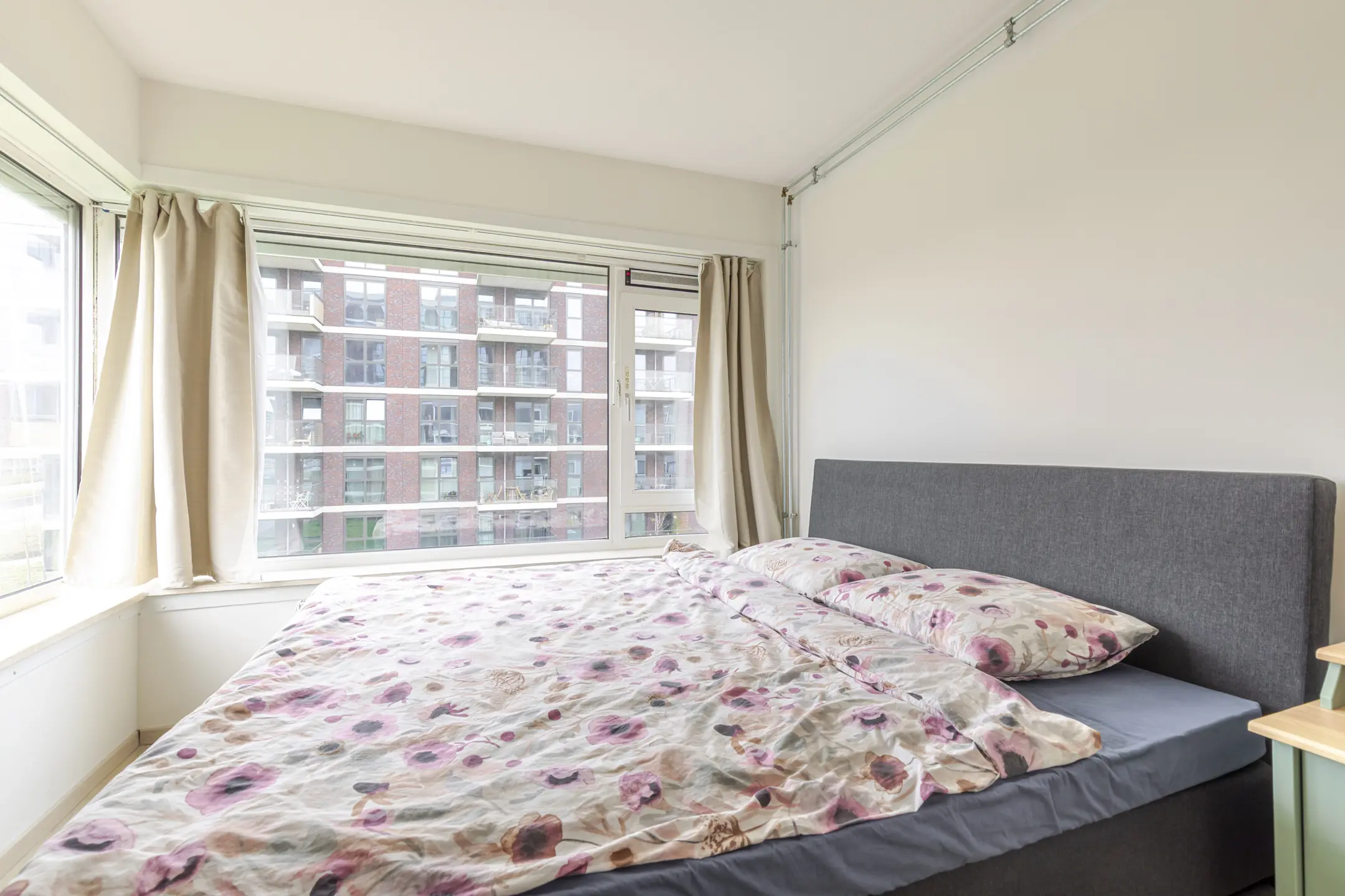 Het appartement beschikt over twee slaapkamers met een ruime indeling, veel daglicht en een prachtig uitzicht op de buurt dankzij de hoekligging, waardoor het geschikt is voor starters, stellen of een klein gezin. De badkamer bevindt zich tussen de slaapkamers en is voorzien van een inloopdouche, wastafel en badmeubel. Een apart toilet draagt ??bij aan het comfort van de woning.