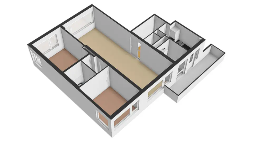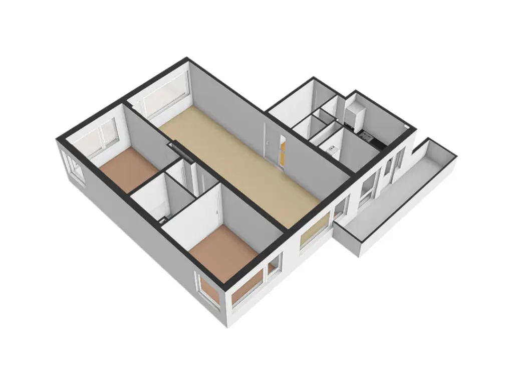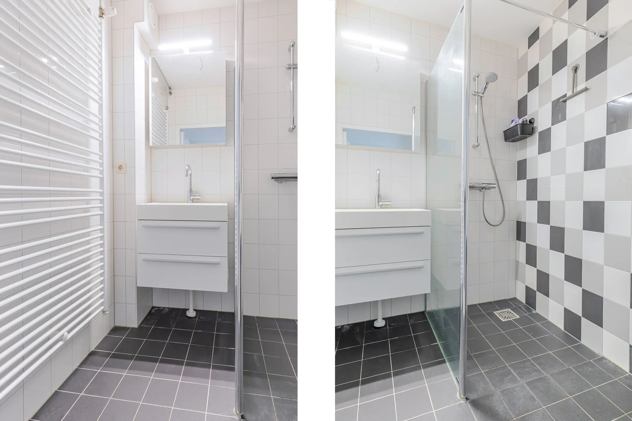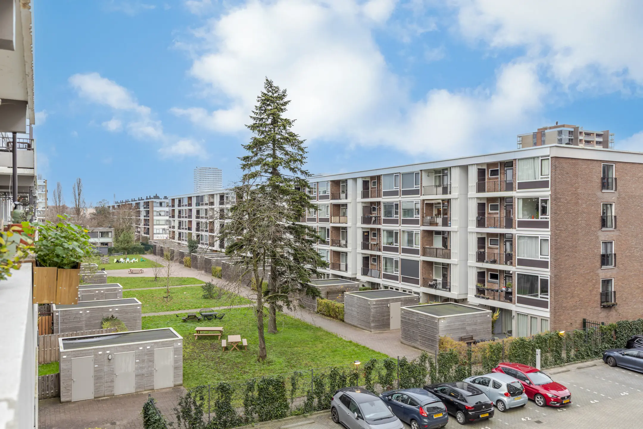 Het appartement beschikt over twee slaapkamers met een ruime indeling, veel daglicht en een prachtig uitzicht op de buurt dankzij de hoekligging, waardoor het geschikt is voor starters, stellen of een klein gezin. De badkamer bevindt zich tussen de slaapkamers en is voorzien van een inloopdouche, wastafel en badmeubel. Een apart toilet draagt ??bij aan het comfort van de woning.