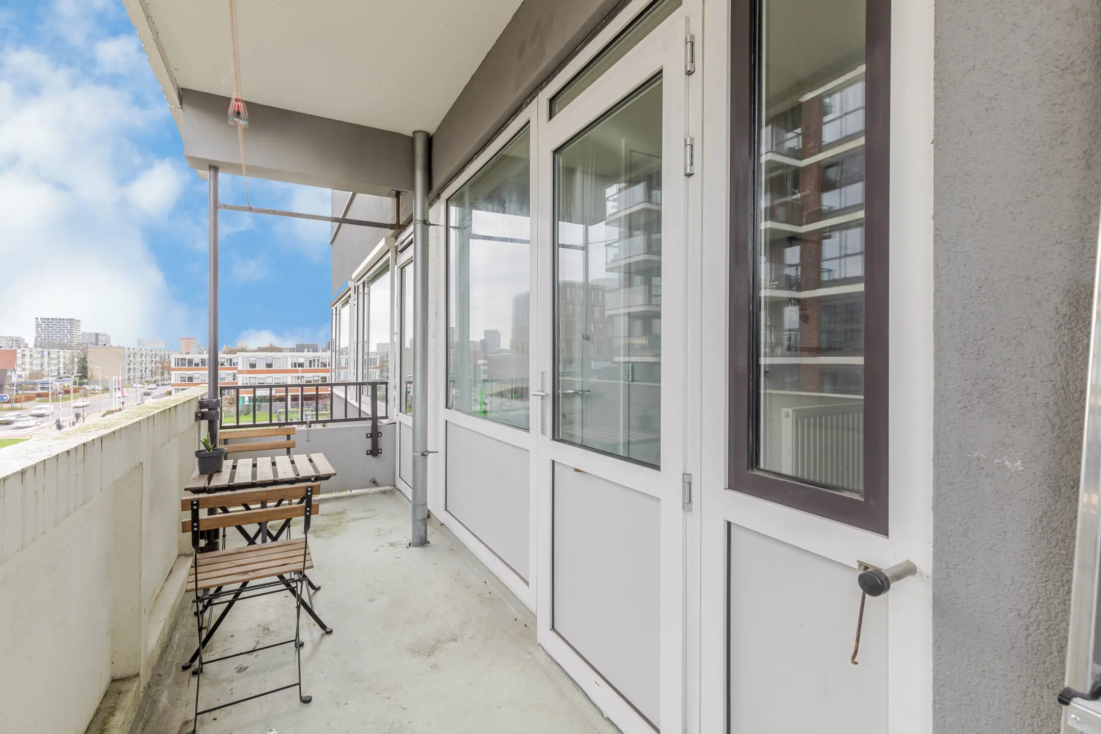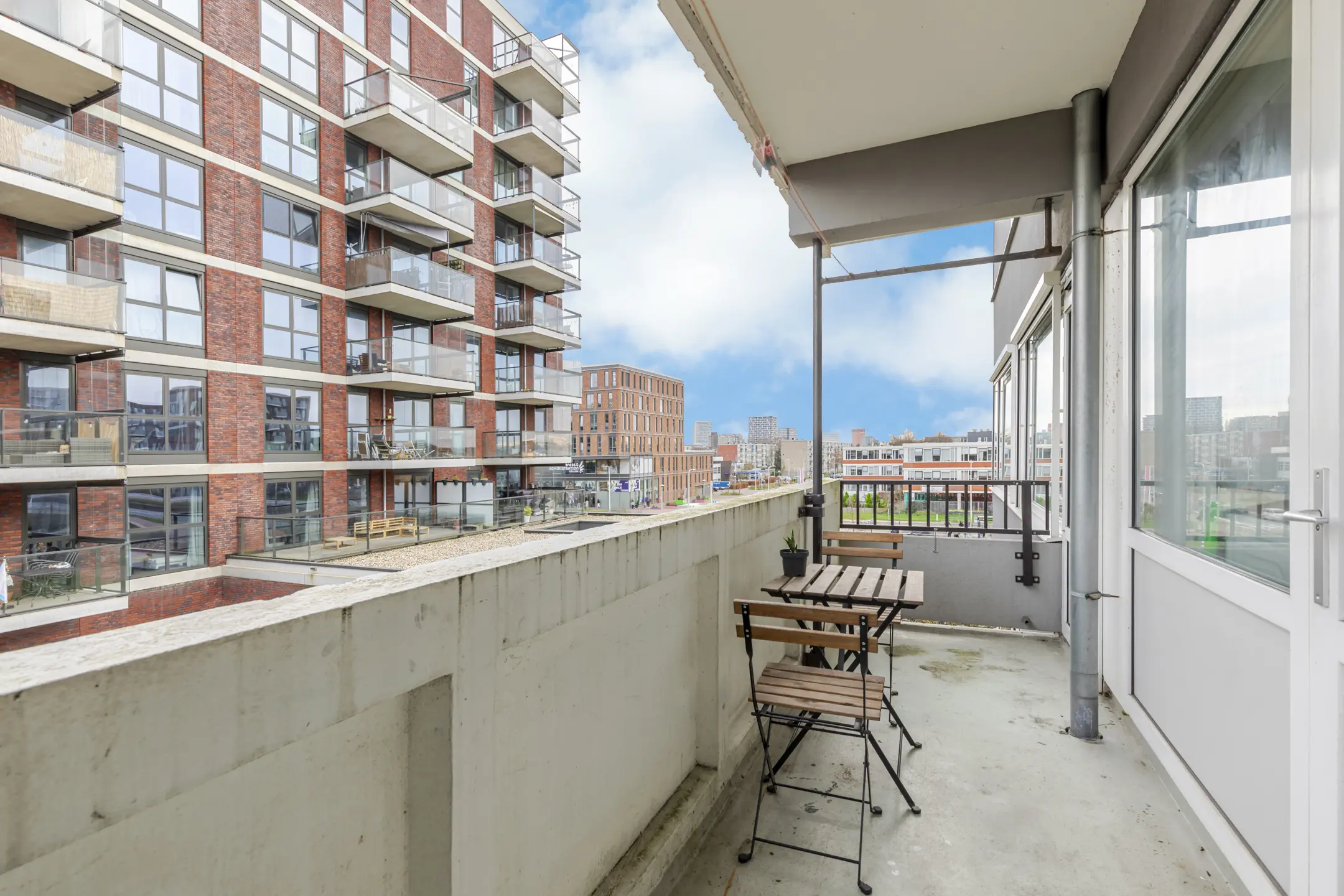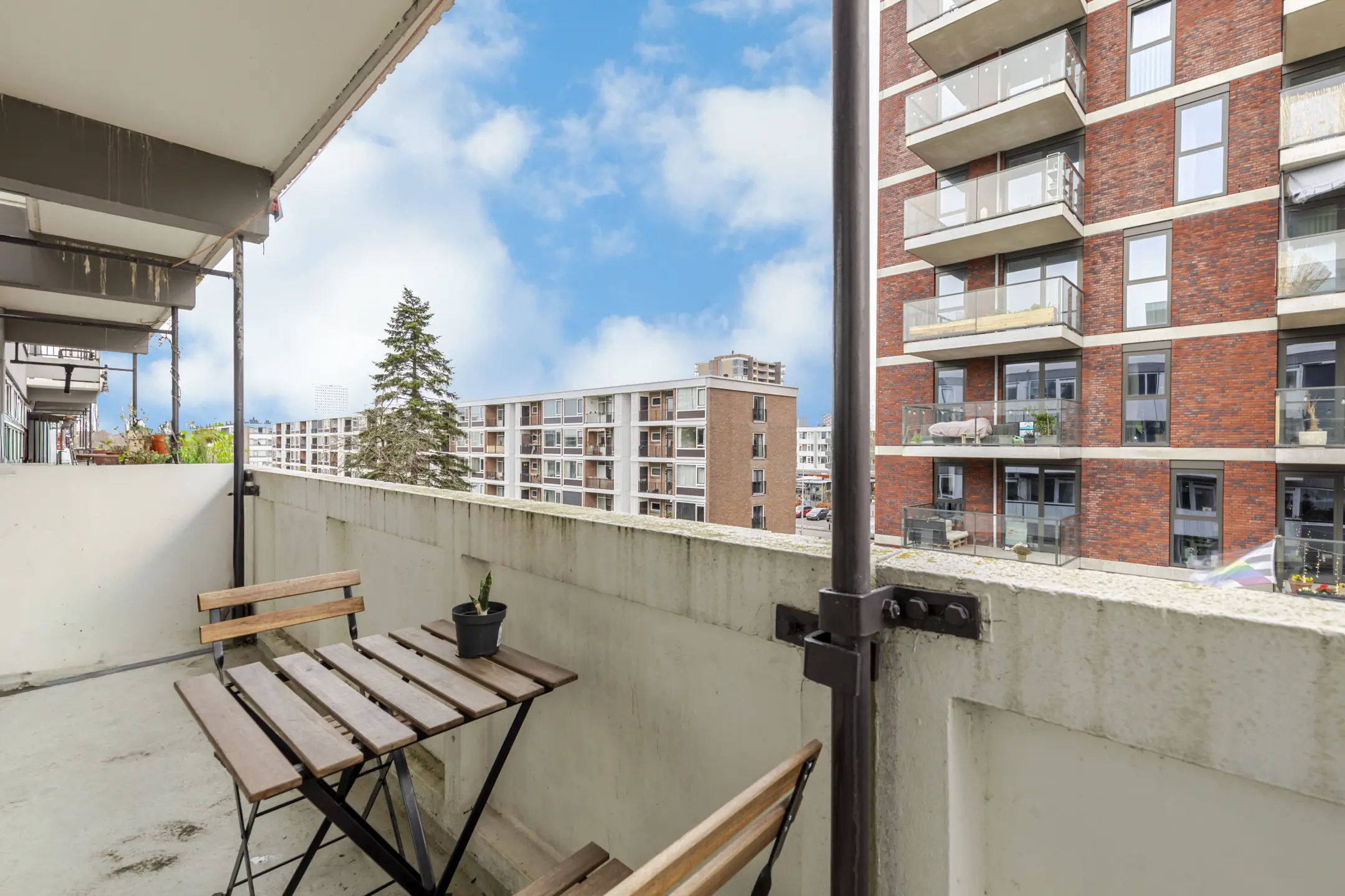 Het appartement beschikt over een balkon, een aan het gebouw verbonden buitenruimte van circa 8 m², waar u in alle rust en privacy van de frisse lucht kunt genieten. Het balkon is zowel vanuit de woonkamer als de keuken bereikbaar.