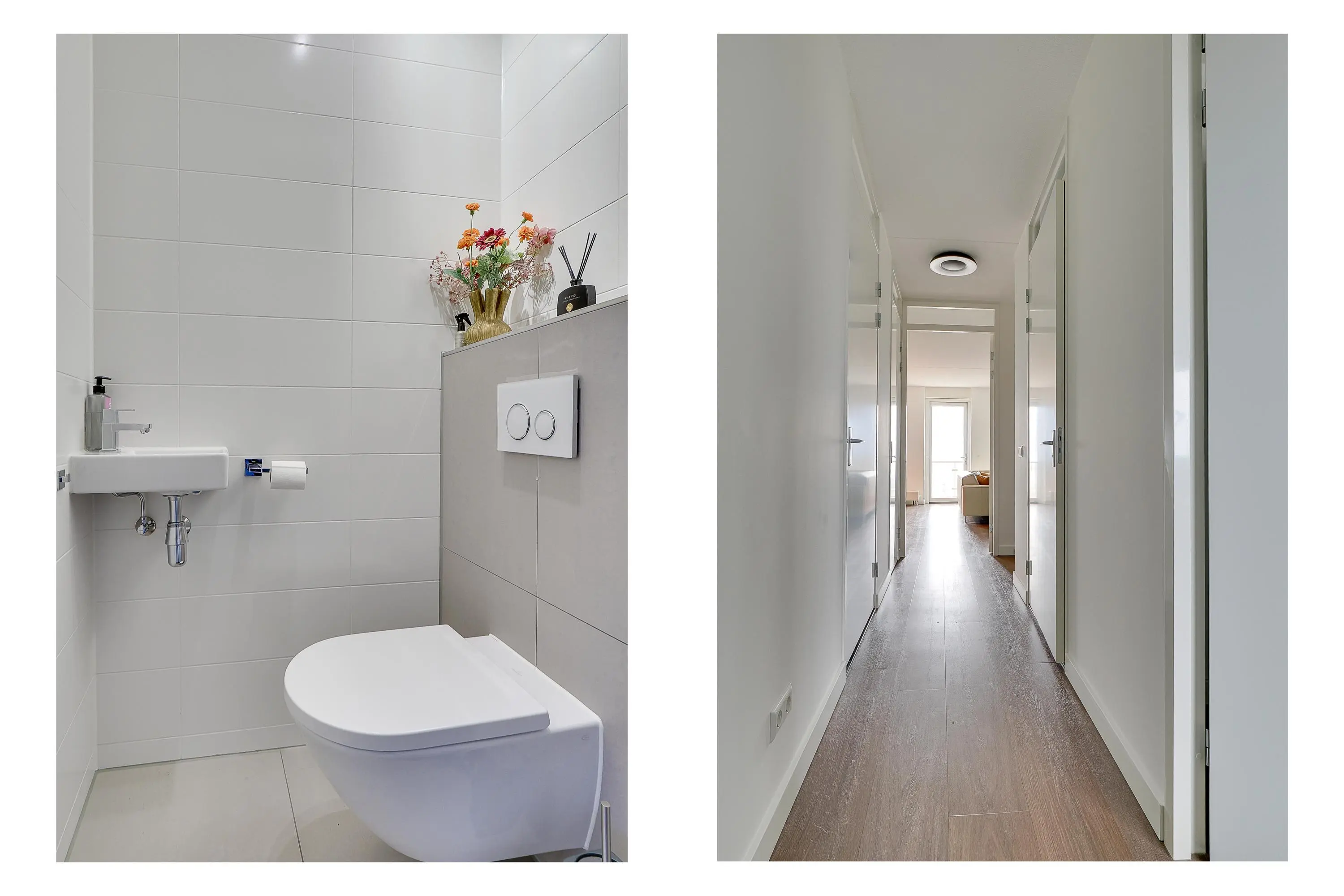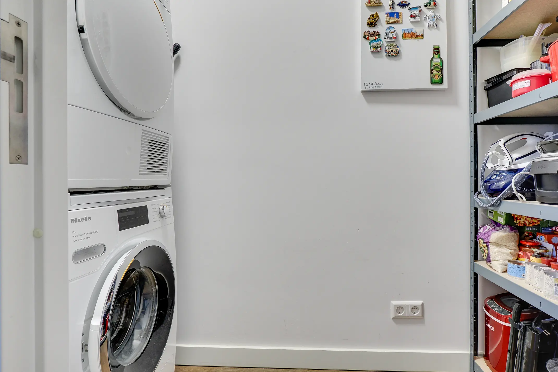 De woning beschikt over drie kamers, waaronder twee goed bemeten slaapkamers. Deze kamers zijn flexibel in te richten en kunnen naast slaapkamer ook uitstekend dienen als werk- of logeerkamer. De badkamer is modern afgewerkt en voorzien van een ligbad met douche en een stijlvol wastafelmeubel. Daarnaast is er een separaat toilet en een praktische interne berging met aansluitingen voor wasmachine en droger.