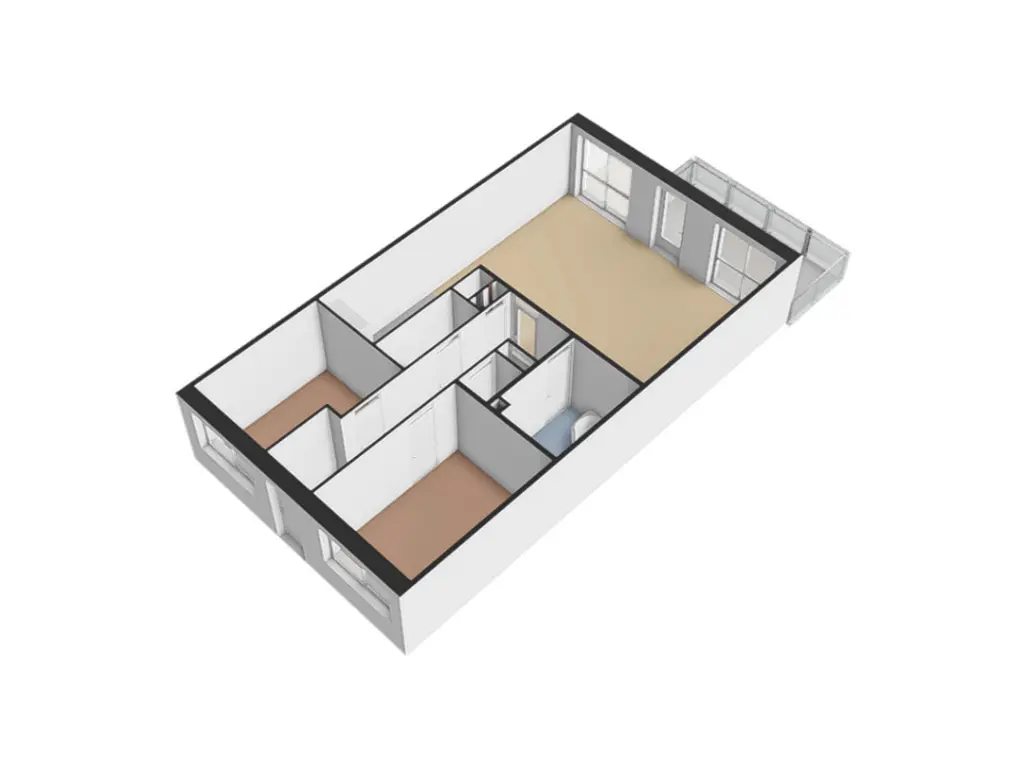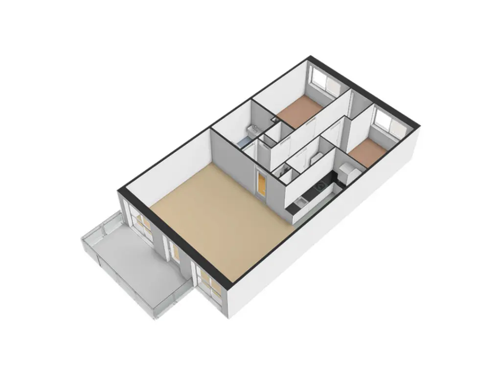 - Aantal kamers: 3 (waarvan 2 slaapkamers)