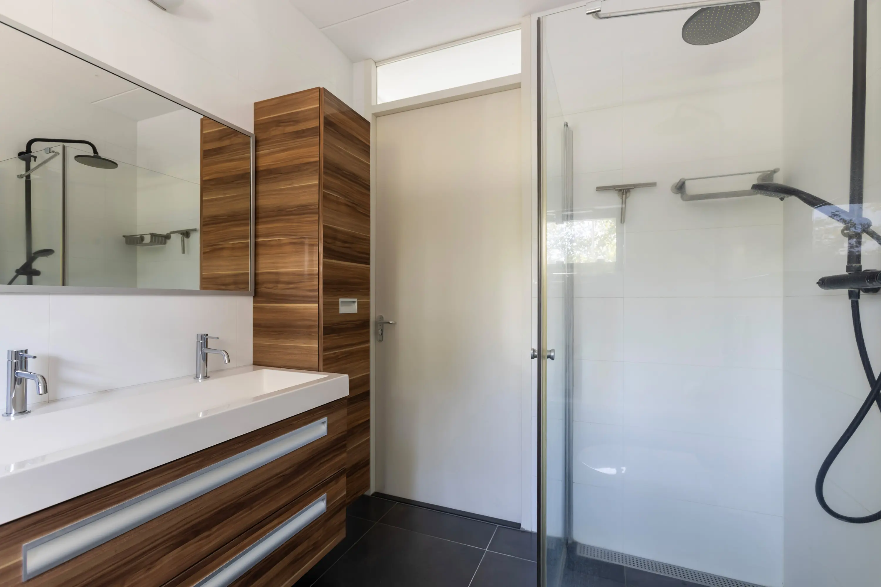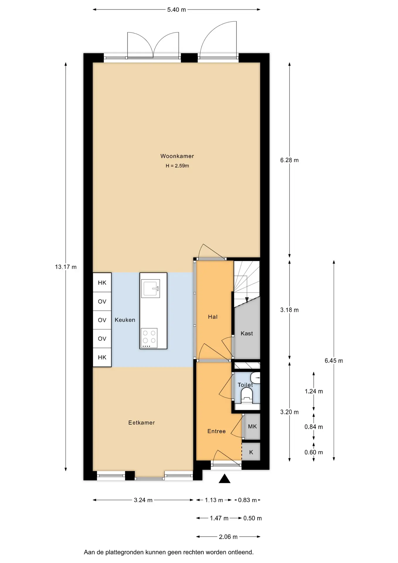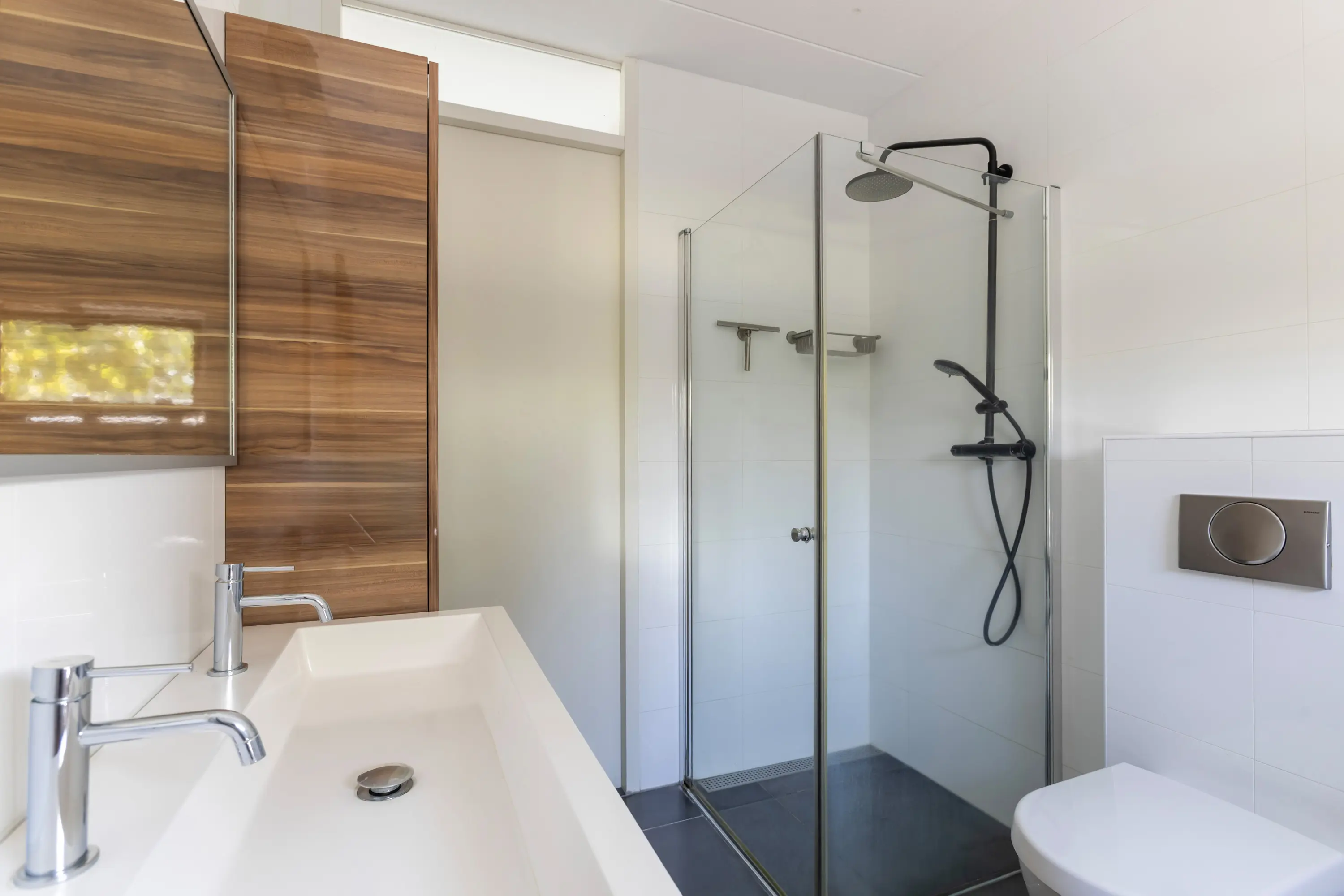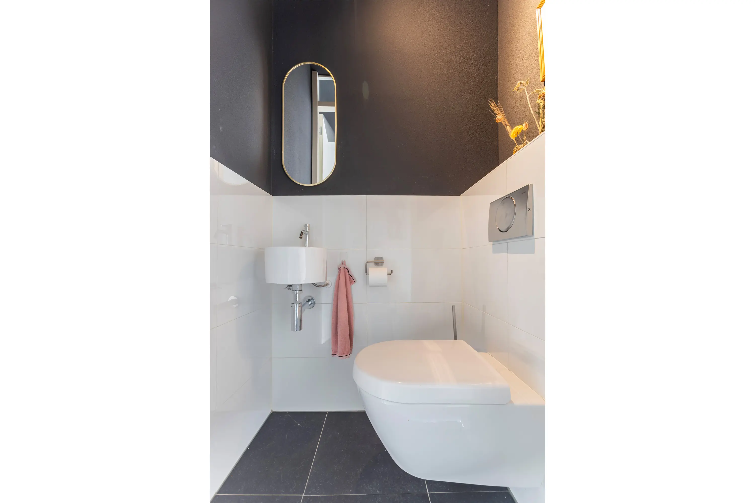 Via de verzorgde voortuin stap je de woning binnen. In de ruime hal vind je de meterkast, garderobe en een modern toilet met fontein. De lichte, tuingerichte woonkamer (ca. 44 m²) heeft grote ramen en openslaande deuren naar de achtertuin, waardoor binnen en buiten mooi in elkaar overlopen. Aan de voorzijde ligt de luxe open keuken met inbouwapparatuur, veel kastruimte en een prettig werkblad. Hier heb je ook direct toegang tot de voortuin.