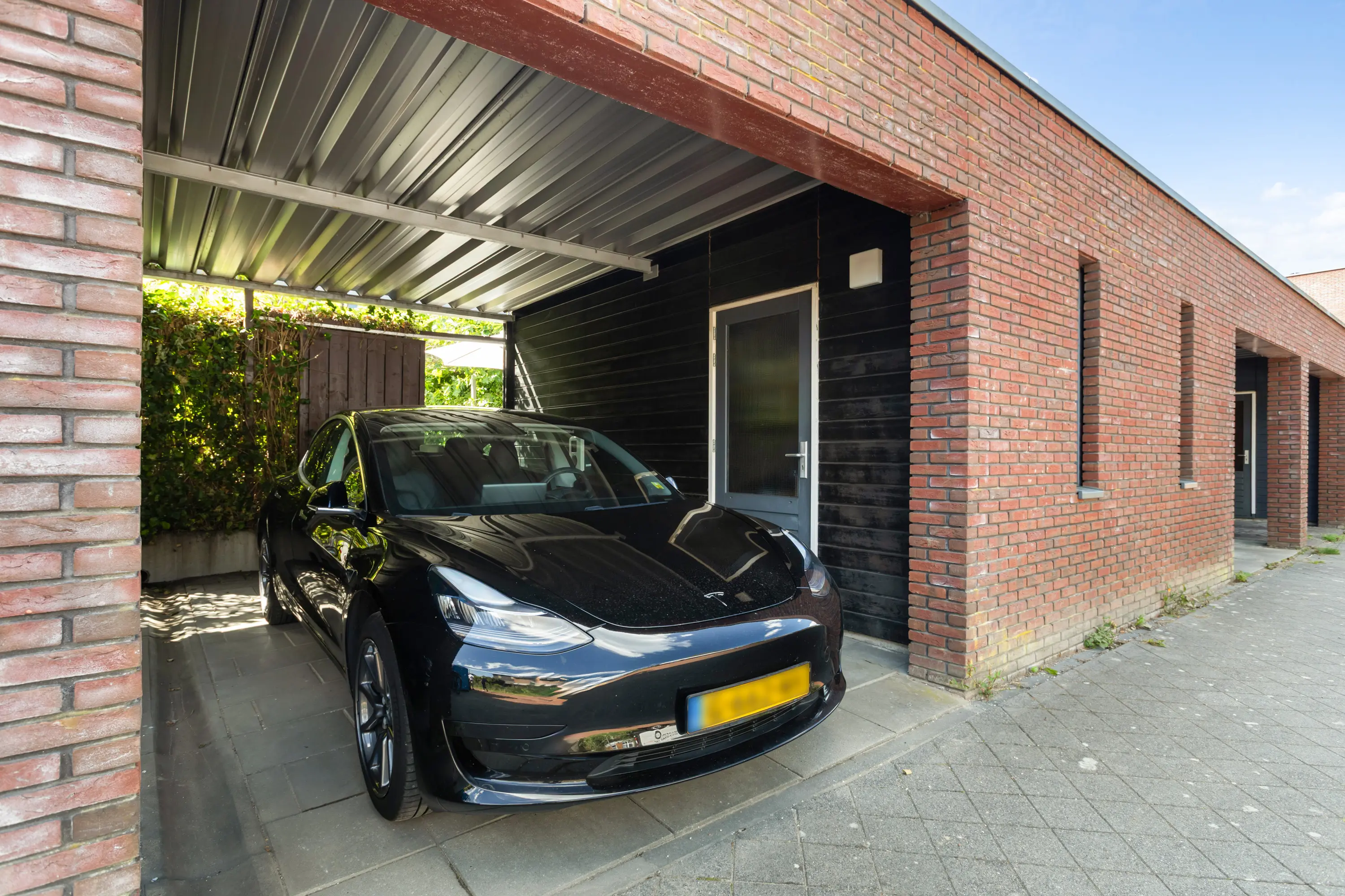 De achtertuin op het noordoosten is verzorgd aangelegd en voorzien van een vrijstaande stenen berging met elektra en achterom. Direct achter de tuin bevindt zich de carport met eigen parkeerplaats en laadpaal. De voortuin biedt in de middag en avond een heerlijke plek in de zon.