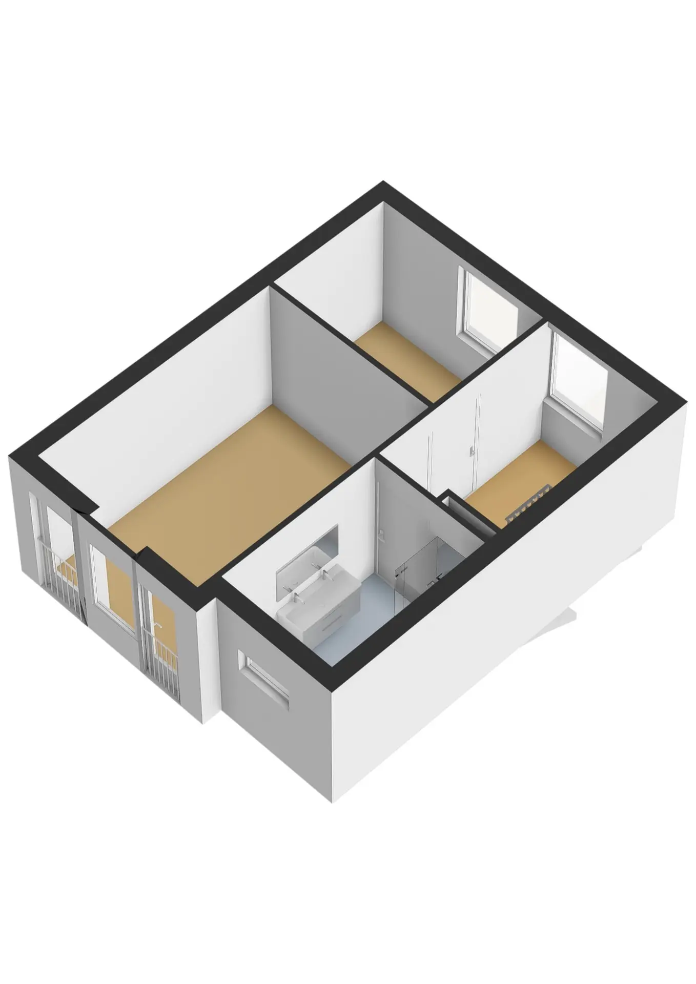 Ook op deze verdieping vind je twee volwaardige slaapkamers, ideaal voor kinderen, logees of als werkkamer. Daarnaast zijn hier aansluitingen aanwezig en ruimte gecreëerd voor het realiseren van een extra badkamer, wat de indelingsmogelijkheden vergroot.