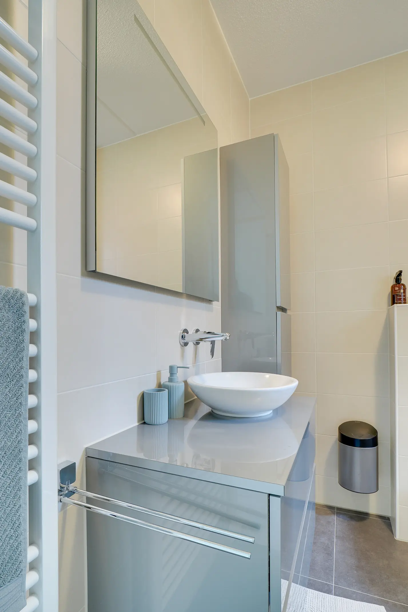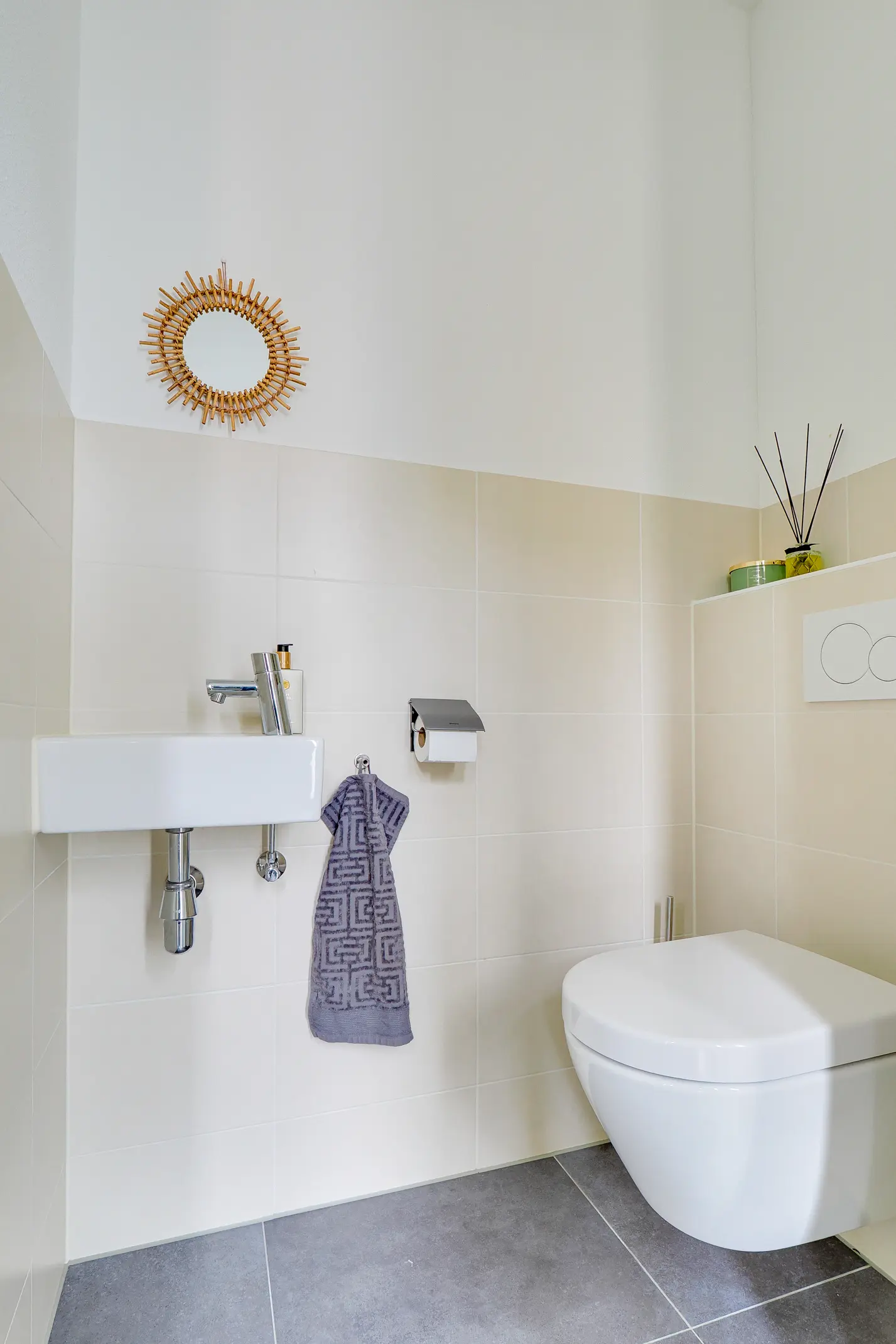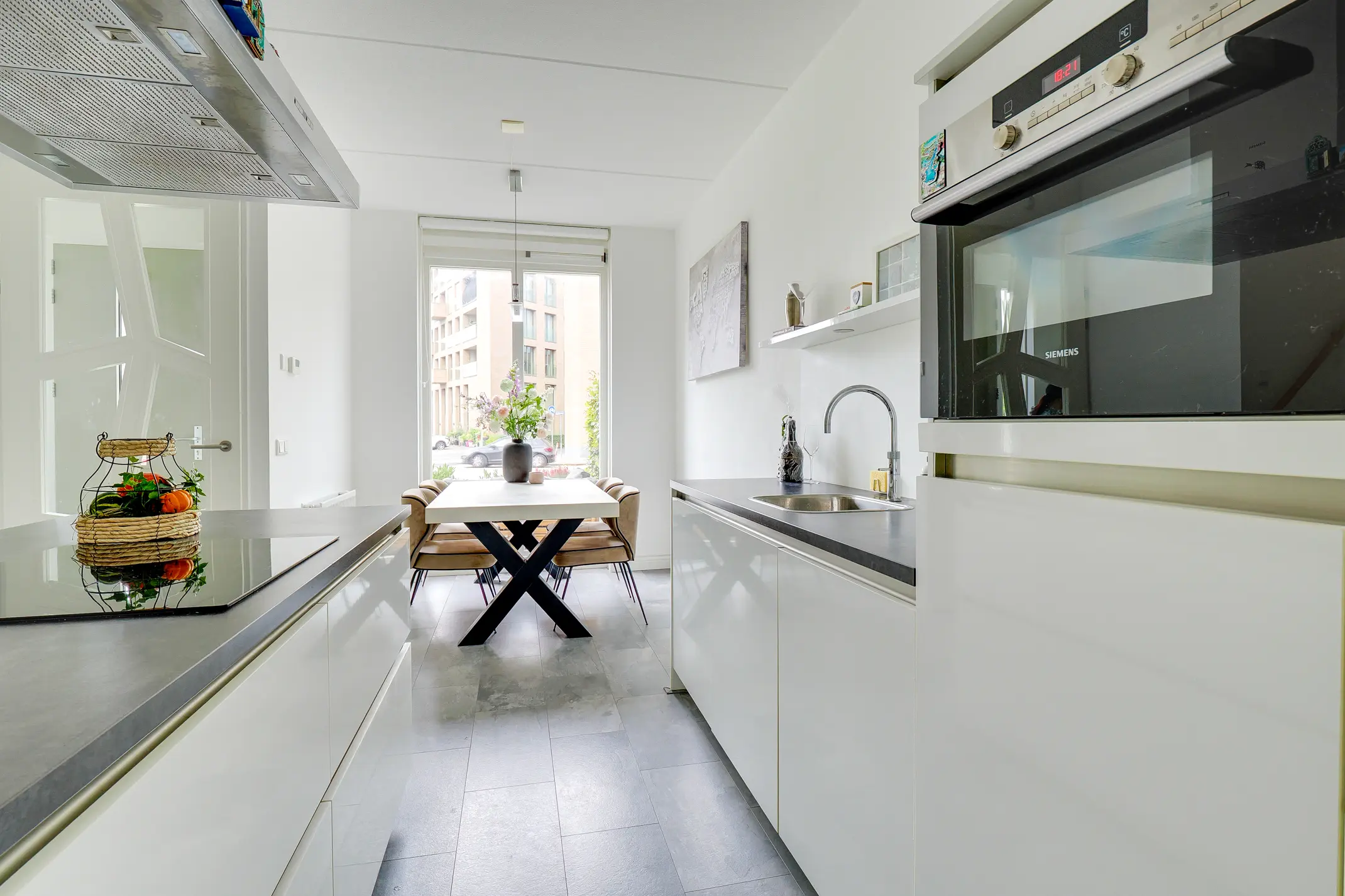 • Begane grond: royale, open leefkeuken (2015) van ca. 24 m² met Quooker en een gezellig bar-eiland. Deze keuken nodigt uit: koken én drinken samen aan het eiland, etentjes voorbereiden terwijl je gasten aanschuiven — precies die leefbare sfeer waar je blij van wordt. De deur geeft direct toegang tot de voortuin op het zuidwesten, heerlijk voor een zonnig ontbijt of een rustige middagkoffie.