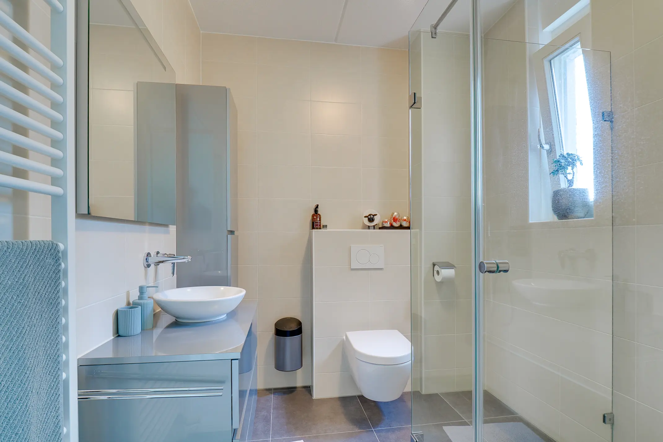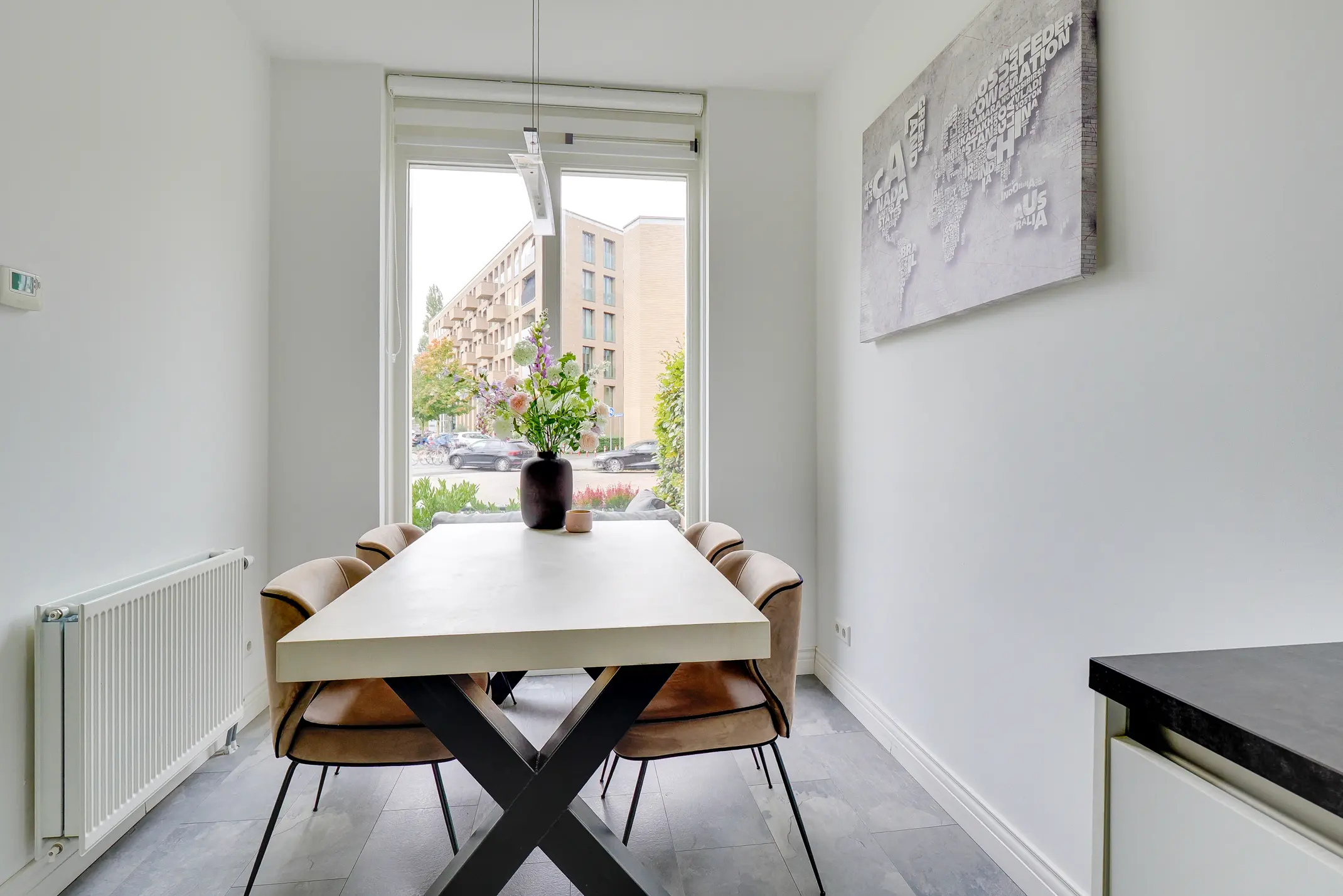 • Tweede verdieping: twee comfortabele slaapkamers, ideaal als slaapvertrek en thuiskantoor. De woning is volledig geïsoleerd en uitgevoerd met kunststof kozijnen met HR++ glas en stadsverwarming, wat zorgt voor een prettig en energiezuinig binnenklimaat.