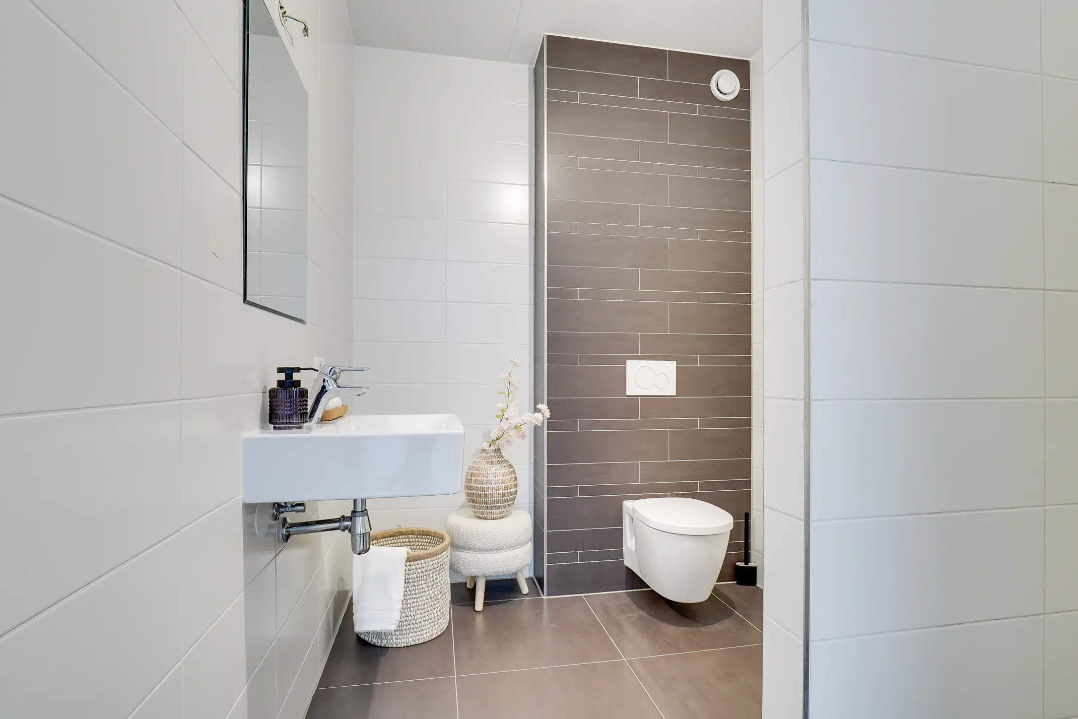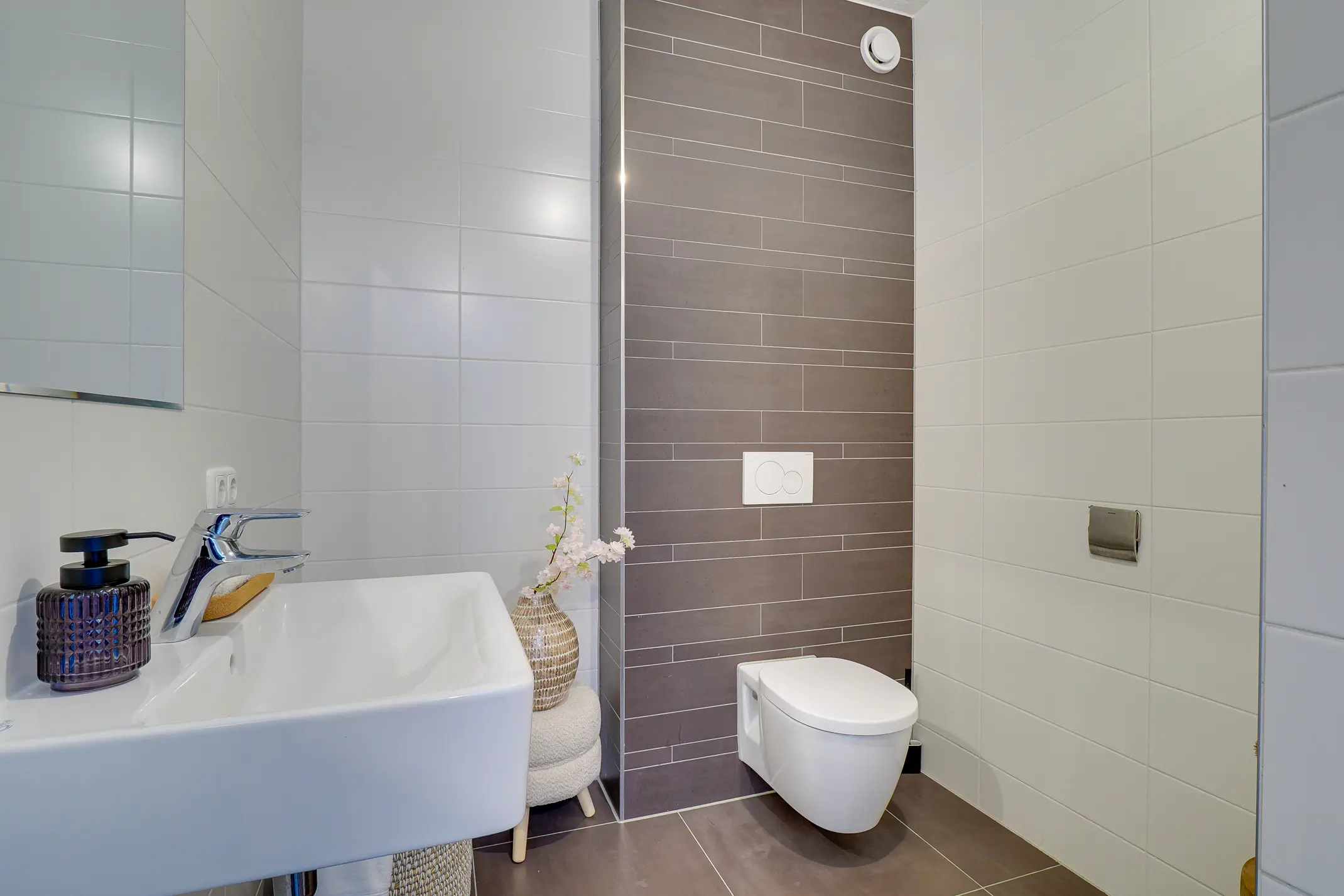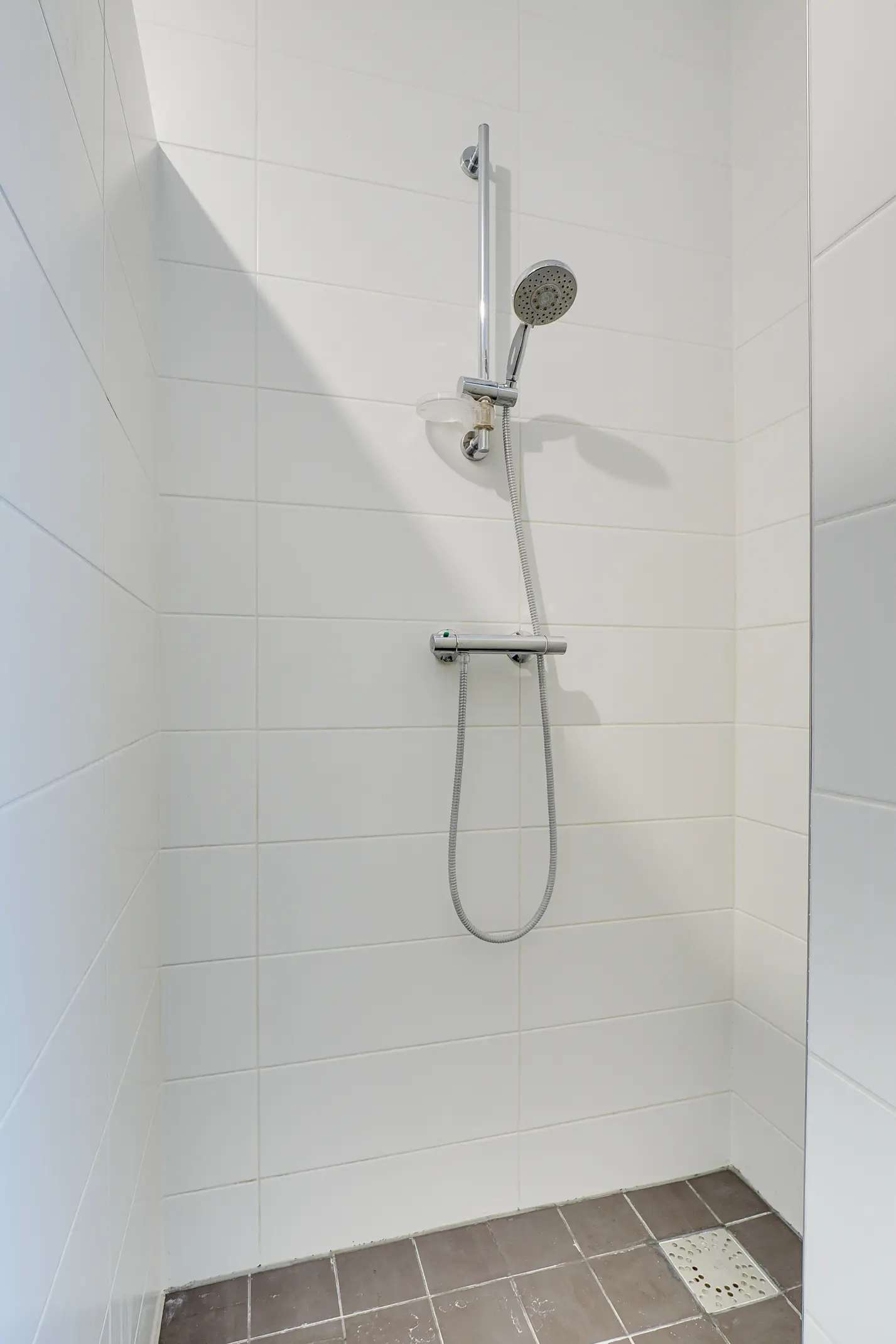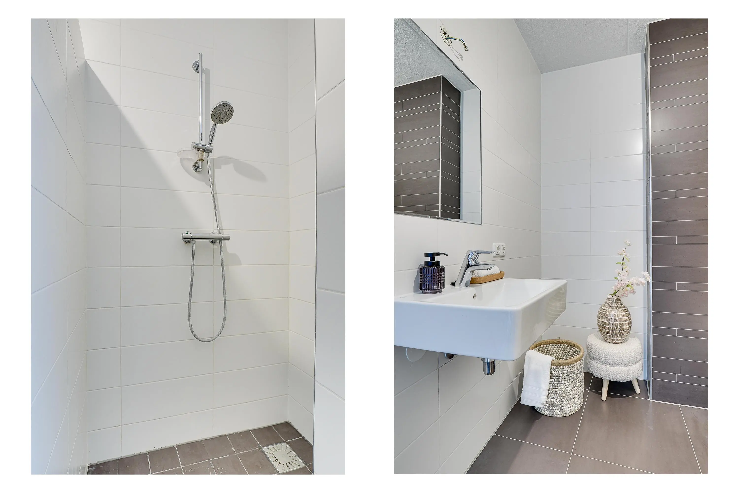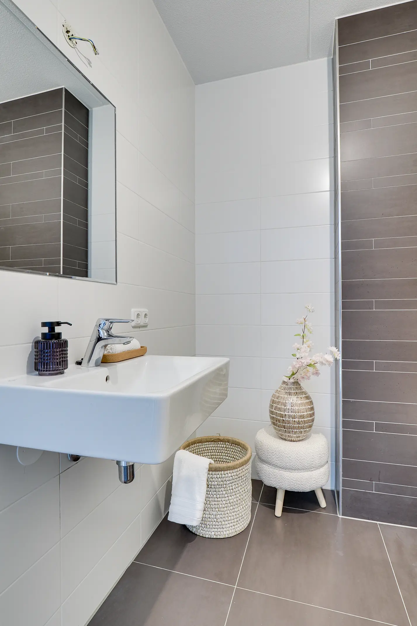 - Badkamer met inloopdouche, enkele wastafel en toilet