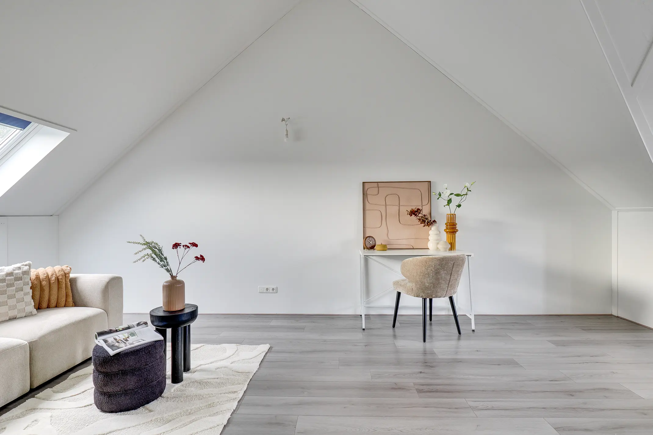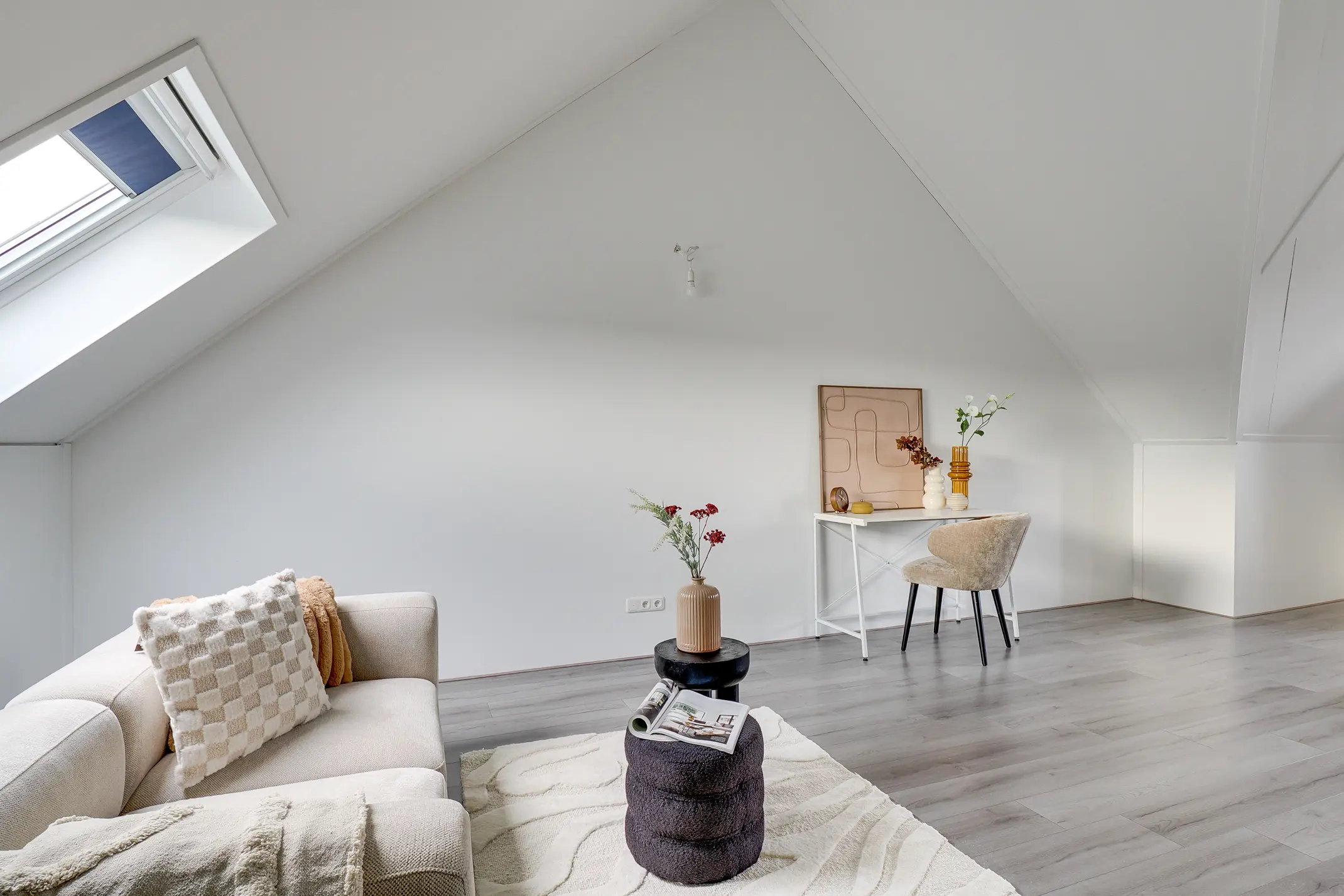 De tweede verdieping is een royale open ruimte met een hoge nok en veel lichtinval. Deze verdieping biedt volop mogelijkheden: een extra slaapkamer, een werkkamer, speelruimte of zelfs een combinatie hiervan. Ook vind je hier de aansluitingen voor de wasmachine en droger.