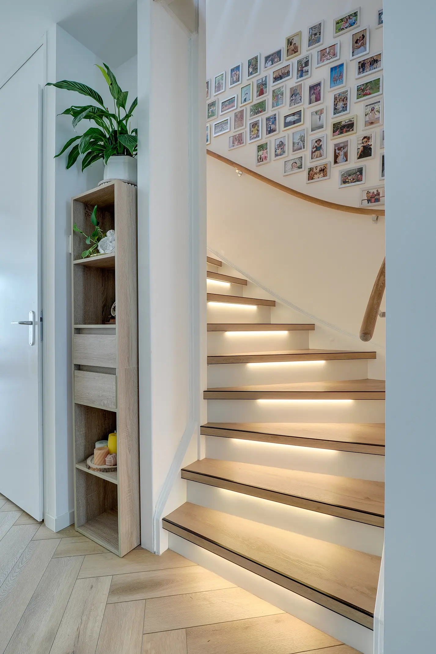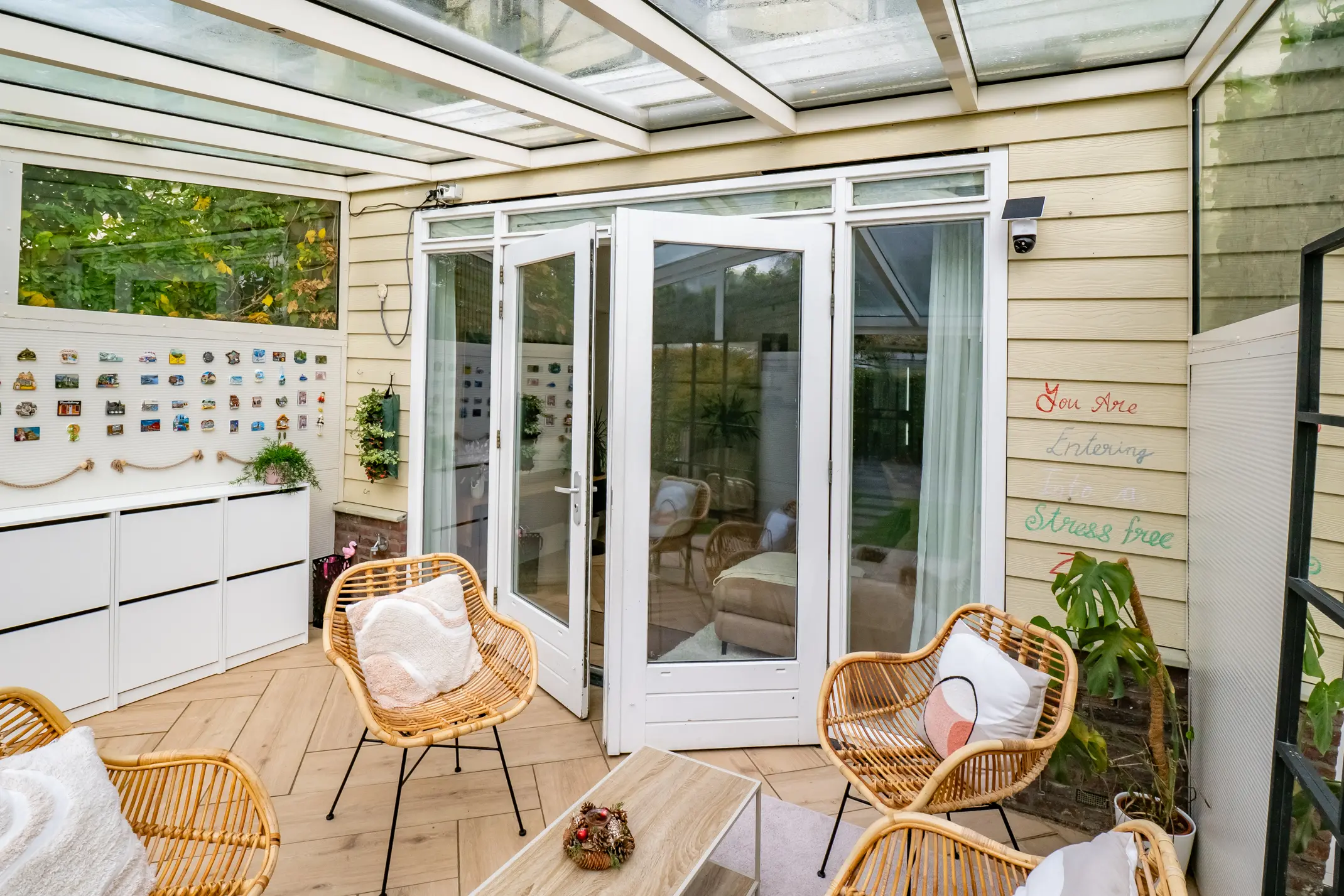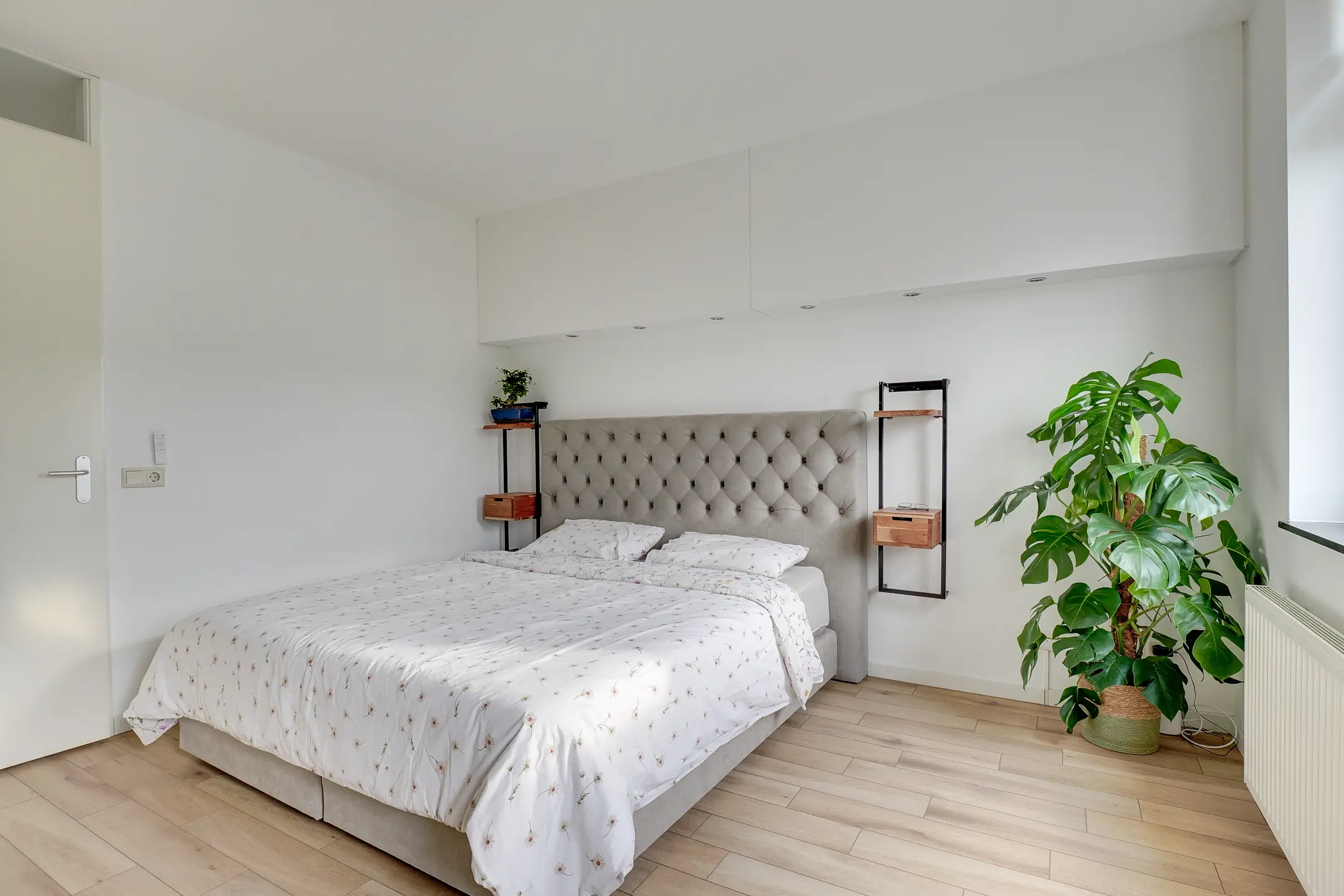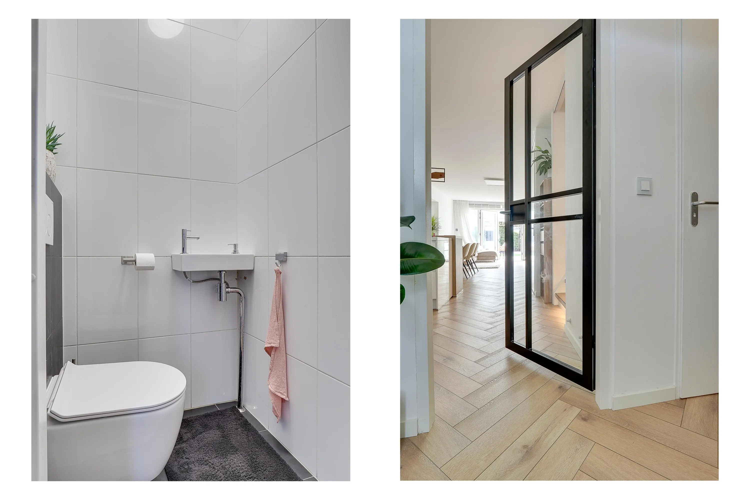 De begane grond is in 2023 volledig aangepakt met een nieuwe vloer, strak stucwerk, vernieuwde trap en toegang tot de fraaie overkapping aan de tuinzijde, waardoor binnen en buiten mooi in elkaar overlopen.