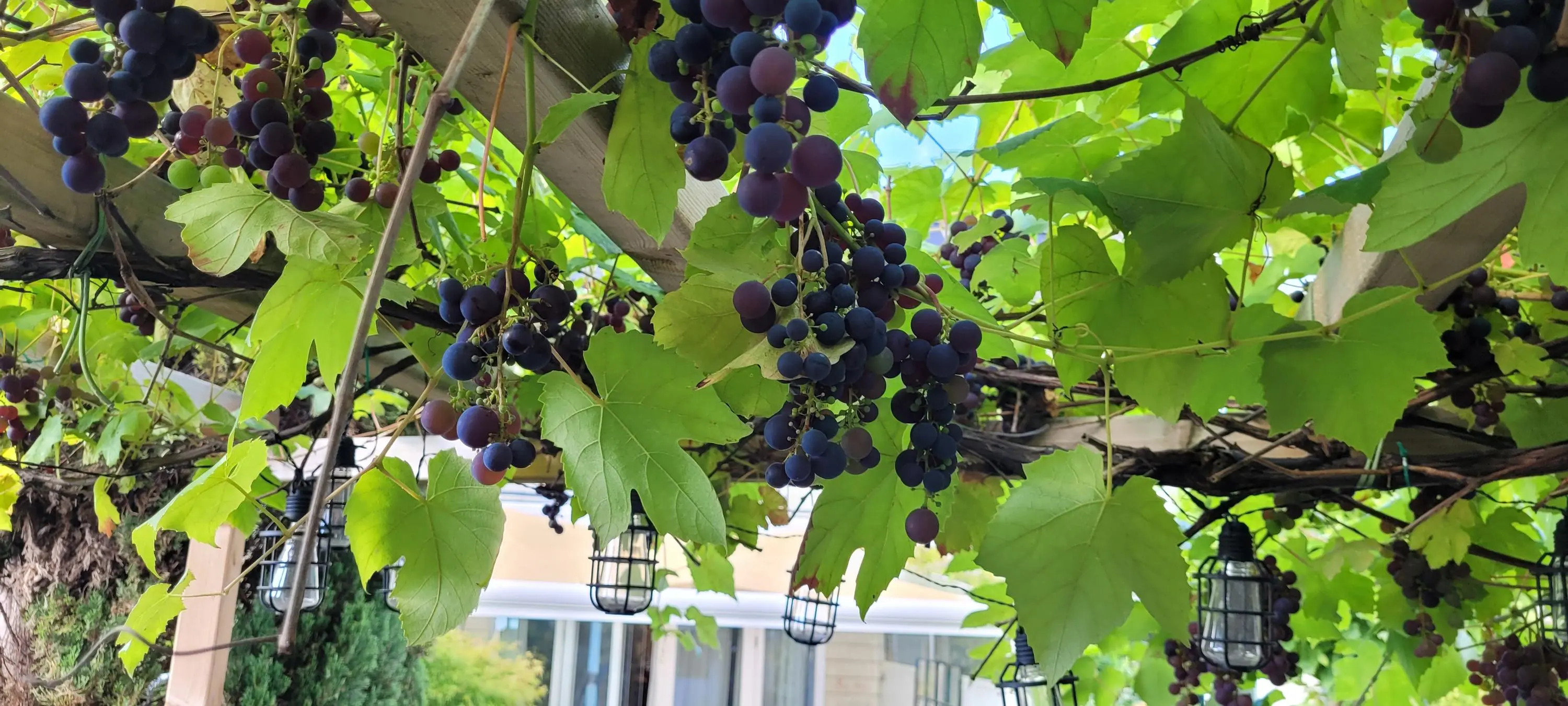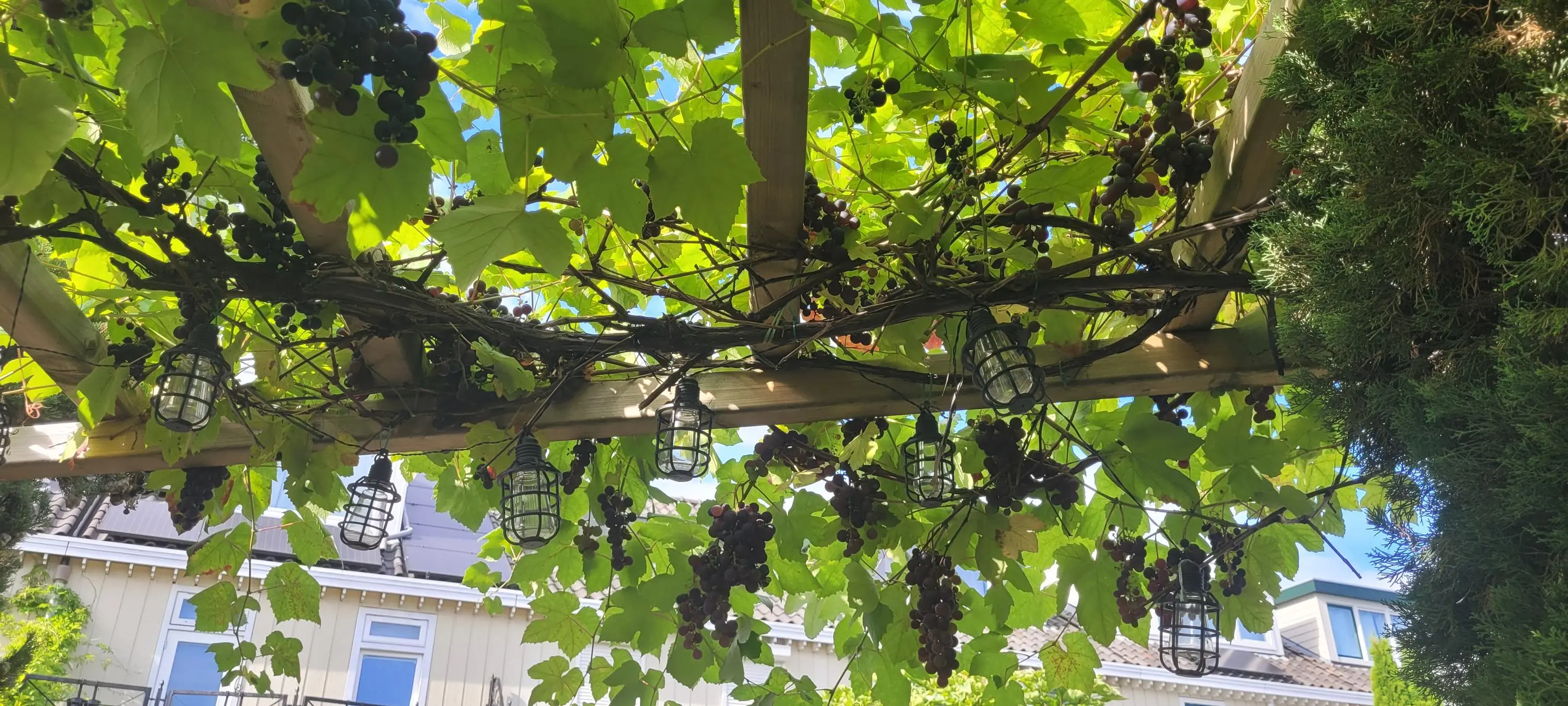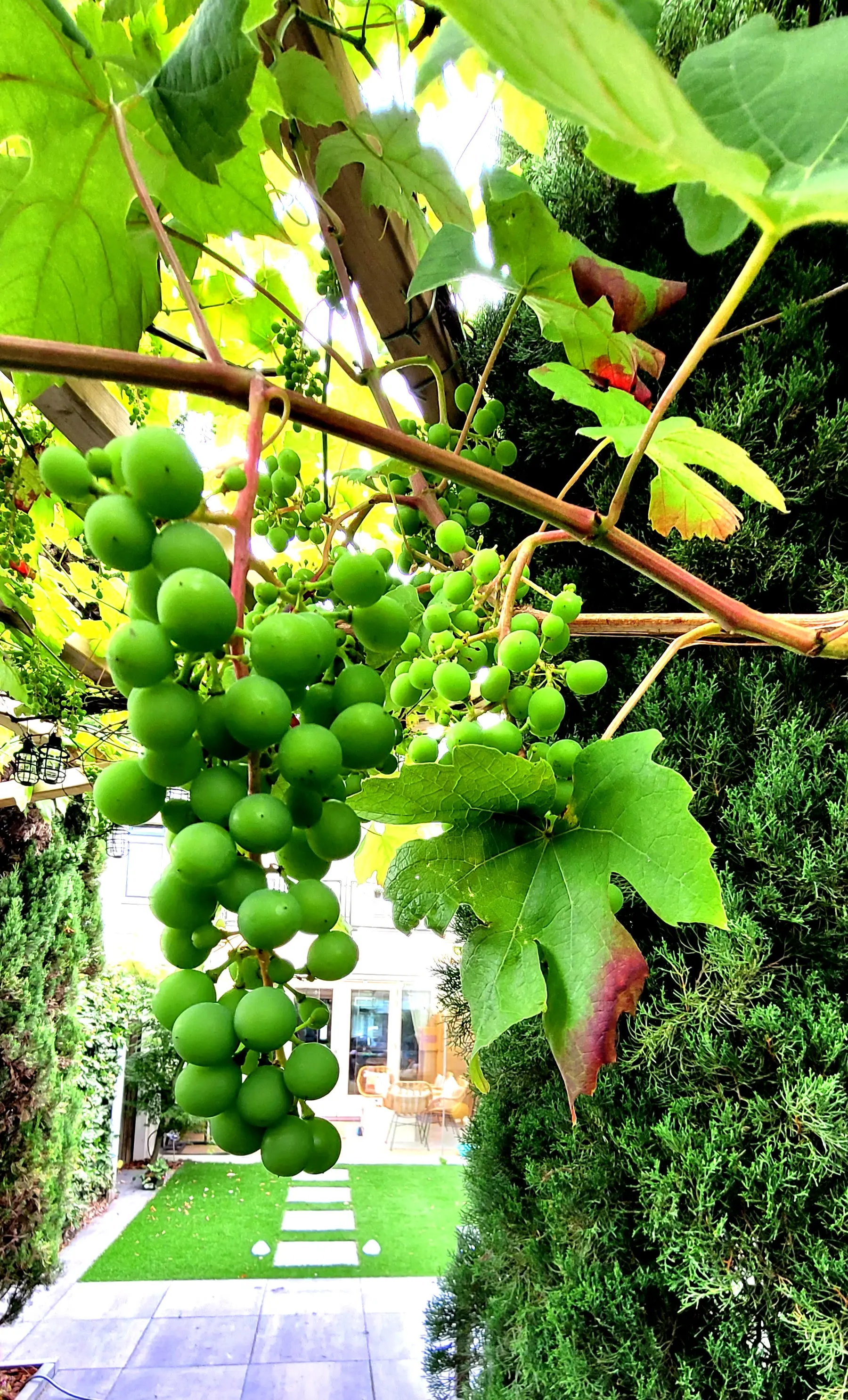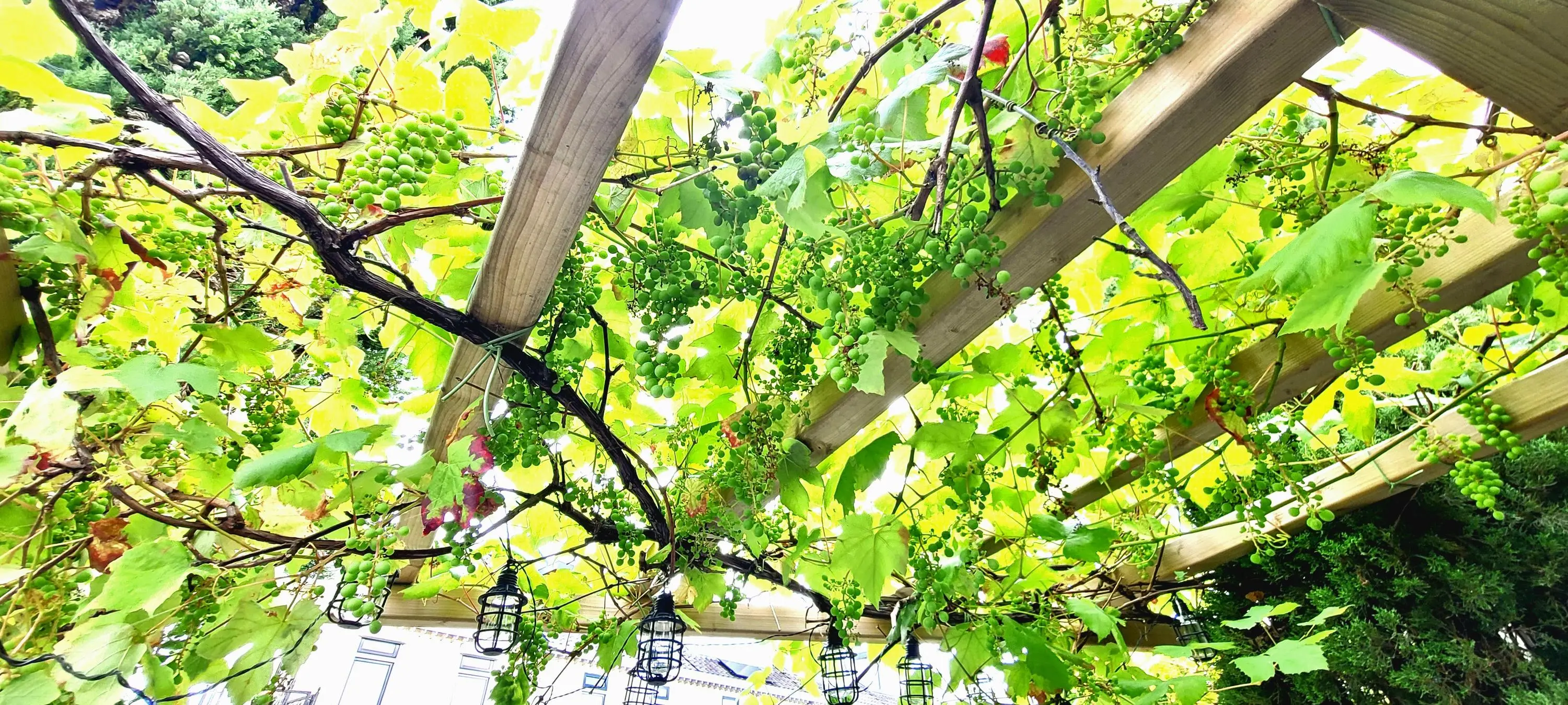 - Tuin met pergola, druiven, pruimen- en pijnbomen