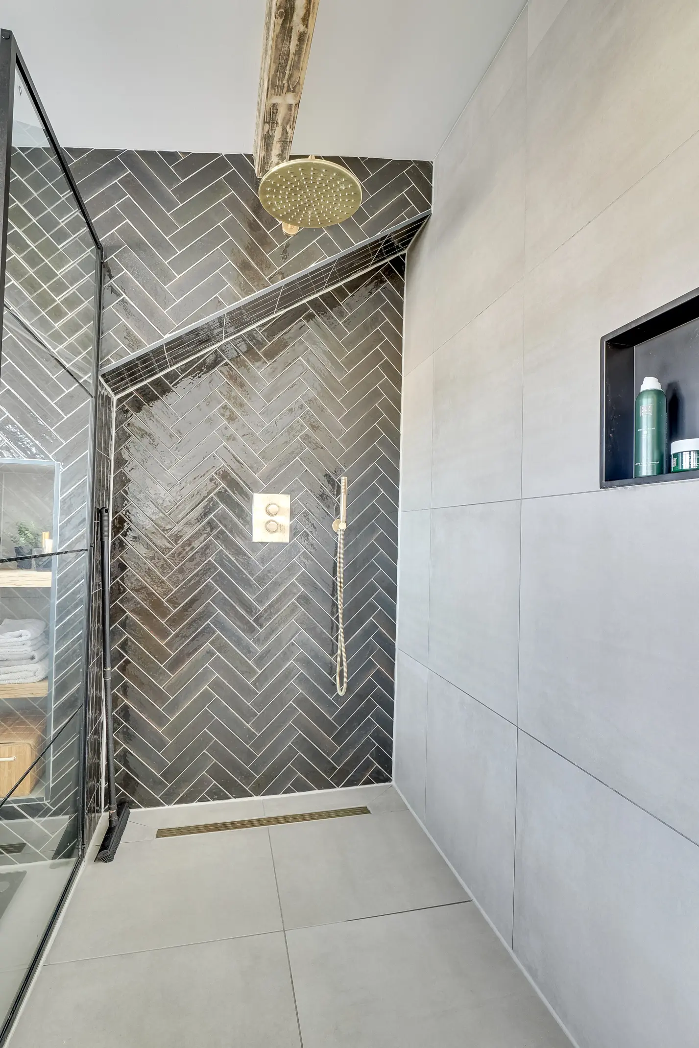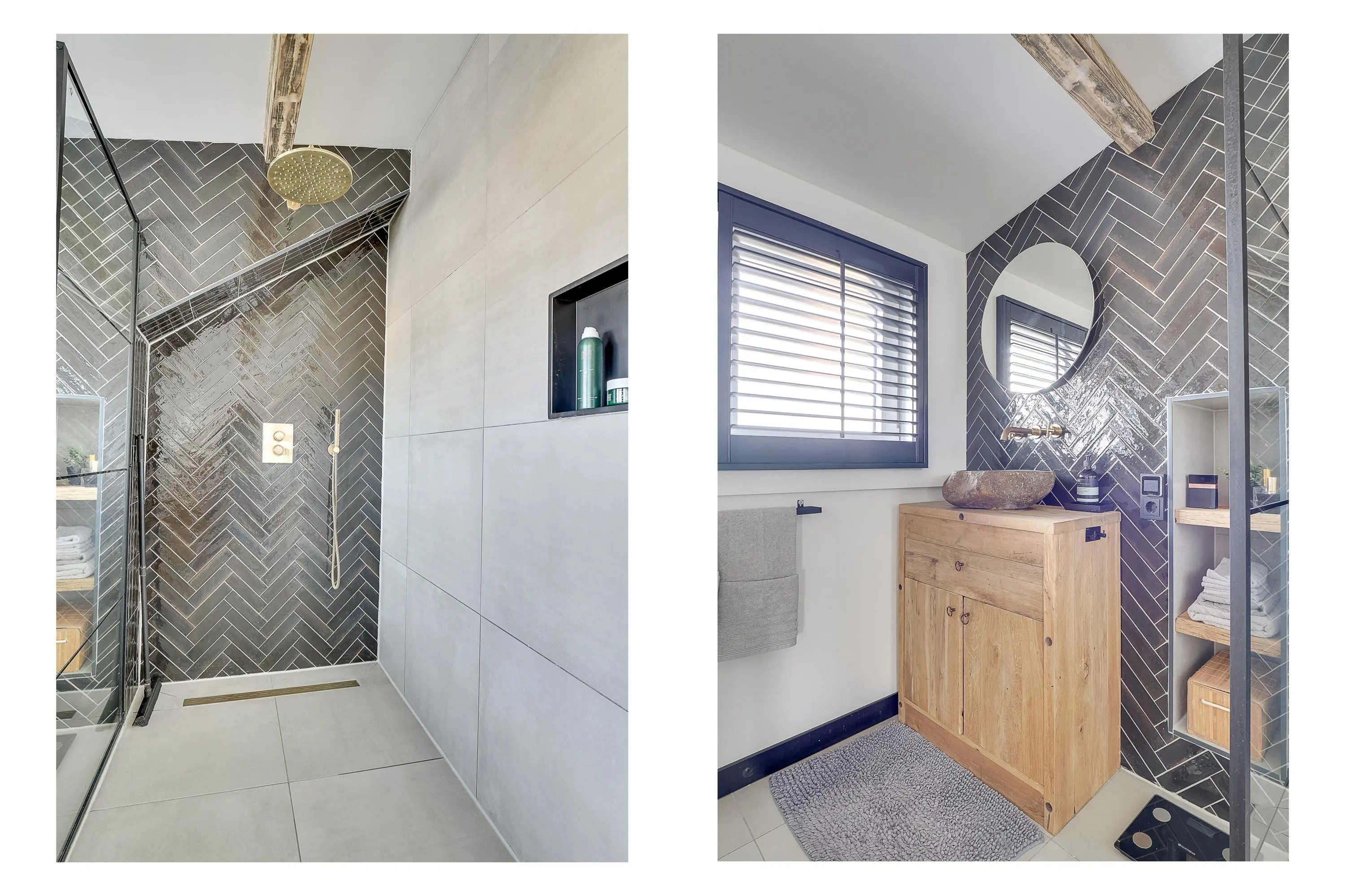 - Hoogwaardige afwerking met visgraat PVC-vloer, vloerverwarming en massief eiken trappen met verlichting