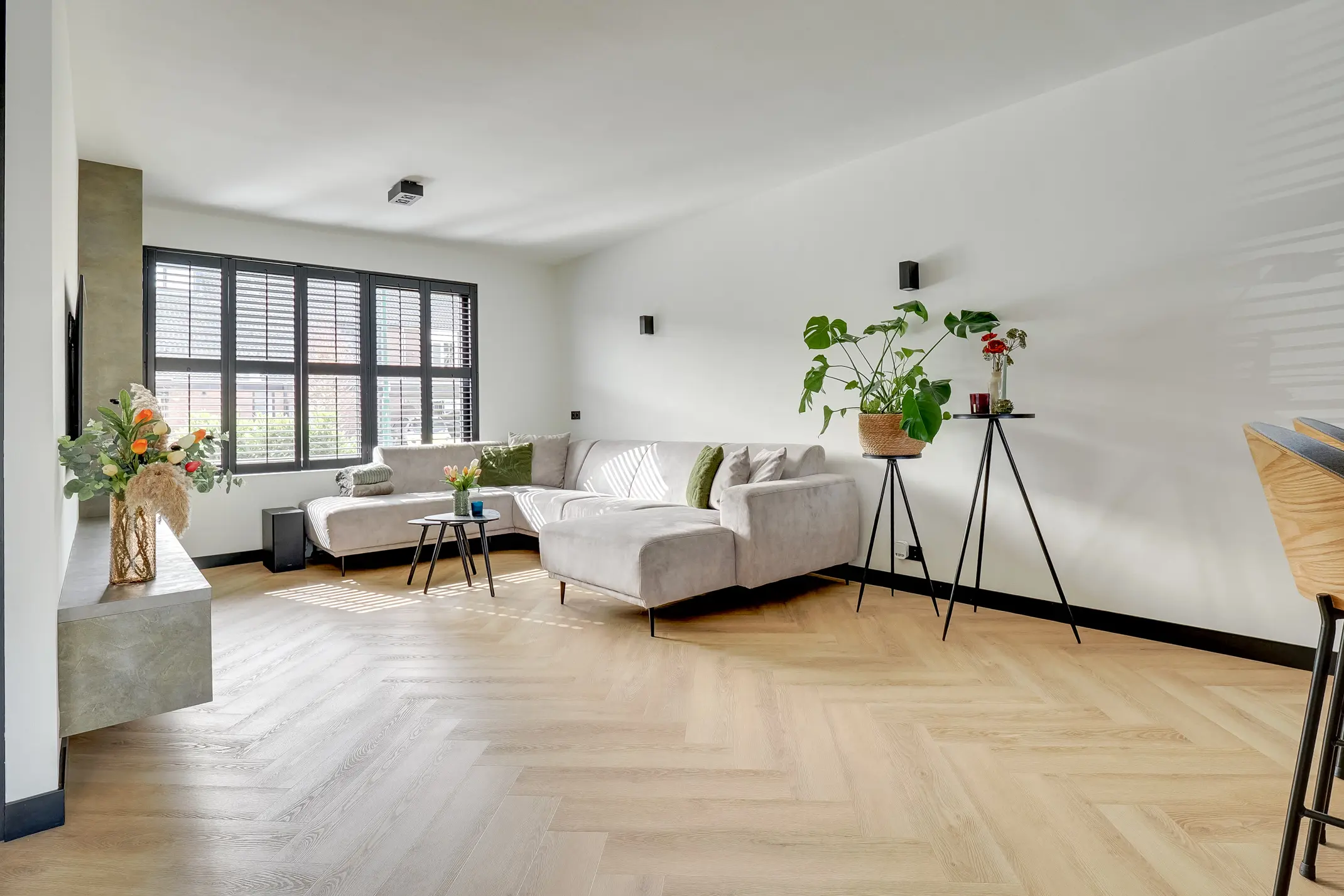 Bij binnenkomst ervaar je direct de luxe afwerking. De begane grond is voorzien van vloerverwarming met vloerisolatie en een stijlvolle visgraat PVC-vloer. De massief eiken trappen met oriëntatieverlichting geven een exclusieve uitstraling.